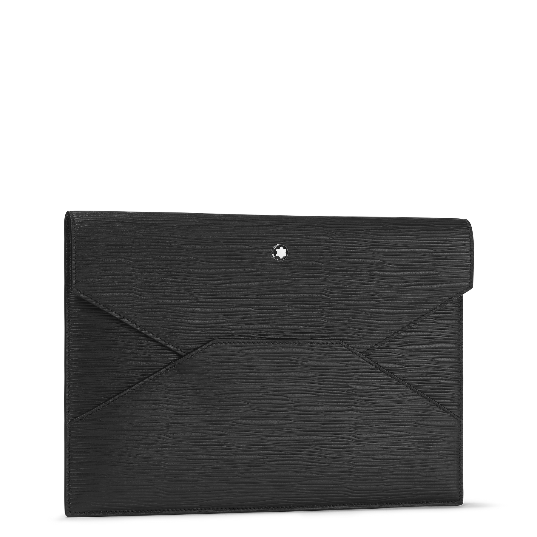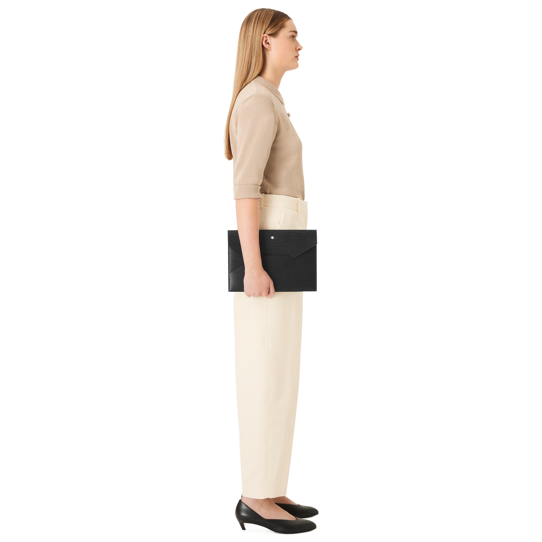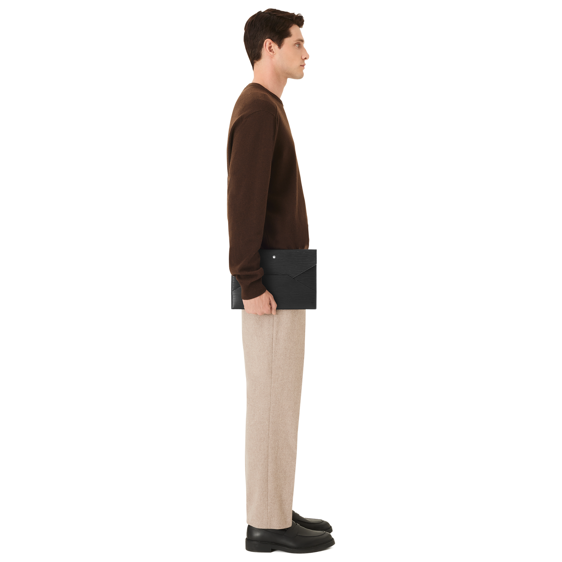 Inspired by the world of writing, this envelope-shaped pouch bag is a stylish companion to wherever your day takes you. Textured in high-quality leather, its modular design features a side band on the back that allows the pouch to be attached to larger bags, such as document cases and totes. The Montblanc emblem details the front flap in a new larger size.