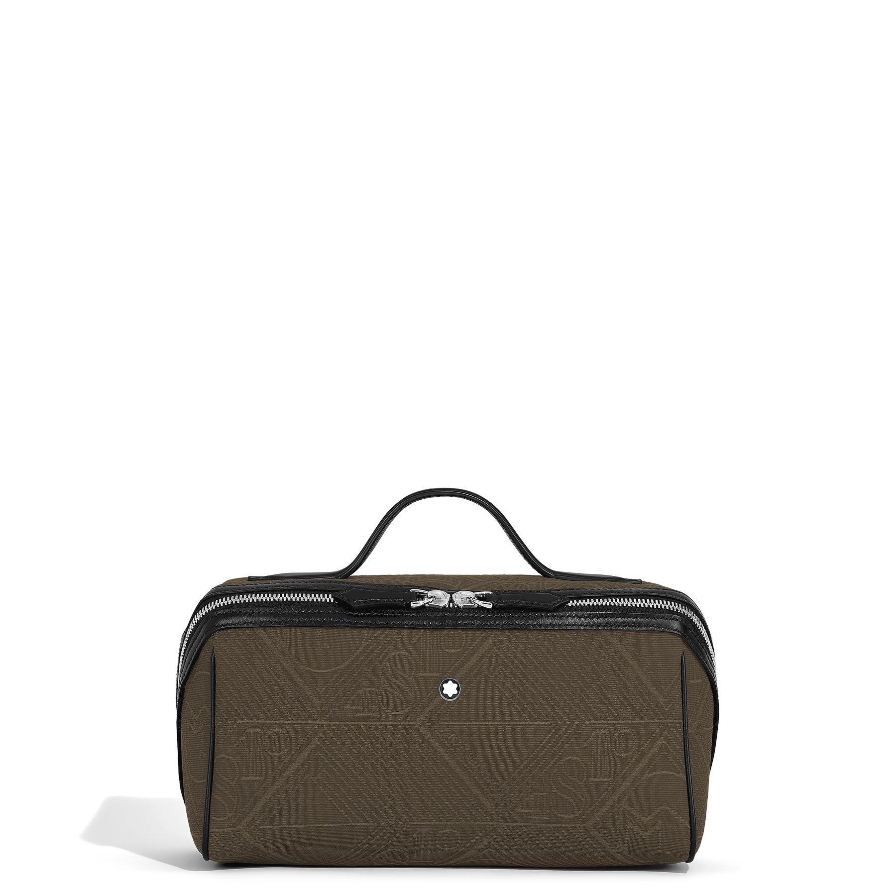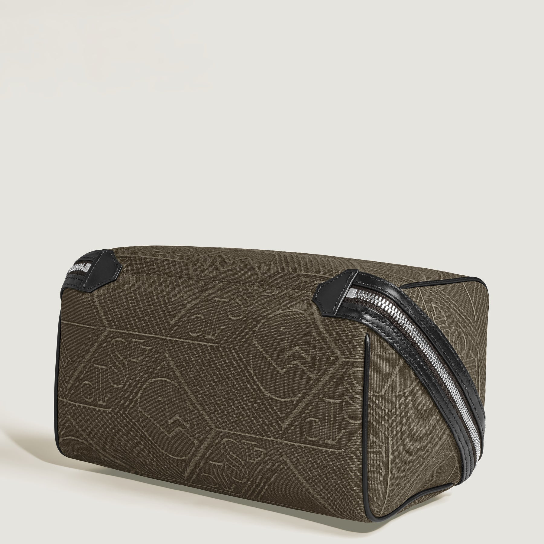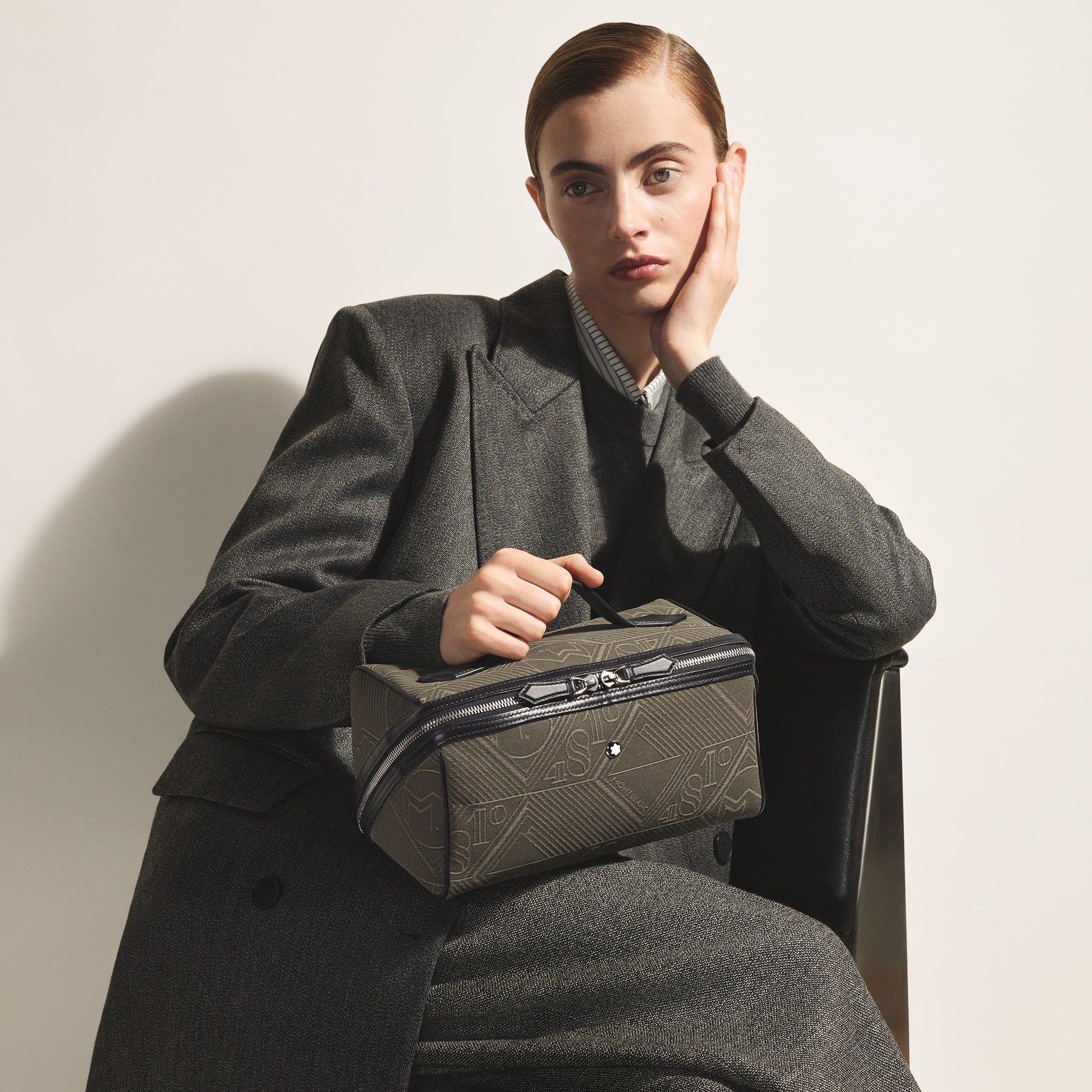 The toiletries bag combines refined craftsmanship with travel-friendly functionality. Crafted from the innovative 4810 jacquard material, its textured, three-dimensional pattern draws inspiration from Montblanc’s Art Deco heritage, the architectural design of Montblanc Haus, and the iconic 4810m peak. The khaki tone, achieved through jacquard weaving, piece dyeing, and stone-washing, adds a timeless, lived-in charm. Designed for convenience, it features a 360° zip opening, a leather top handle, two compartments, and a zipped interior pocket for convenient organisation when traveling.