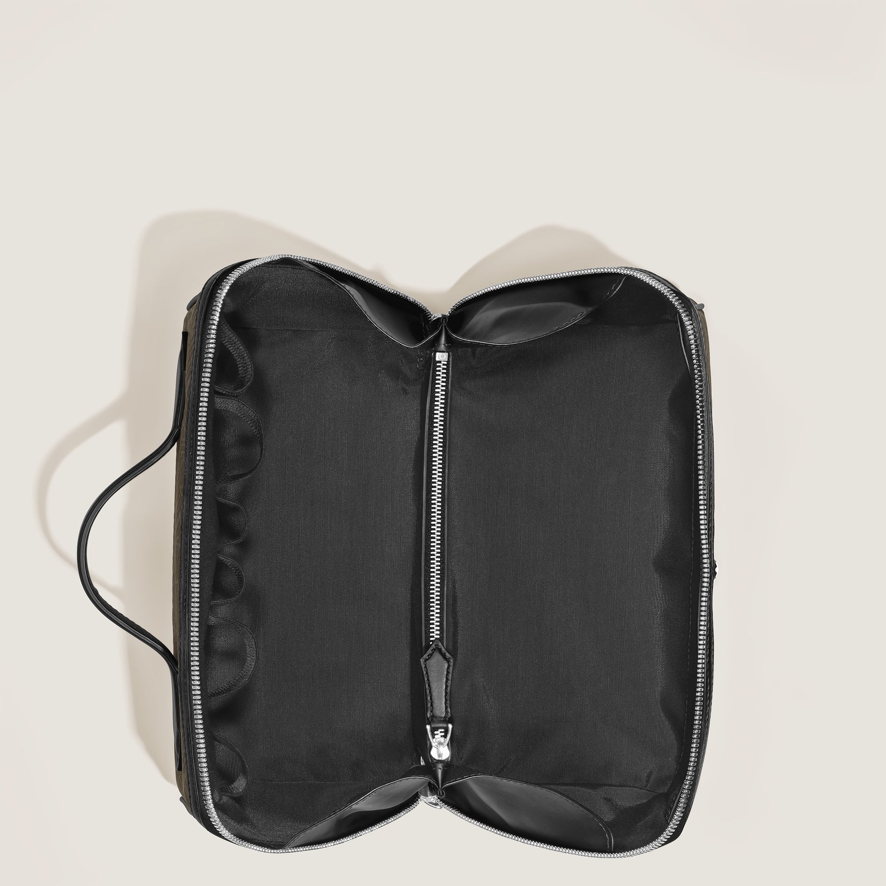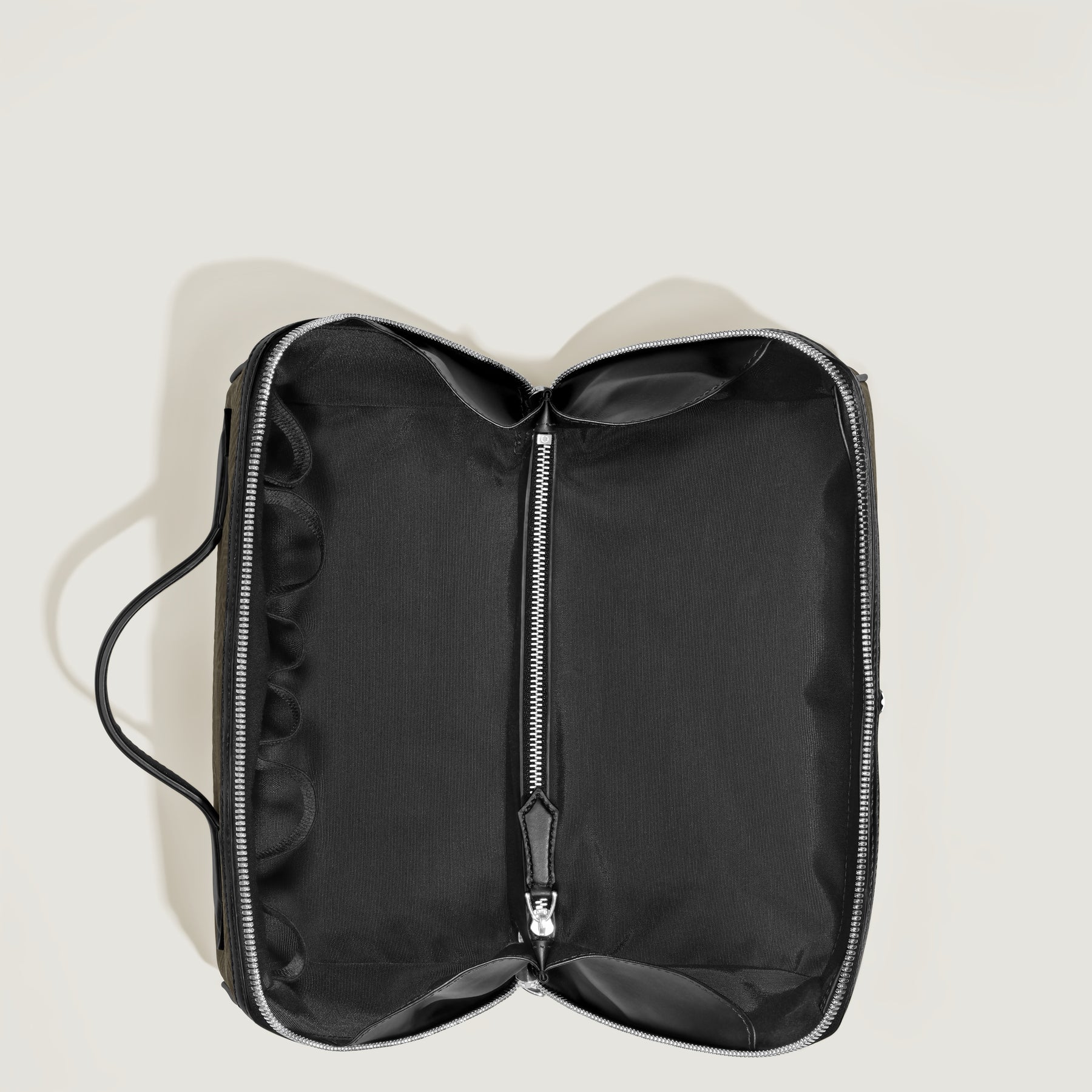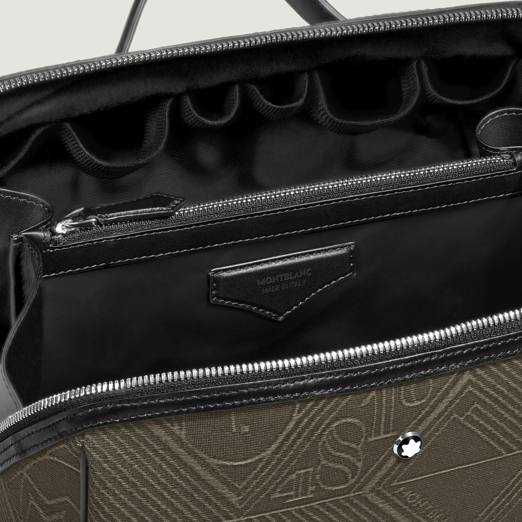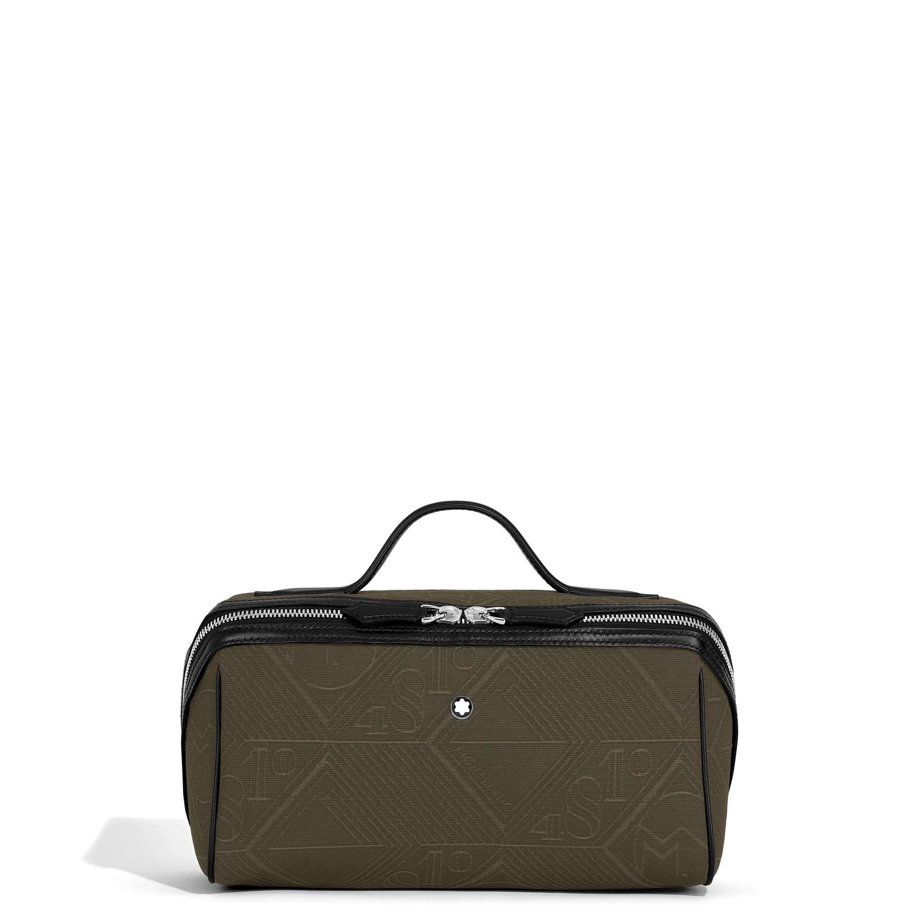 The toiletries bag combines refined craftsmanship with travel-friendly functionality. Crafted from the innovative 4810 jacquard material, its textured, three-dimensional pattern draws inspiration from Montblanc’s Art Deco heritage, the architectural design of Montblanc Haus, and the iconic 4810m peak. The khaki tone, achieved through jacquard weaving, piece dyeing, and stone-washing, adds a timeless, lived-in charm. Designed for convenience, it features a 360° zip opening, a leather top handle, two compartments, and a zipped interior pocket for convenient organisation when traveling.