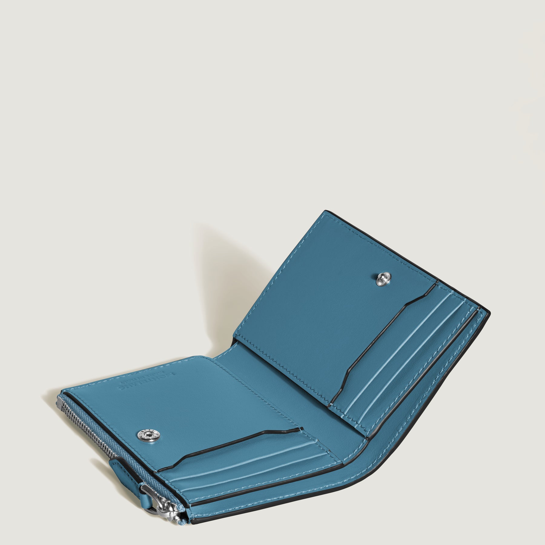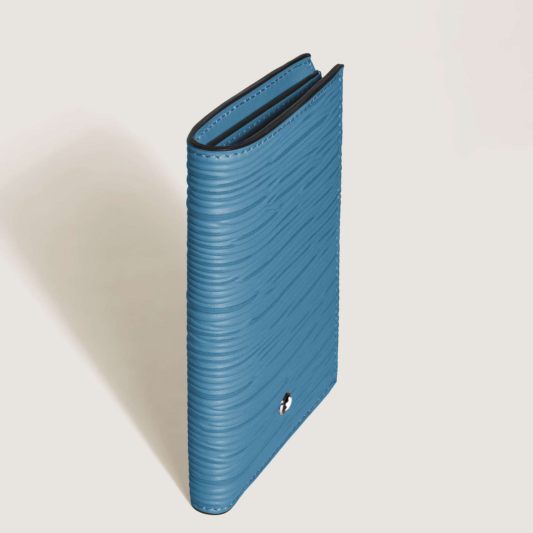 Made for the refined person living life on the go, this slender wallet in smoky blue fits smoothly into any pocket. Made from high-quality printed leather with bark tree motif, it fits six credit cards, contains a compartment for bills, and an additional zipped pocket for coins.