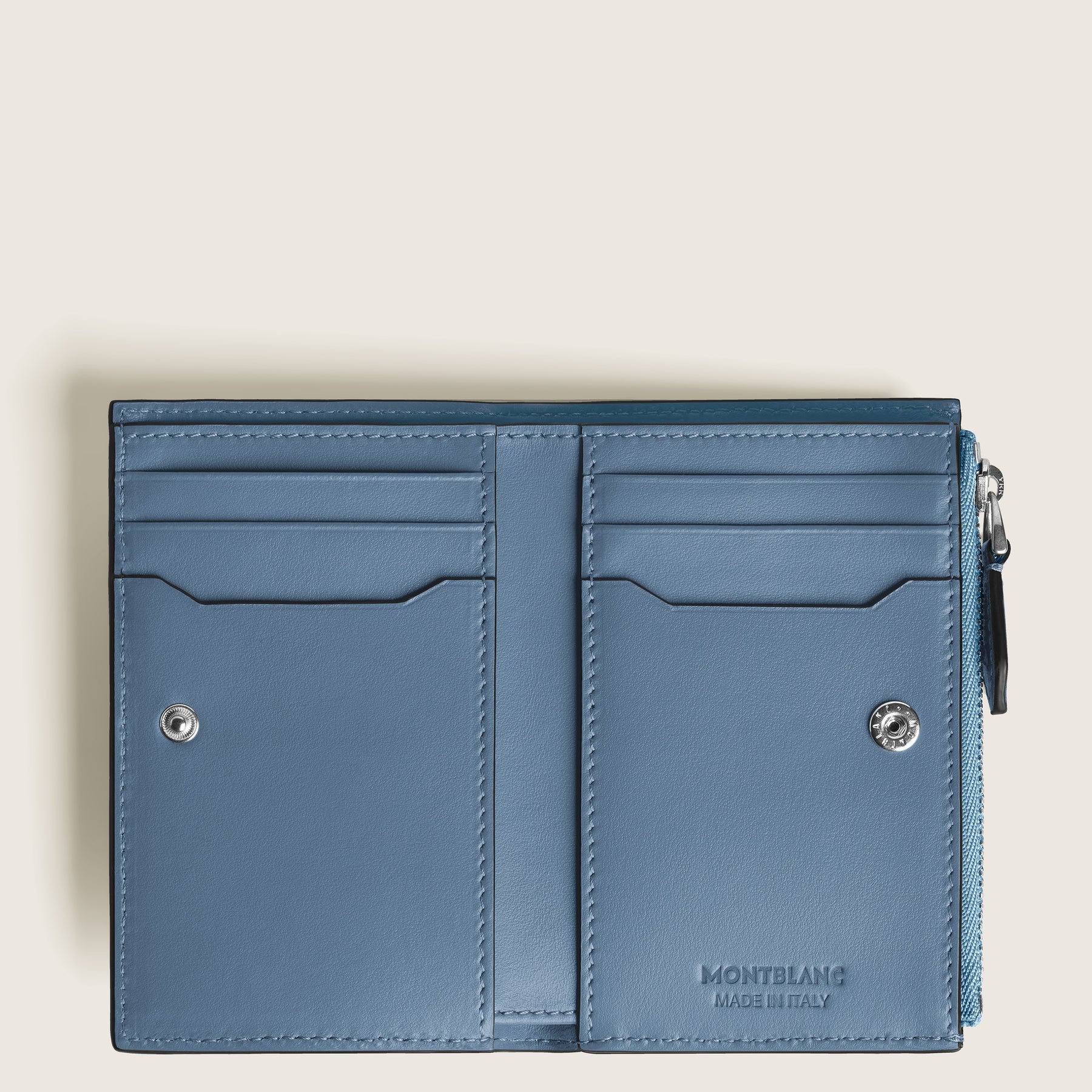 Regular price €440 Vat included. Shipping calculated at checkout.Made for the refined person living life on the go, this slender wallet in smoky blue fits smoothly into any pocket. Made from high-quality printed leather with bark tree motif, it fits six credit cards, contains a compartment for bills, and an additional zipped pocket for coins.