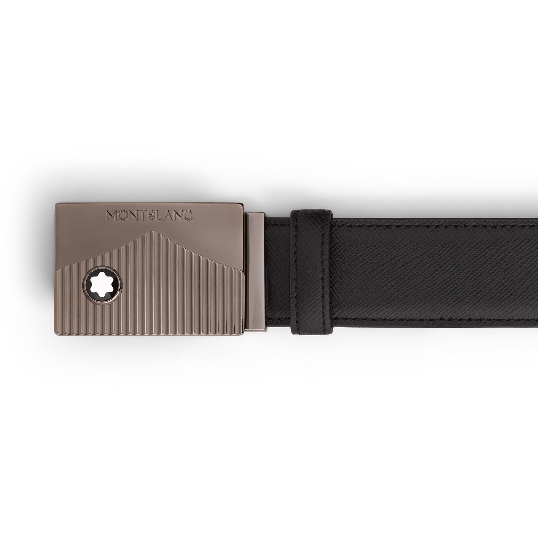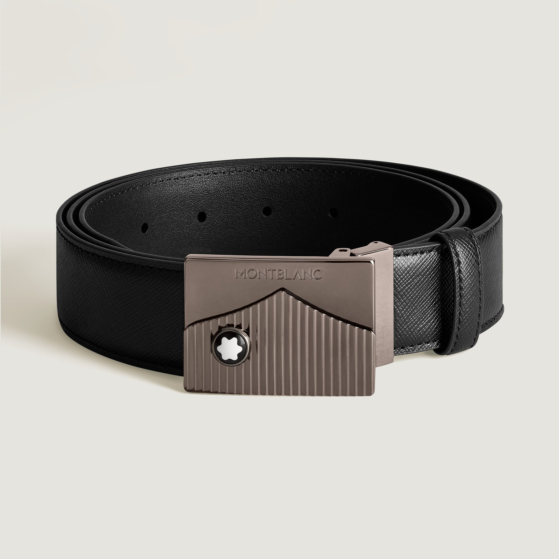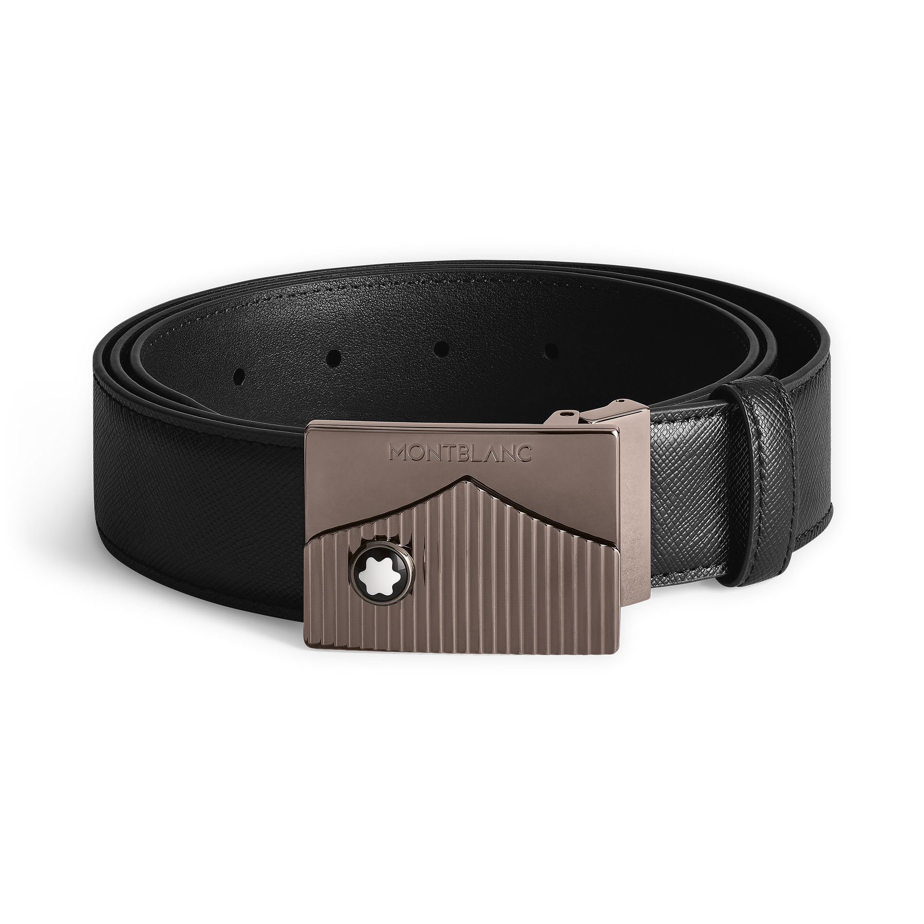 Tie any ensemble together with a trusted Montblanc style companion: a 3.5 cm x 120 cm black Saffiano-printed leather belt adorned with a bold rectangular Meisterstück plate lock with a shiny ruthenium finishing that pays homage to the writing culture. A distinctive asymmetrically-positioned Montblanc emblem crowns the design.