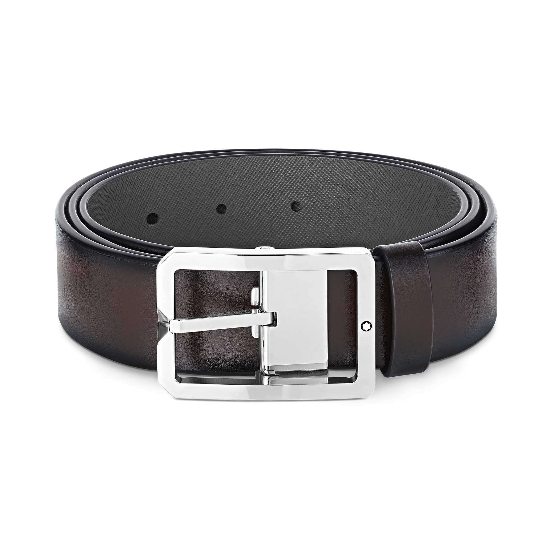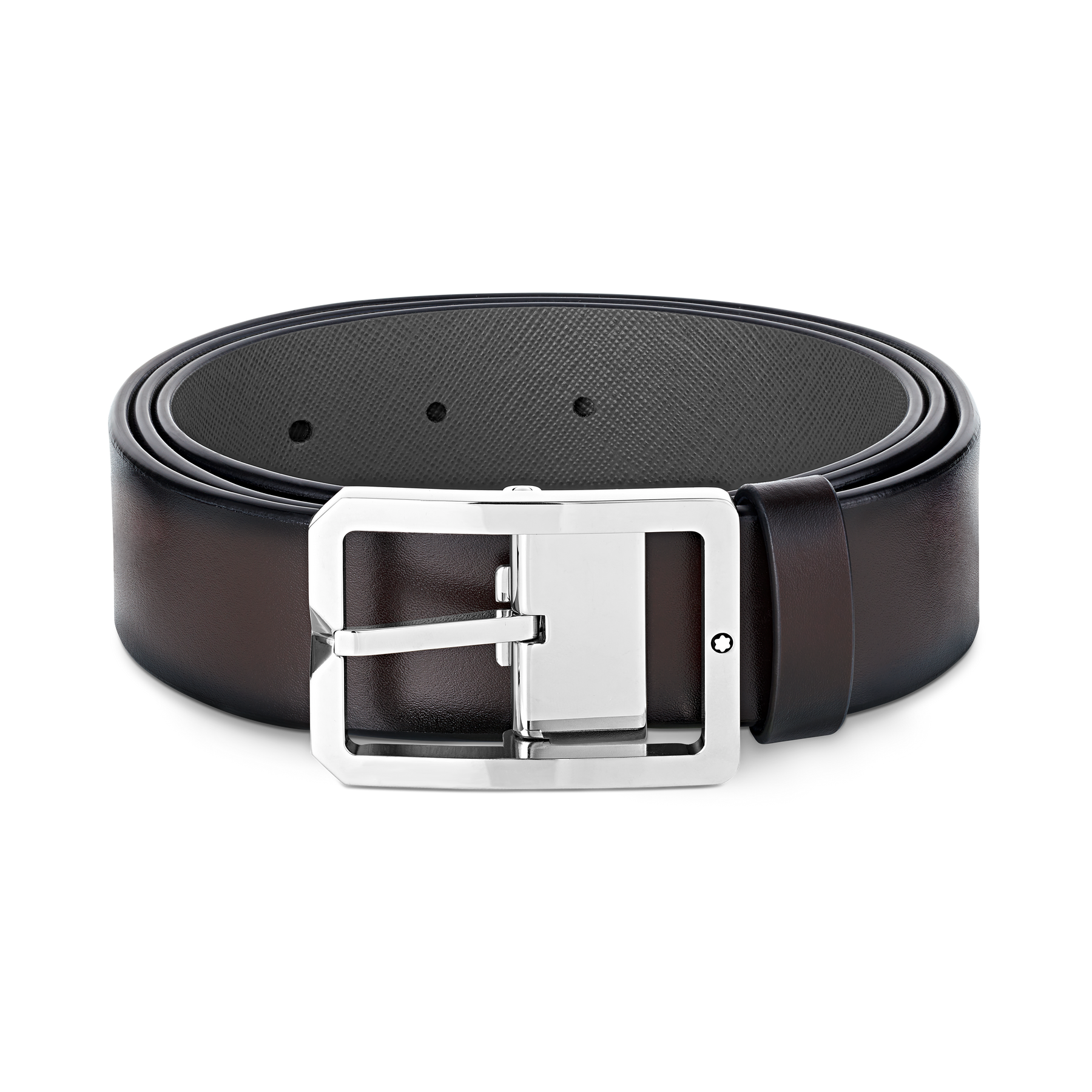 Elevating any look with its smart rectangular frame, this belt features a buckle crafted from stainless steel with our signature Montblanc emblem. The self-adjustable strap is designed with a different color on each side, making for reversible styling options.