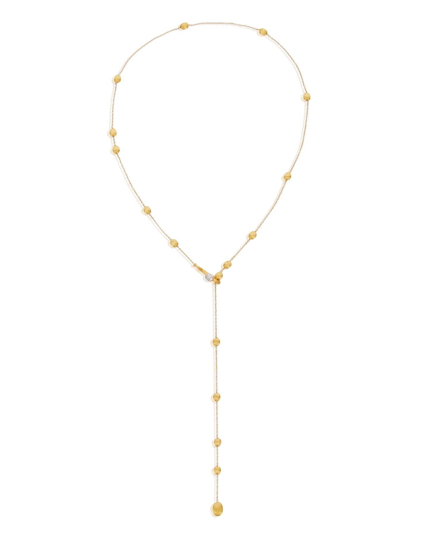 18kt gold boules chase each other in this fresh, contemporary necklace characterized by our unmissable versatility. The hook closure crowned by a refined diamond detail, summa of aesthetics and functionality, opens and closes like a spring, allowing you to adjust and interpret the necklace in the most varied ways. You can choose between a smooth, more classic interpretation, linking the closure to one of the final boules, or a more transgressive one, opting for a more high-necked version. A versatile and light jewel, and capable of adapting to all your facets!