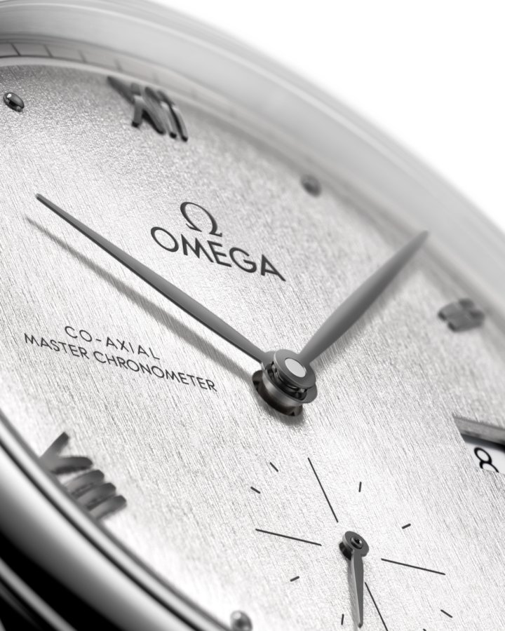 A timeless collection since 1994, the OMEGA De Ville Prestige is now in its third generation. In this 41 mm stainless steel model, the domed silvery dial features a random stamped vertical pattern in a sun-brushed finish. The display is distinguished by PVD greyed hands, as well as alternating Roman numerals and cabochon indexes. The pure look of the timepiece is completed by a date window at 3 o’clock, a small-seconds subdial at 6 o’clock, and a railway minute track on the outer zone. This Master Chronometer certified watch is presented on a stainless steel bracelet and is driven by the OMEGA Master Co-Axial Calibre 8802, which can be admired through the scratch-resistant sapphire crystal caseback.