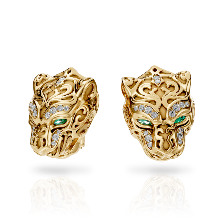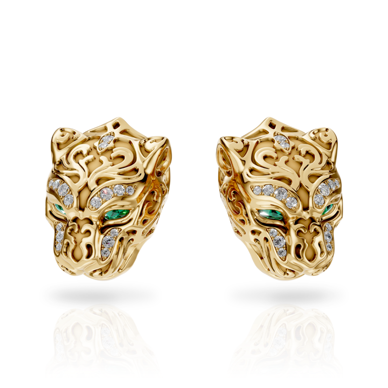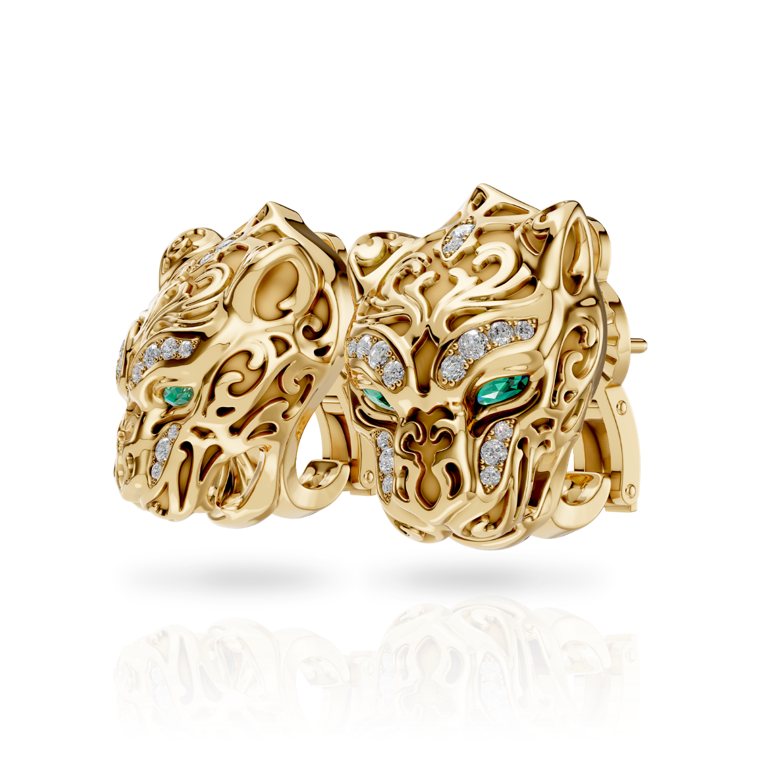 Elevate your style with the Earrings ''Zodaria Filigrana'' from the Origen Collection. Made from 18KT yellow gold, these exquisite earrings feature intricate filigree designs, sparkling diamonds, and radiant emeralds. With an average weight of 19.09 grams, they are the perfect blend of luxury and elegance.