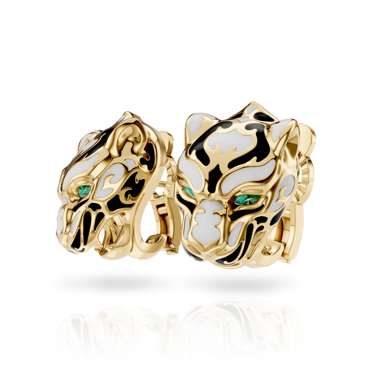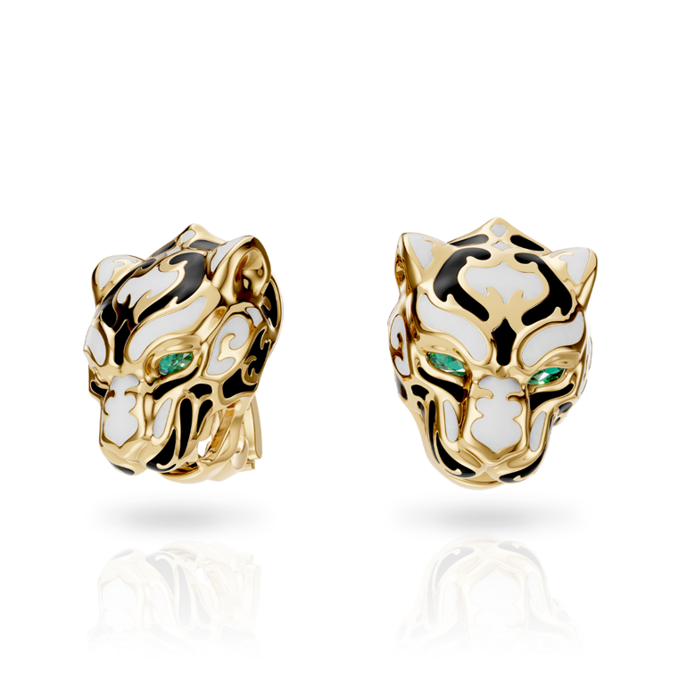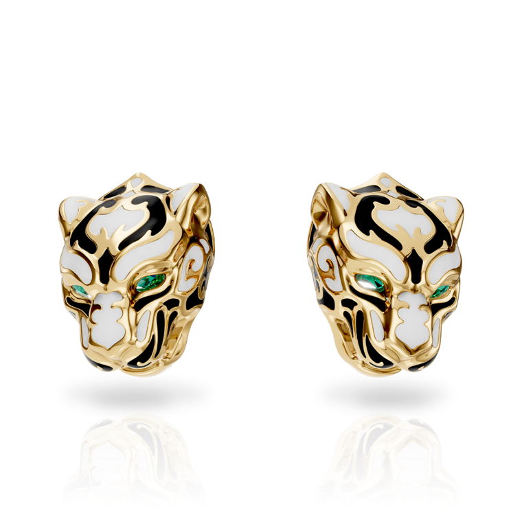 Enhance your elegance with the Earrings ''Zodaria'' Color from the Origen Collection. Crafted from 18KT yellow gold, these stunning earrings feature vibrant enamel and radiant emeralds. With an average weight of 17.99 grams, they offer a luxurious and eye-catching finish to your look.