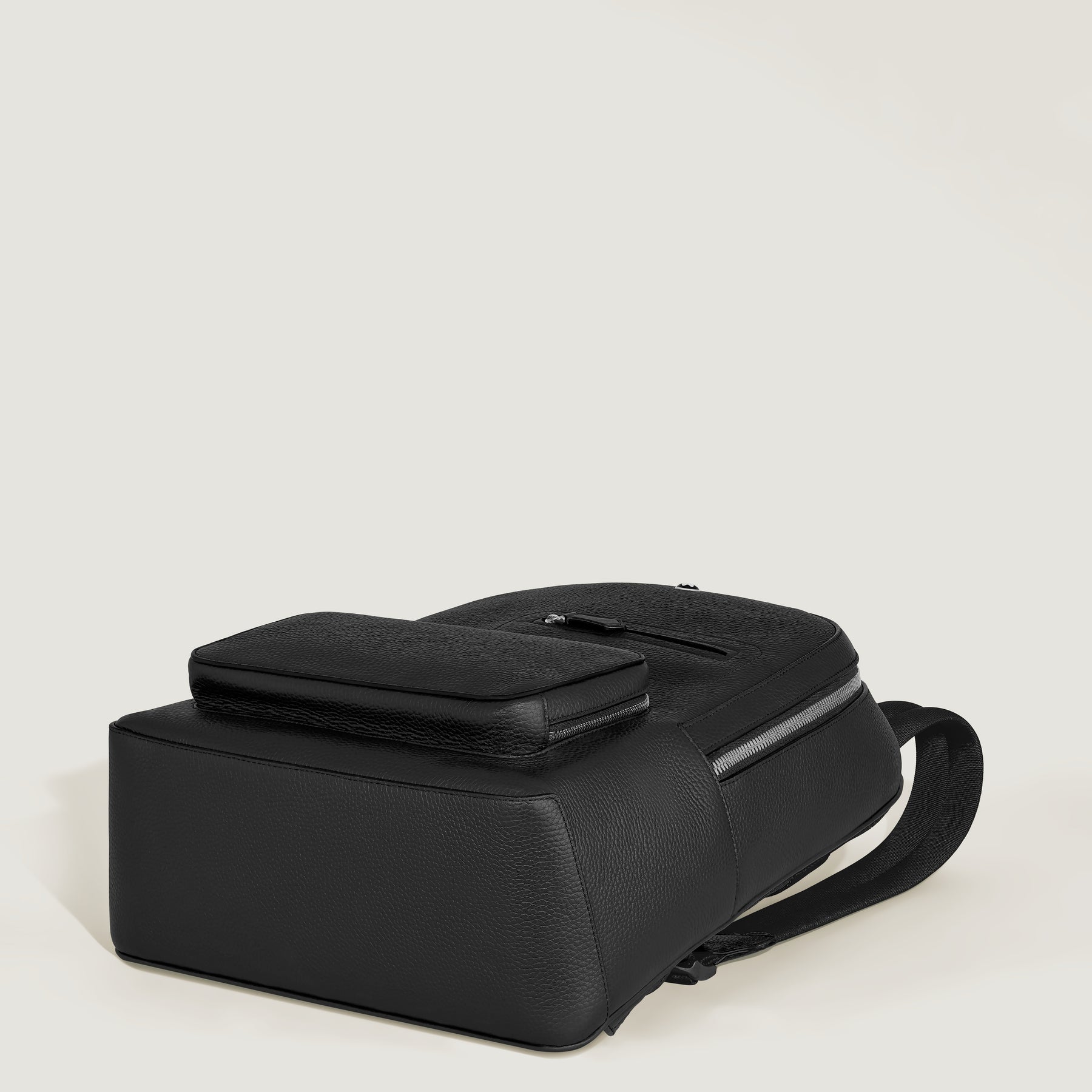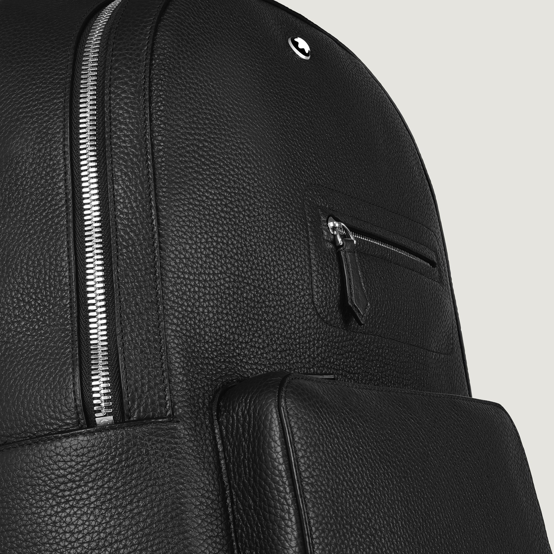 This luxurious leather backpack is your refined companion for daily commutes or short business trips. Inspired by Montblanc's heritage in writing, it features stitching and zip pullers that echo the iconic nib design, while the granular texture of the leather adds even further sofistication. The backpack offers versatile carrying options with comfortable adjustable shoulder straps and a satellite system for easy attachment to larger luggage. Its spacious main compartment hosts essentials and features a padded compartment suitable for laptops up to 13", an open pocket and a pen loop for seamless organisation of smaller items.