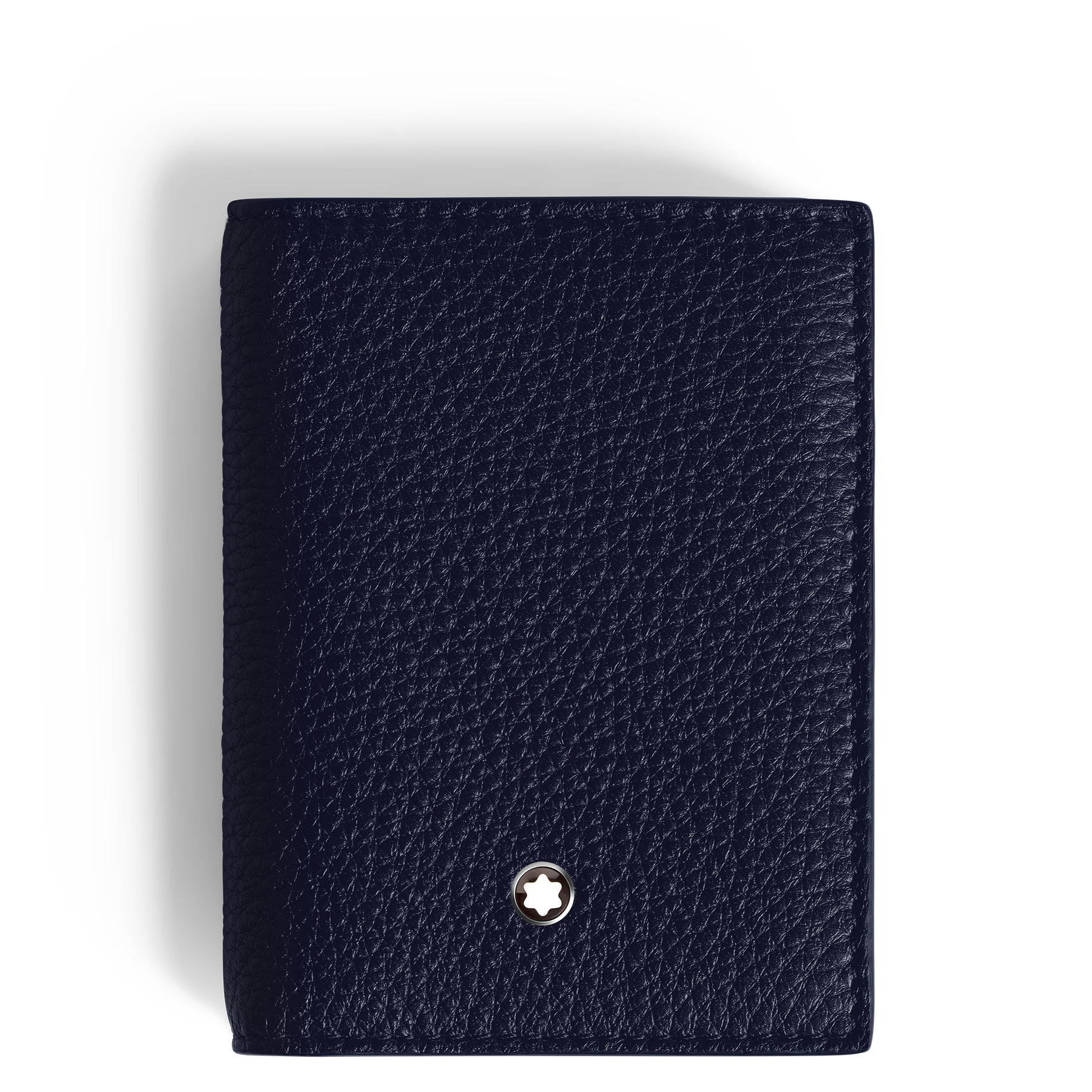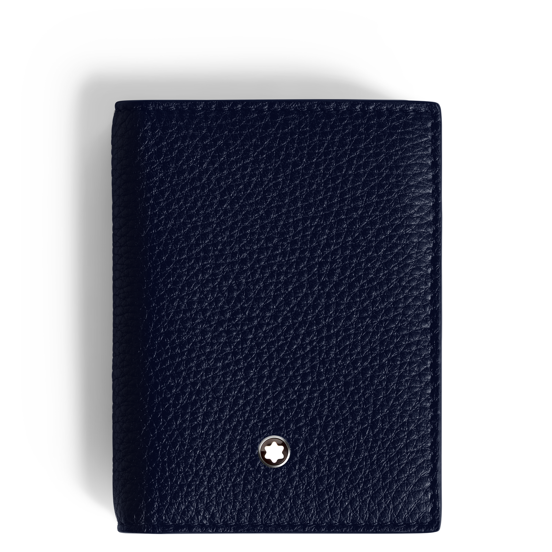 Carefully crafted in luxurious midnight blue soft grain leather, this pocket-friendly card holder is both chic and functional. It neatly fits several business cards and four credit cards, all while showcasing the elegant Montblanc emblem on the front.