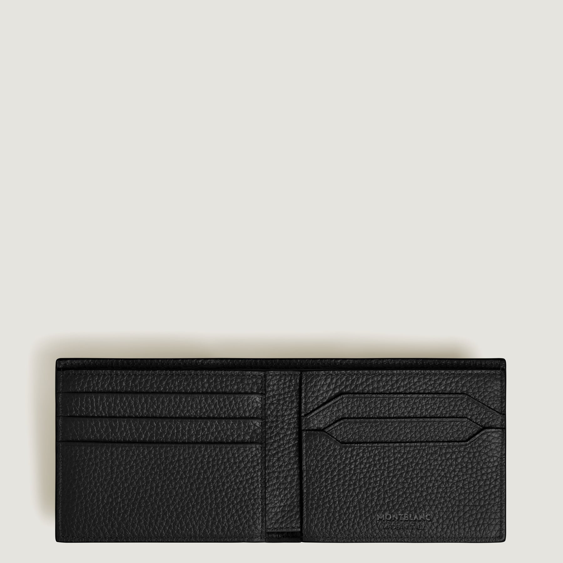 Slim and sophisticated, this classic bifold wallet in black premium grain leather is an elegant choice for everyday use. Thoughtfully designed, it features six credit card slots, two compartments for banknotes, and two additional pockets for receipts. Lined with black fabric and finished with the iconic Montblanc emblem, it combines practicality with timeless style.