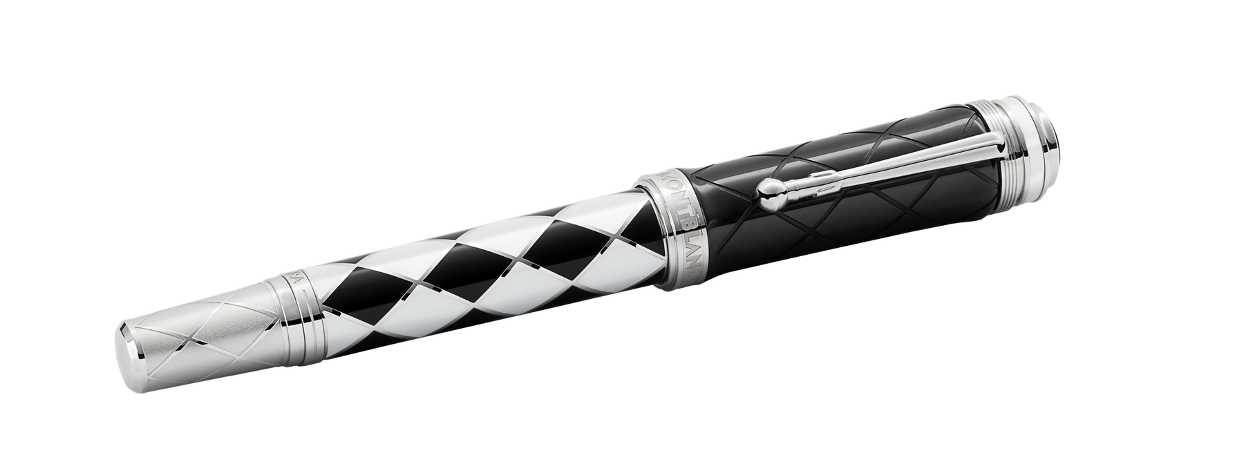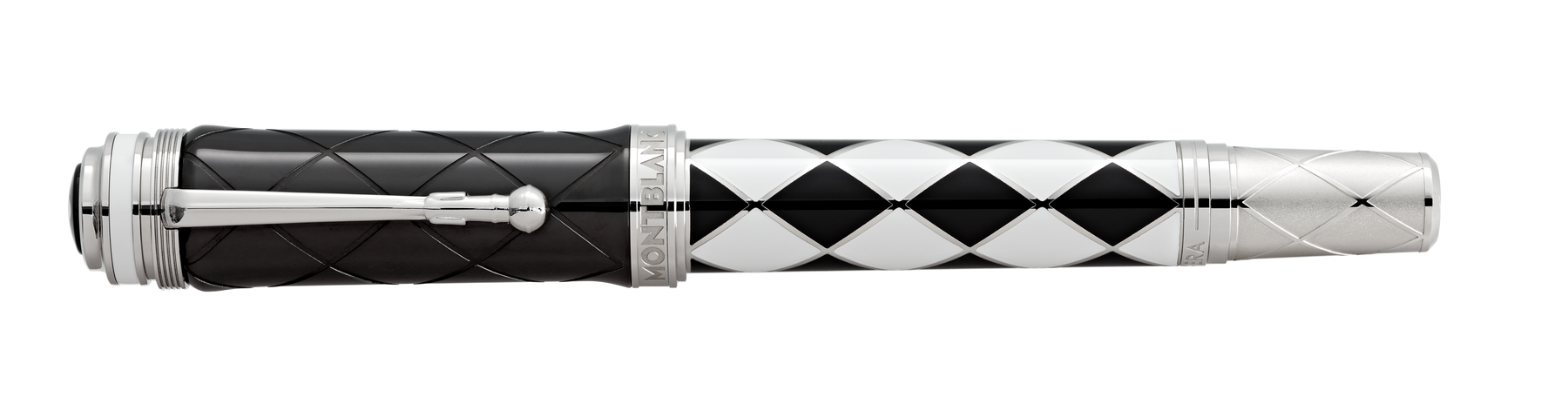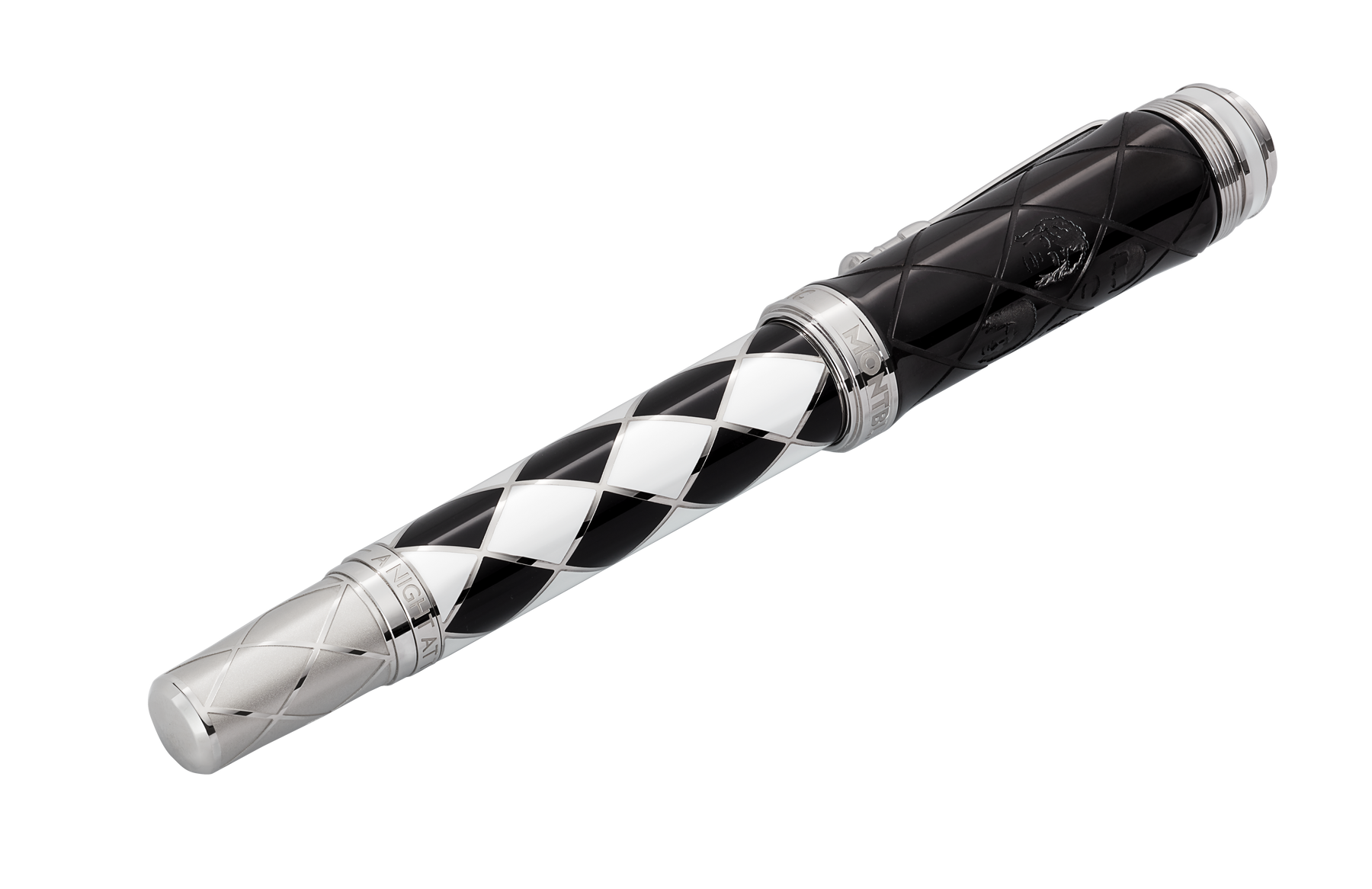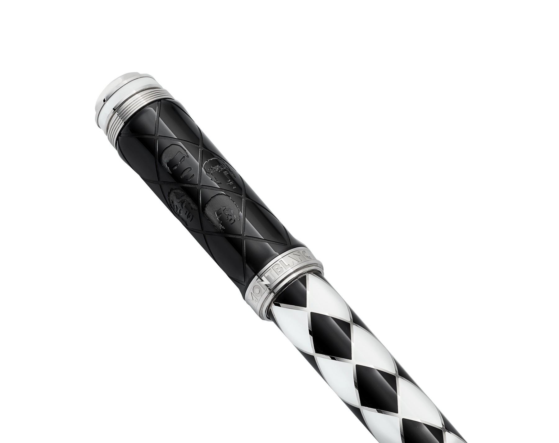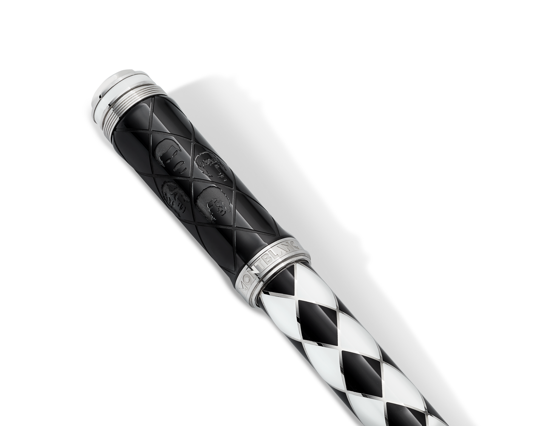 The album A Night at the Opera – and in particular its centrepiece Bohemian Rhapsody – exemplifies Freddie Mercury’s dream of creating a record of epic proportions. The single’s six-minute, extravagant arrangement combines piano ballads, opera and rock, interspersed with layer upon layer of operatic, cascading vocals and quirky references to such characters as Galileo or Scaramouche, a figure from the Commedia dell’Arte. Mercury himself, known for his flamboyant stage costumes, would often slip into the guise of another Commedia dell’Arte figure, the Harlequin. His famous tight-fitting unitard with its black-and-white diamond pattern underlined his unconventional stage persona and inspired the rhomboidal design of the barrel. The edition also honours Brian May and his amazing guitar playing, which was so pivotal to the sound of the album, by giving the platinum-coated cone its distinctive look. This is reminiscent of the volume and tone control knobs on May’s famous electric guitar. The cone ring is embossed with the name of the album: A Night at the Opera. The year of its release, 1975, inspired the decision to limit the edition to 1975 fountain pens and 1975 rollerballs.