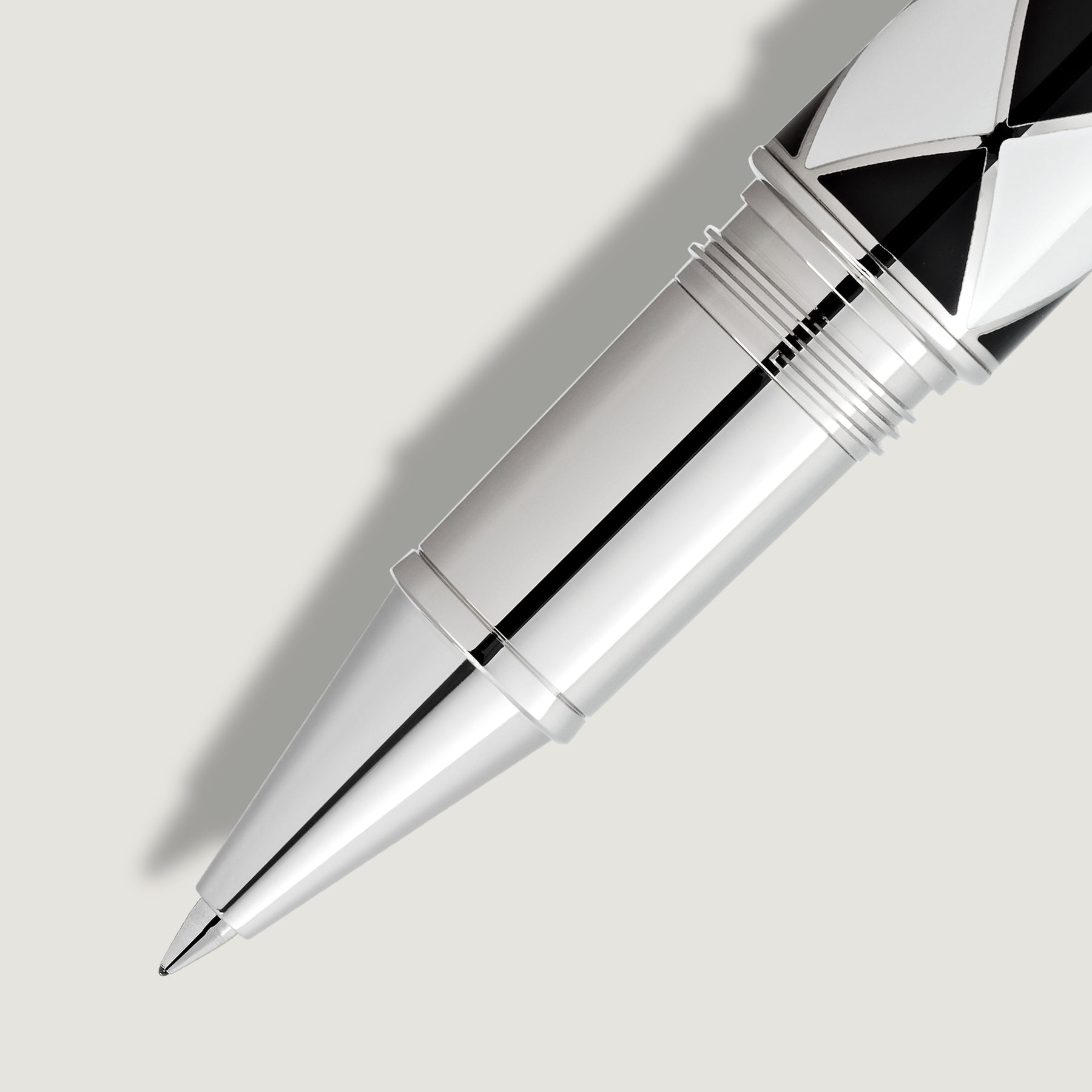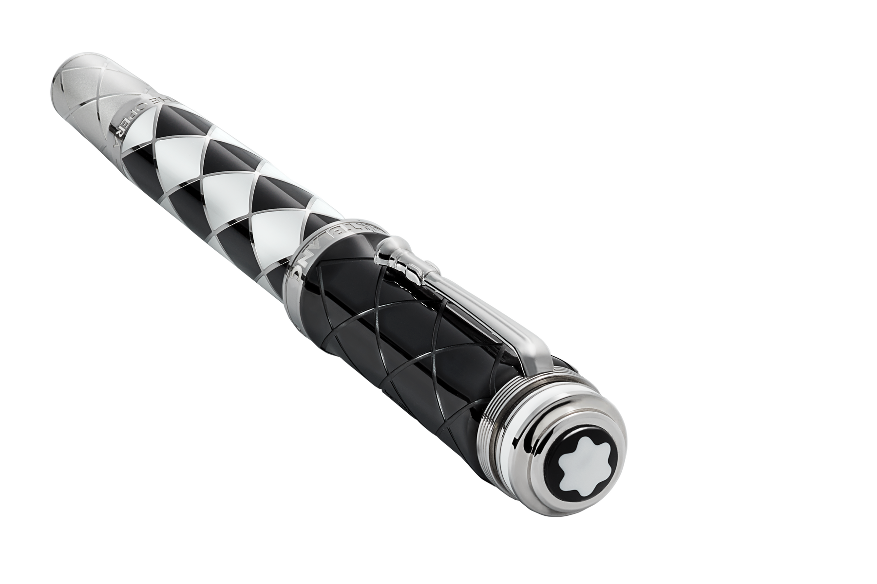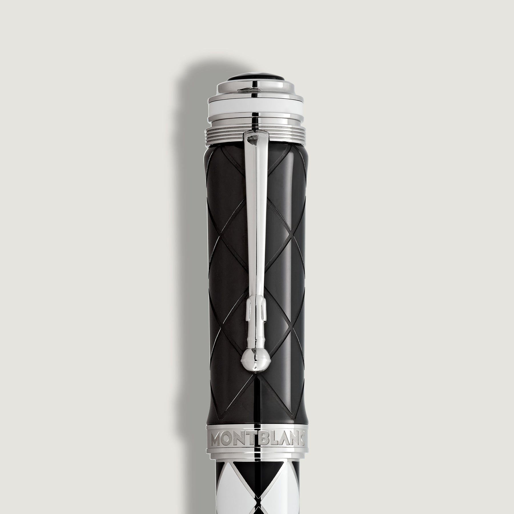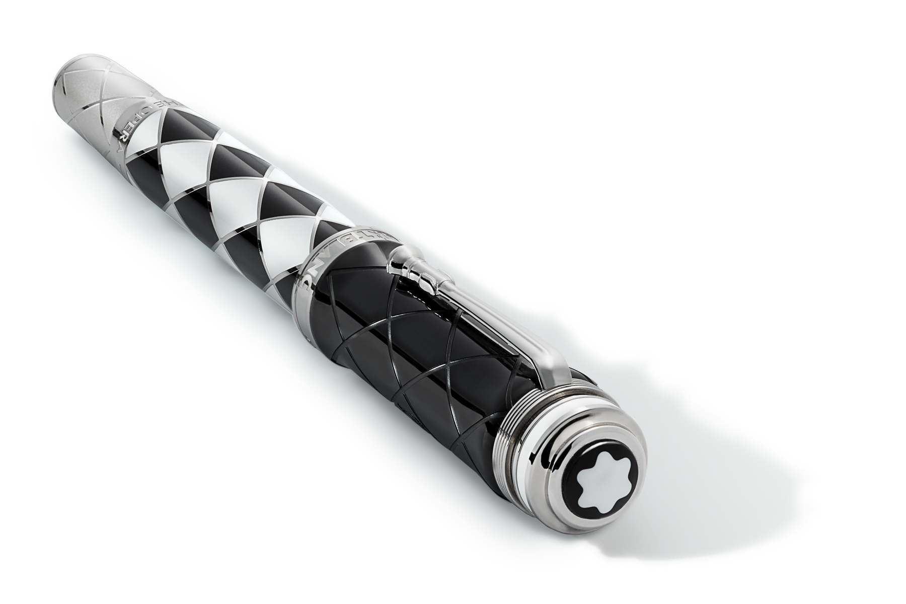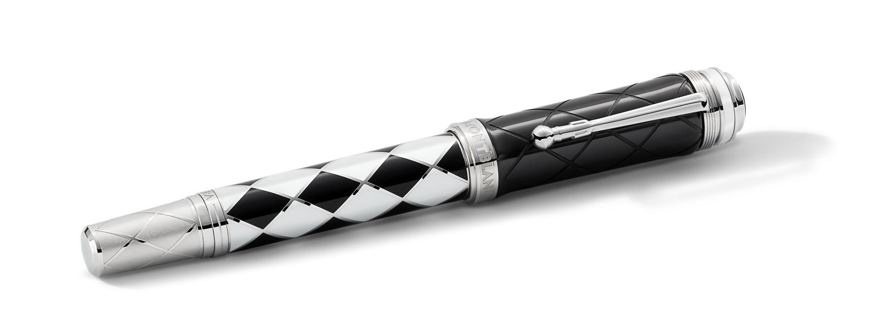 The album A Night at the Opera – and in particular its centrepiece Bohemian Rhapsody – exemplifies Freddie Mercury’s dream of creating a record of epic proportions. The single’s six-minute, extravagant arrangement combines piano ballads, opera and rock, interspersed with layer upon layer of operatic, cascading vocals and quirky references to such characters as Galileo or Scaramouche, a figure from the Commedia dell’Arte. Mercury himself, known for his flamboyant stage costumes, would often slip into the guise of another Commedia dell’Arte figure, the Harlequin. His famous tight-fitting unitard with its black-and-white diamond pattern underlined his unconventional stage persona and inspired the rhomboidal design of the barrel. The edition also honours Brian May and his amazing guitar playing, which was so pivotal to the sound of the album, by giving the platinum-coated cone its distinctive look. This is reminiscent of the volume and tone control knobs on May’s famous electric guitar. The cone ring is embossed with the name of the album: A Night at the Opera. The year of its release, 1975, inspired the decision to limit the edition to 1975 fountain pens and 1975 rollerballs.