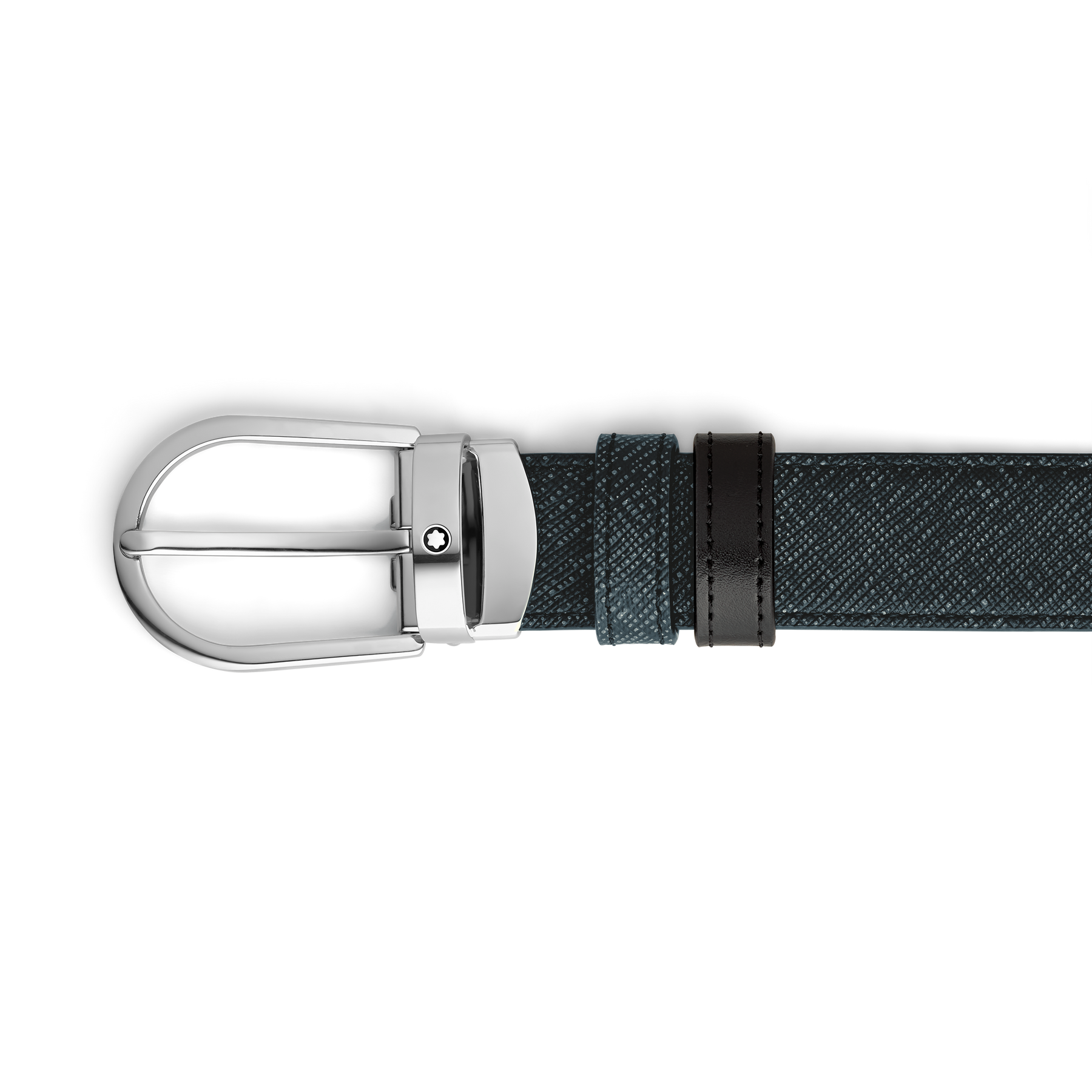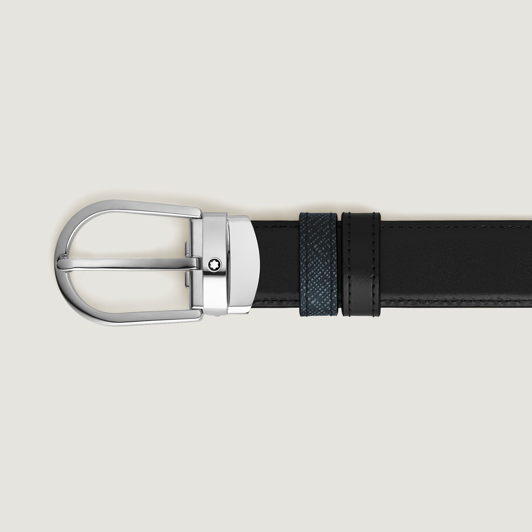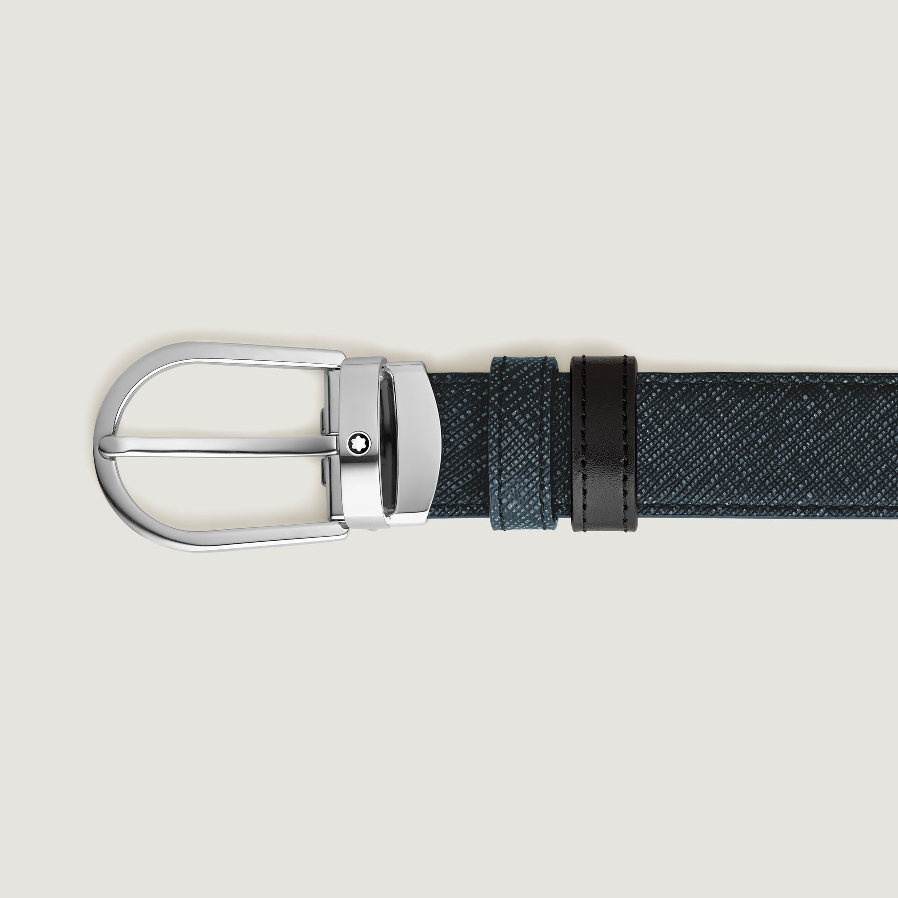 This reversible belt combines elegance and versatility, offering two distinctive styles in one accessory. Featuring our distinctive Montblanc horseshoe buckle in palladium finish, one side of the 30mm strap is presented in a tweed blue saffiano-printed leather, while the reverse offers sleek black Meisterstück leather for classic sophistication.