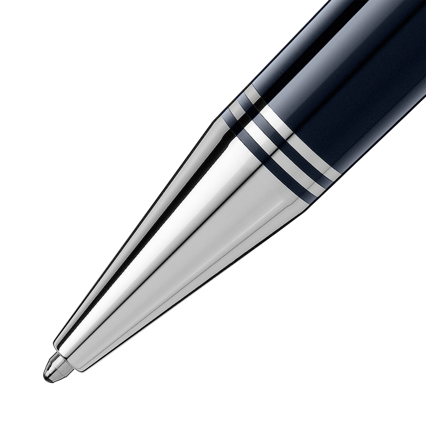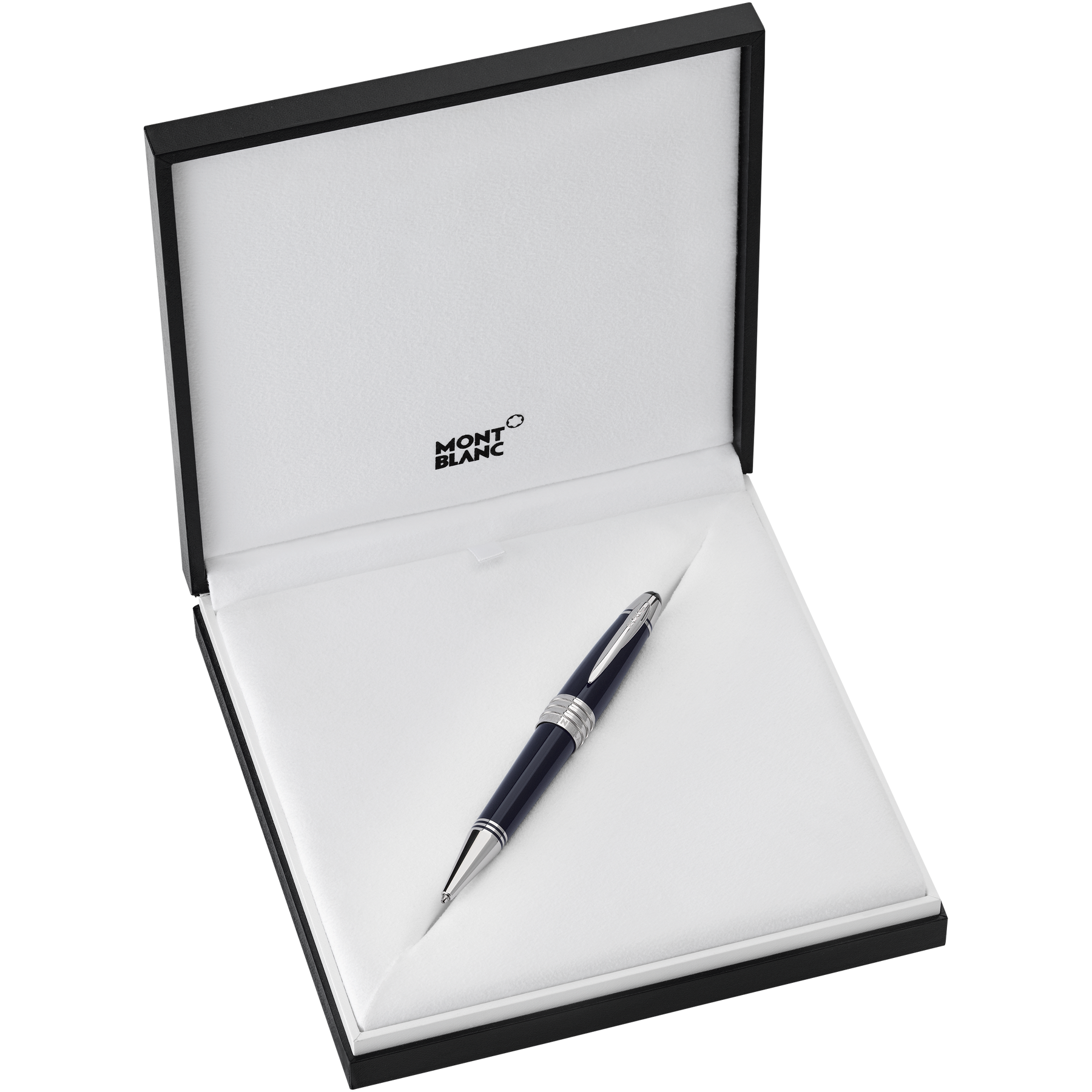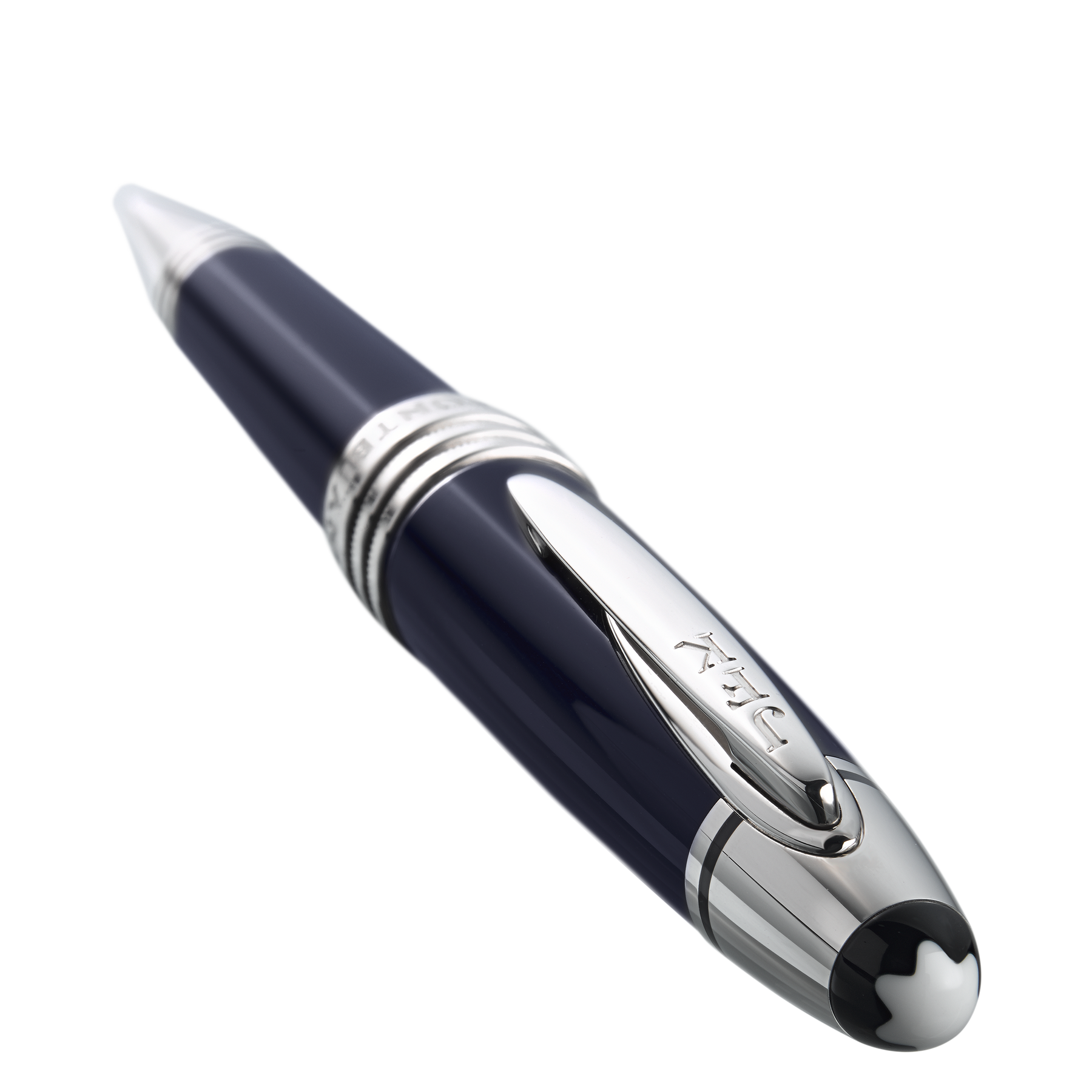Commemorating one of the most revered figures of modern history. the Special Edition John F. Kennedy makes symbolic references to the life of J.F. Kennedy in subtle design details. The blue precious resin refers to both Kennedy’s time in the U.S. Navy and the famous Ivy League style. His initials “JFK” are engraved on the platinum-coated clip. and the three platinum-coated cap rings stand for Kennedy’s three brothers. The Special Edition is crowned by the Montblanc emblem in precious resin.