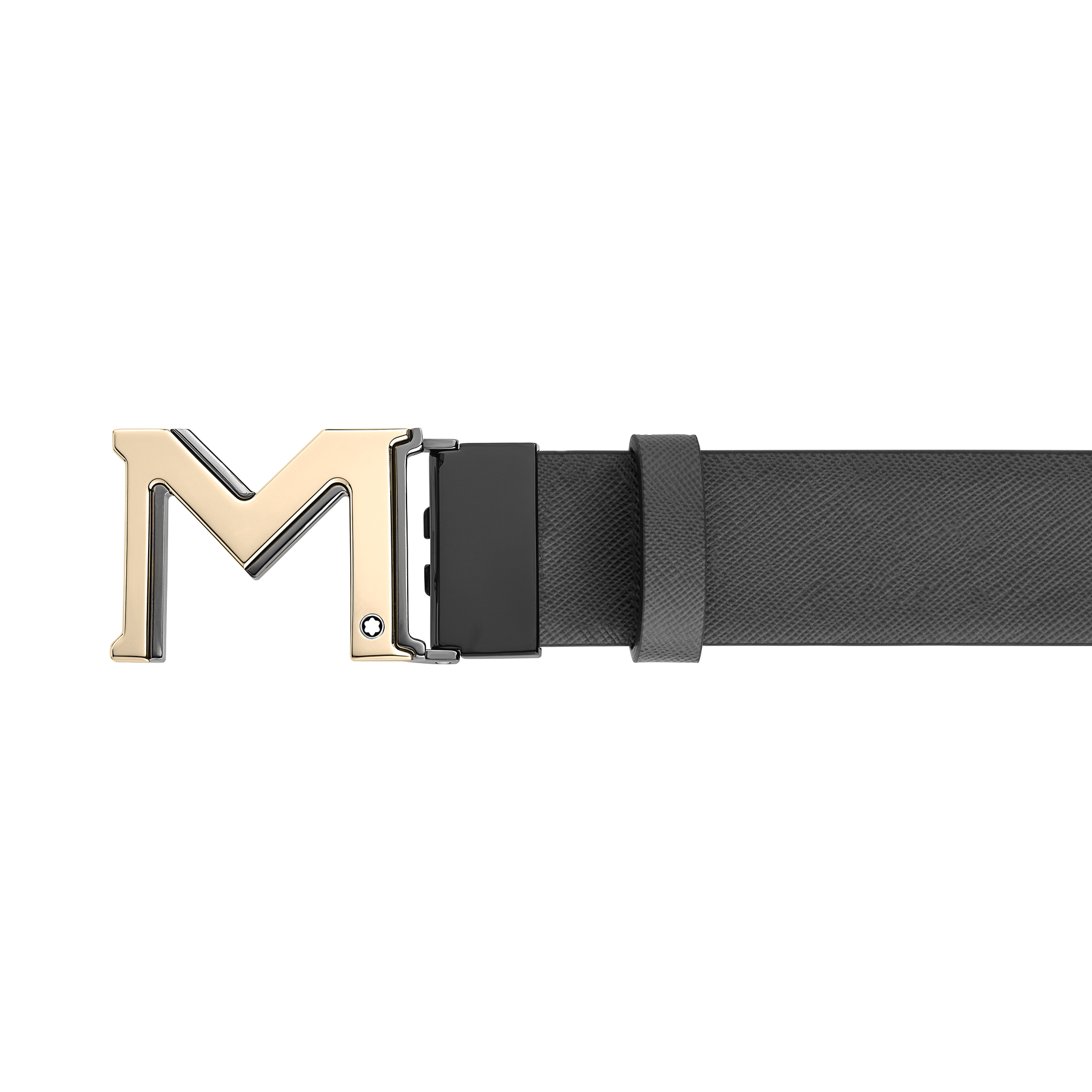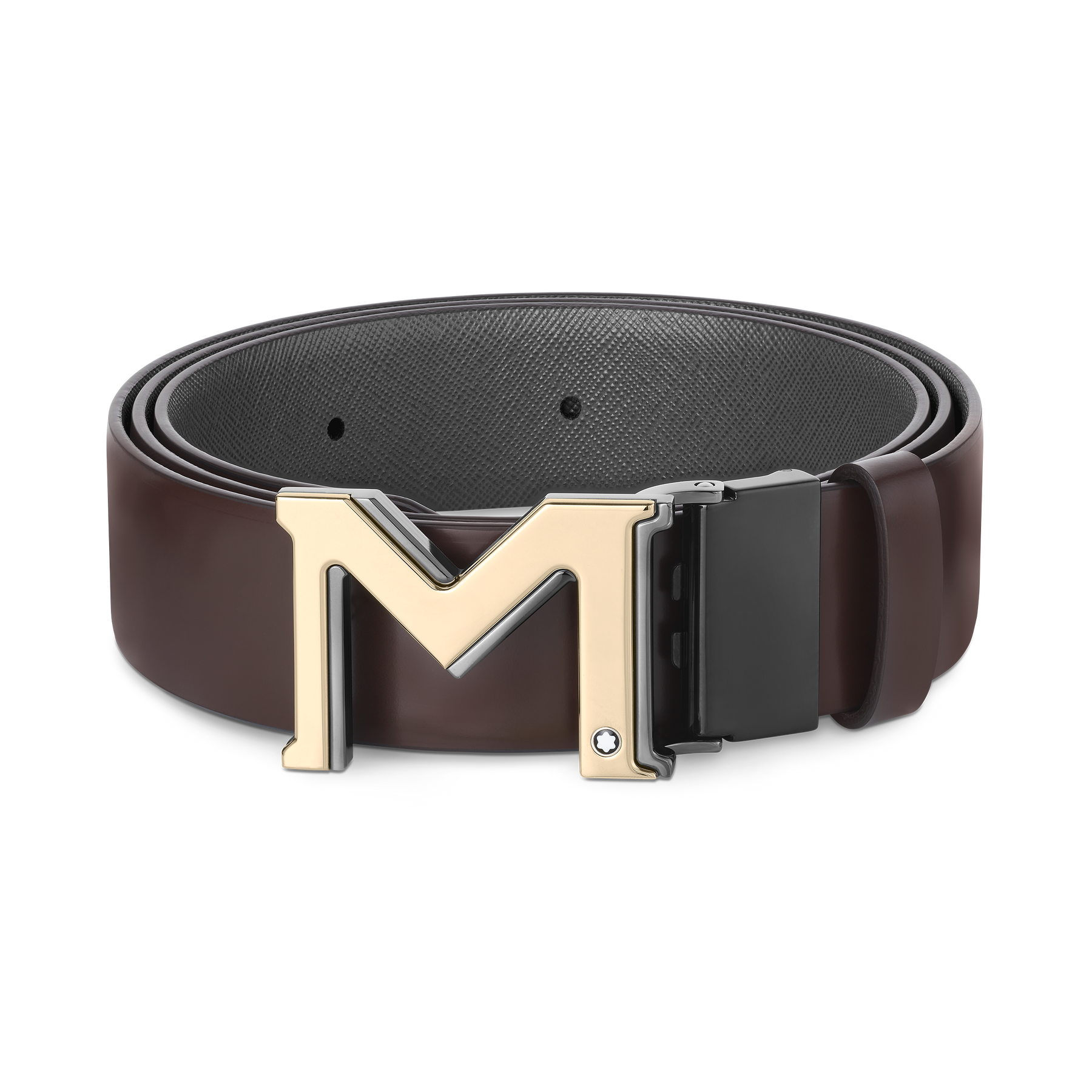 Make a bold statement with the oversized 'M' buckle on this belt, crafted with light-gold and ruthenium finishes and crowned with our signature emblem. The self-adjustable strap is designed with a different color on each side, making for reversible styling options.