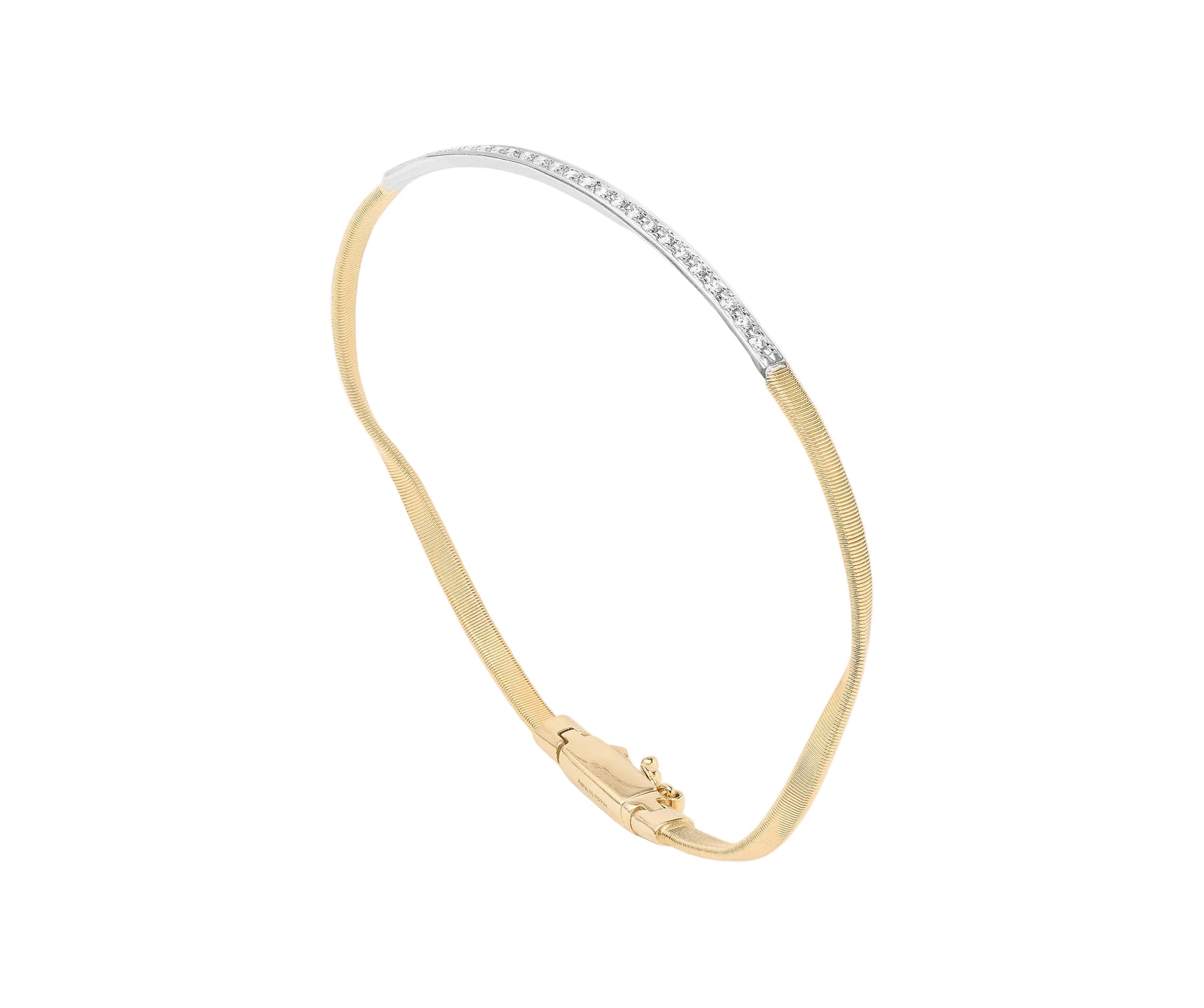 A single 18kt yellow gold spiral strand, carefully created with the exclusive coil technique and embellished with a diamond bar. Perfect on its own, stunning paired with the other bracelets in the collection.