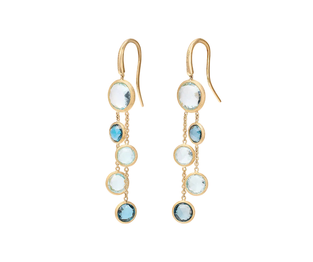 Regular price €1.670 Vat included. Shipping calculated at checkout.These colourful feature a selection of topazes in various shades of blue, carefully selected for their intensity and purity, embellished with an 18kt yellow gold ring finely hand-engraved using an ancient Florentine technique.