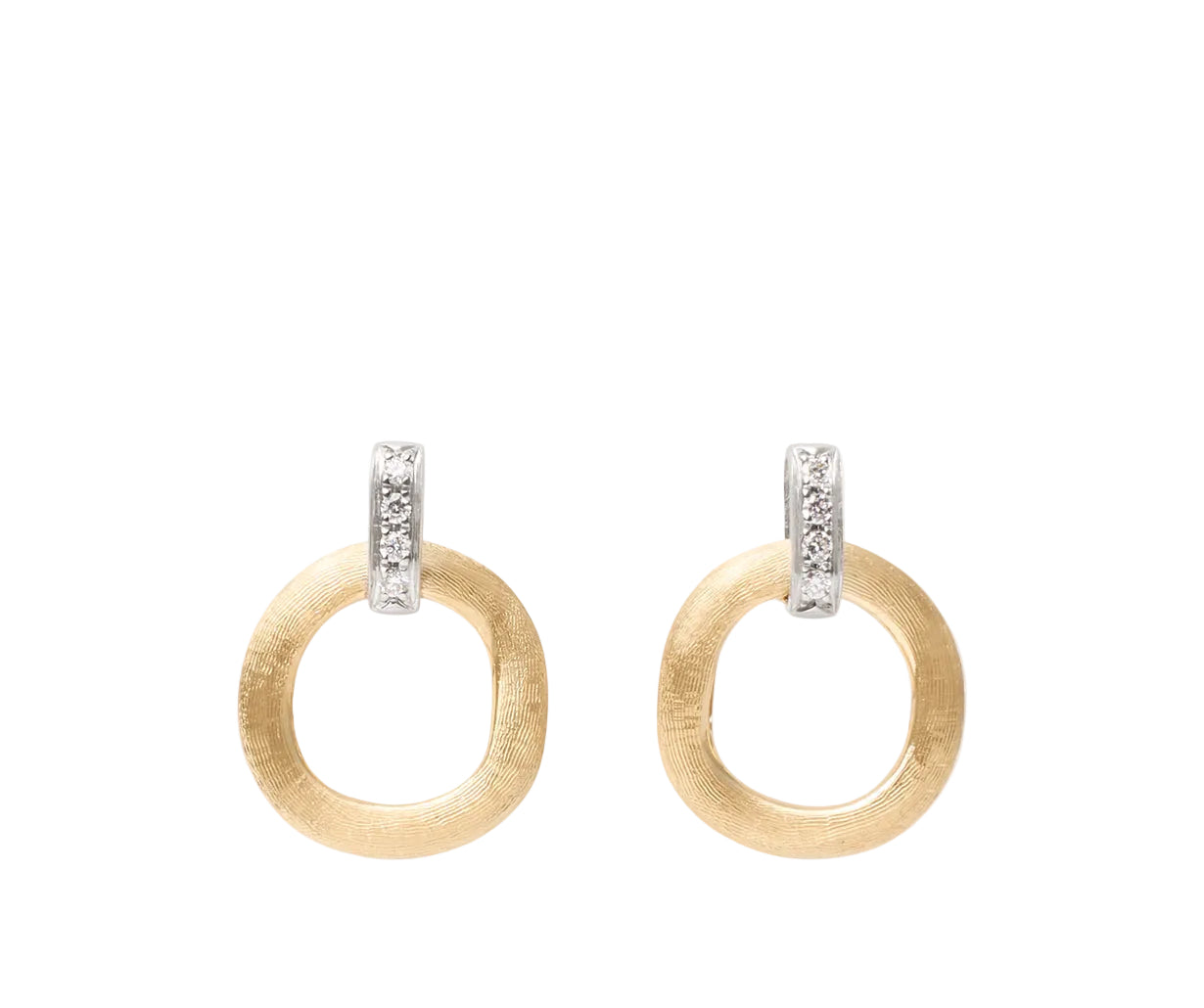 These stud earrings are characterised by sophisticated and captivating irregular circles in 18kt yellow gold, finely hand-engraved with an ancient Florentine technique. A brilliant-cut diamond pavé adds a sublime sparkle.