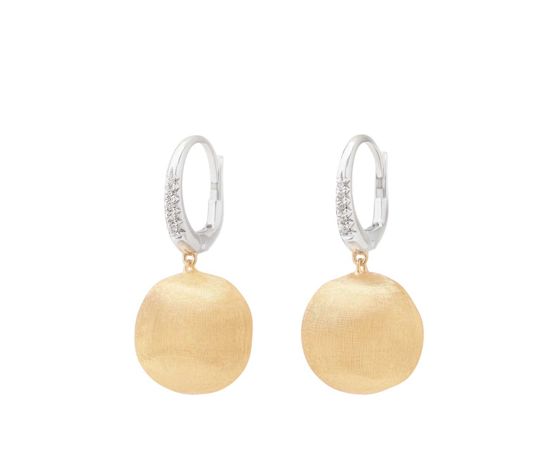 A stylish design for these 18K yellow gold earrings, finely hand-engraved using the ancient Florentine technique, which gives our gold a fine, brushed texture. Each earring has been set with an elegant diamond pavé clip.