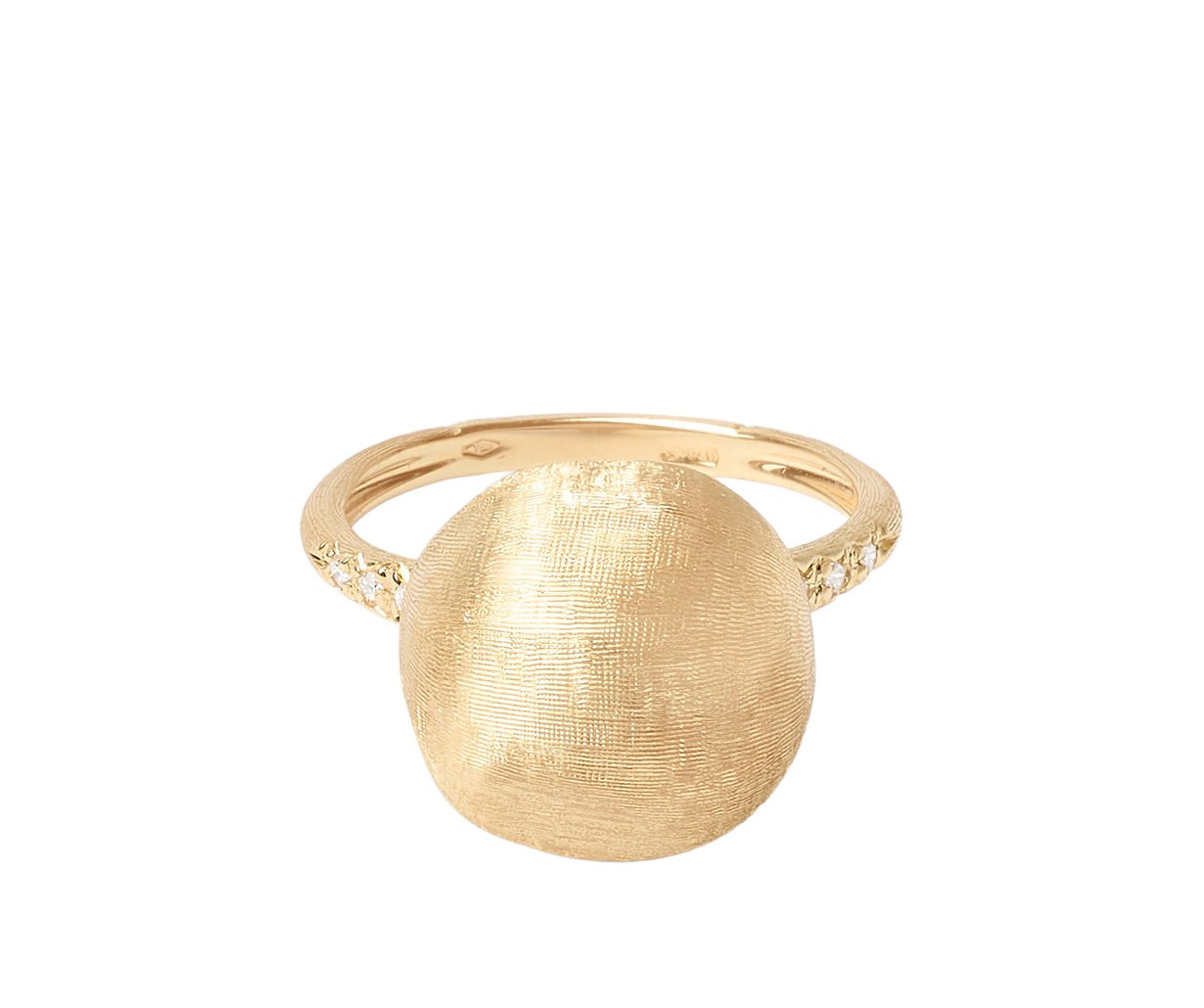 This 18kt yellow gold ring is finely hand-engraved with an ancient Florentine technique which gives our gold a fine, brushed texture. A timeless classic, it is embellished by delicate brilliant-cut diamonds on the shank.