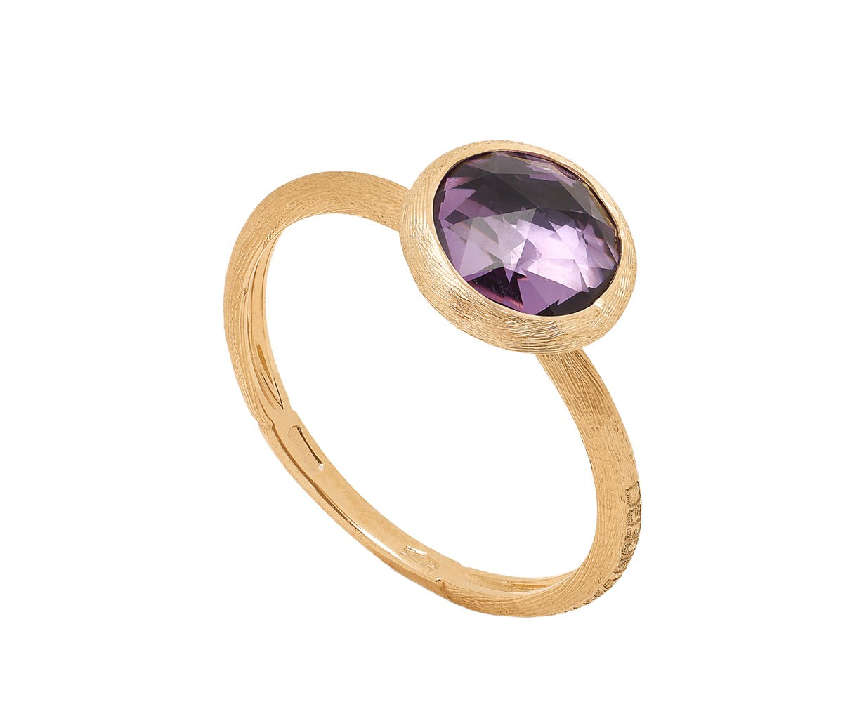 Regular price €1.230 Vat included. Shipping calculated at checkout.Ring in 18kt yellow gold hand-engraved with the ancient Florentine technique and embellished with a rose-cut amethyst. Elegant on its own, it is the perfect addition to a stackable look.
