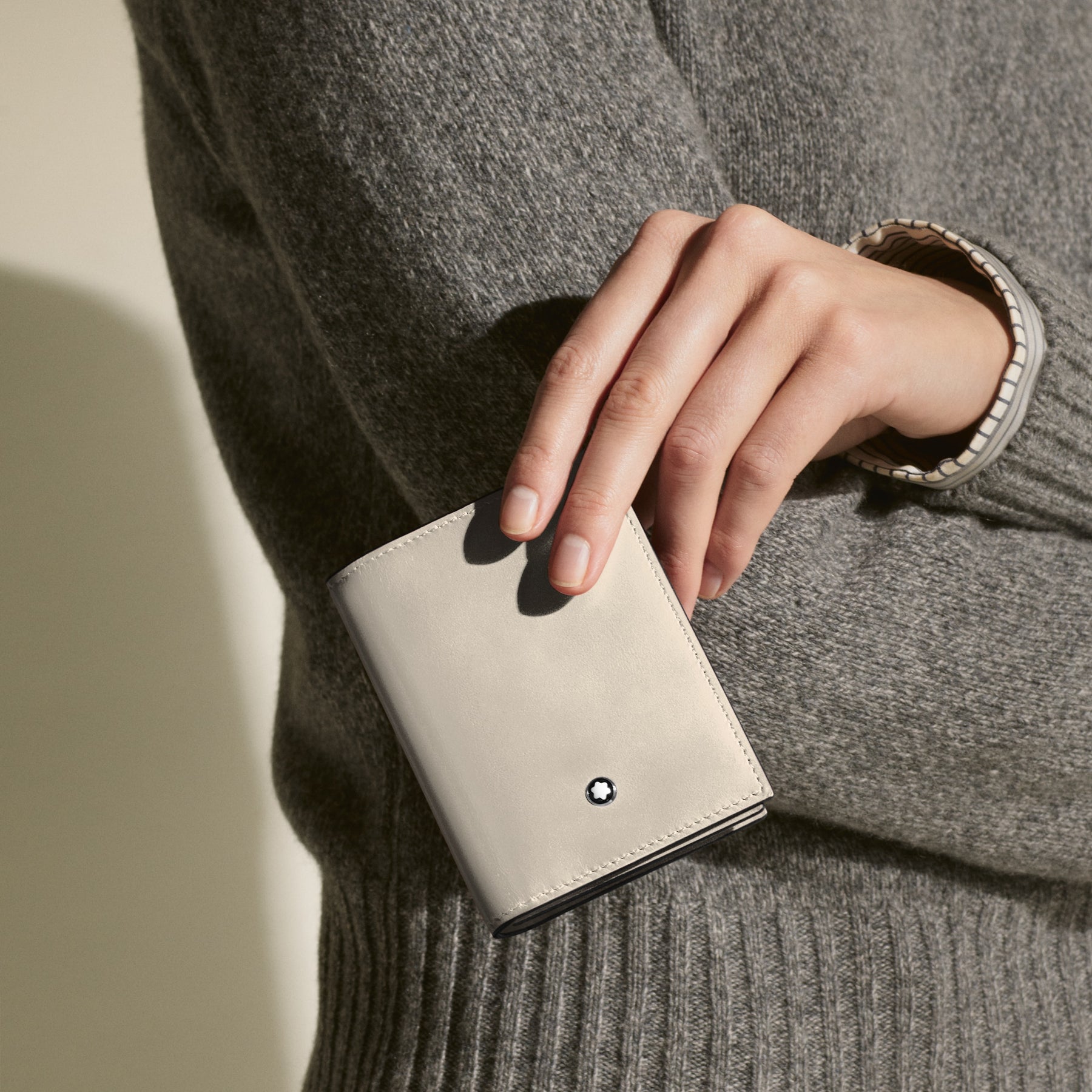 Regular price €300 Vat included. Shipping calculated at checkout.Designed as a life companion, this practical card holder comes with a compartment for business cards as well as slots for four credit cards. The accessory comes in deep shine cloudy beige leather complete with the Montblanc emblem detailing the front.