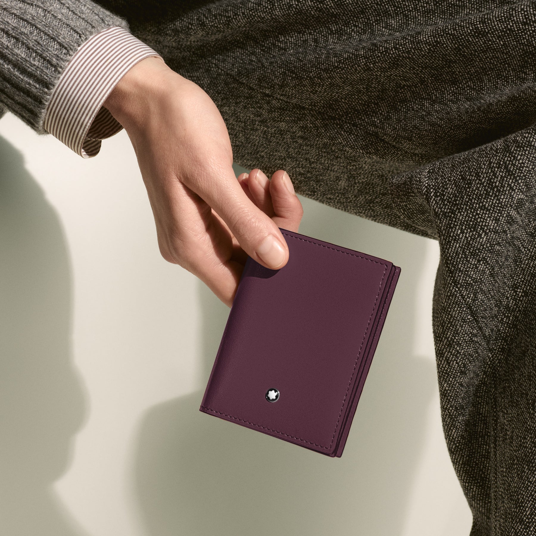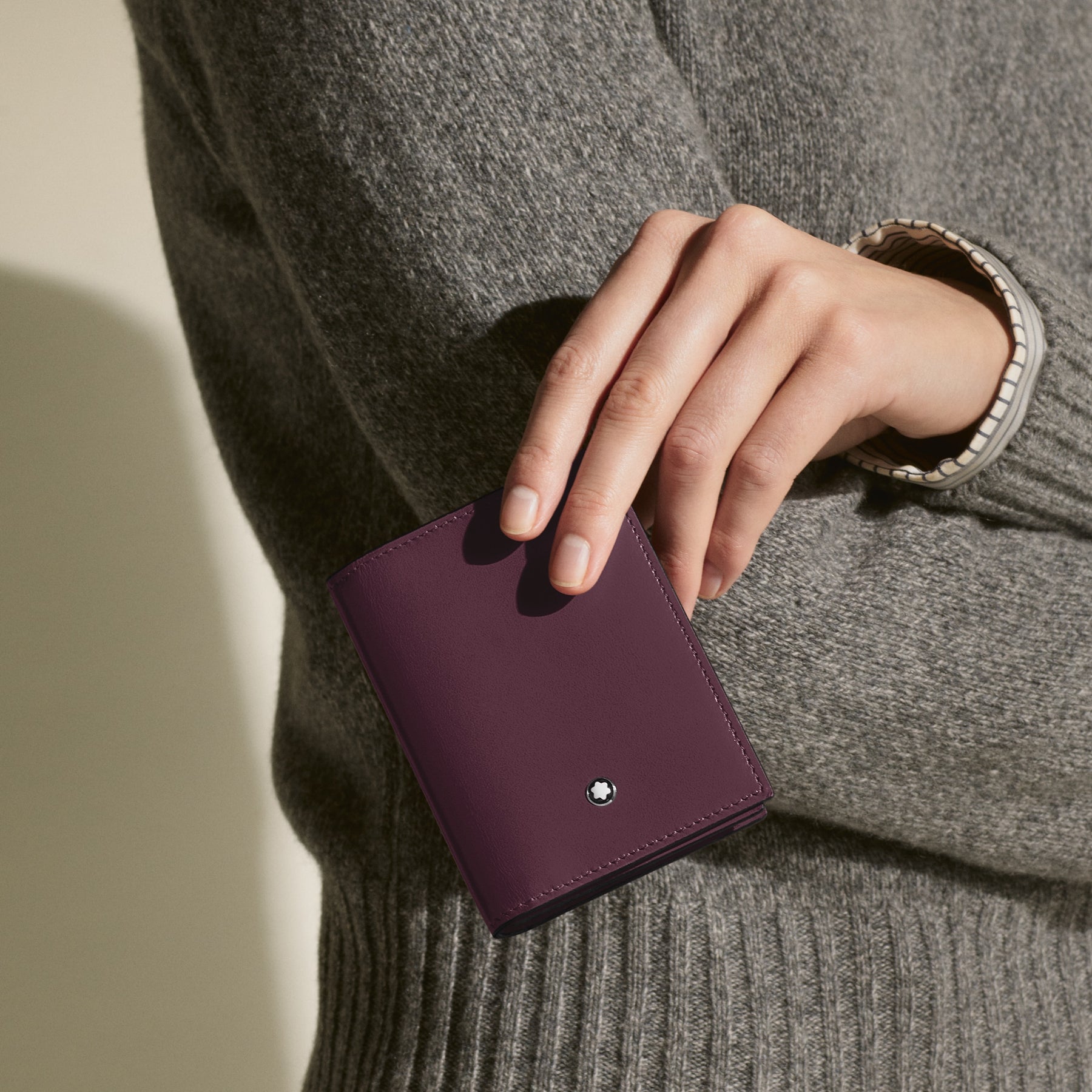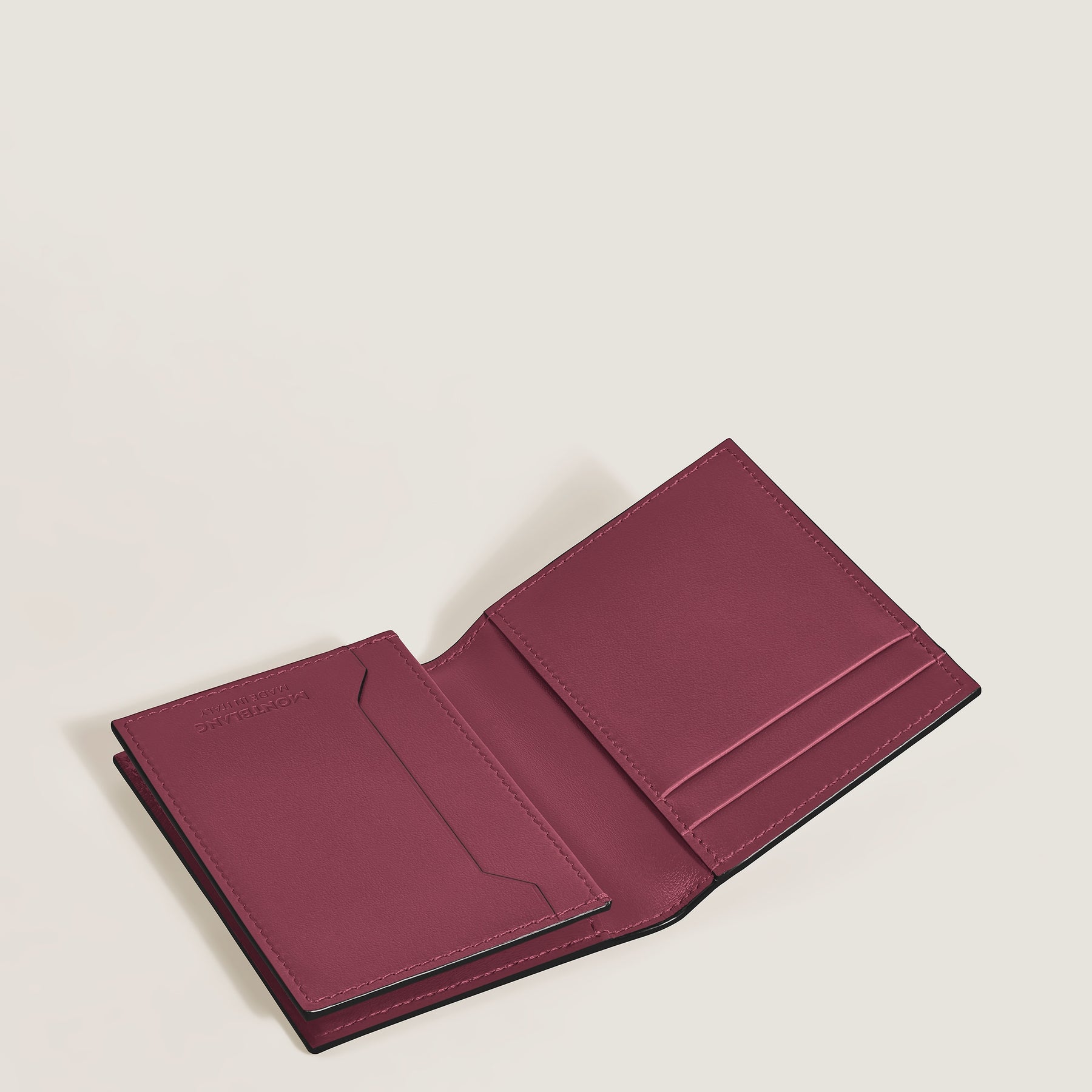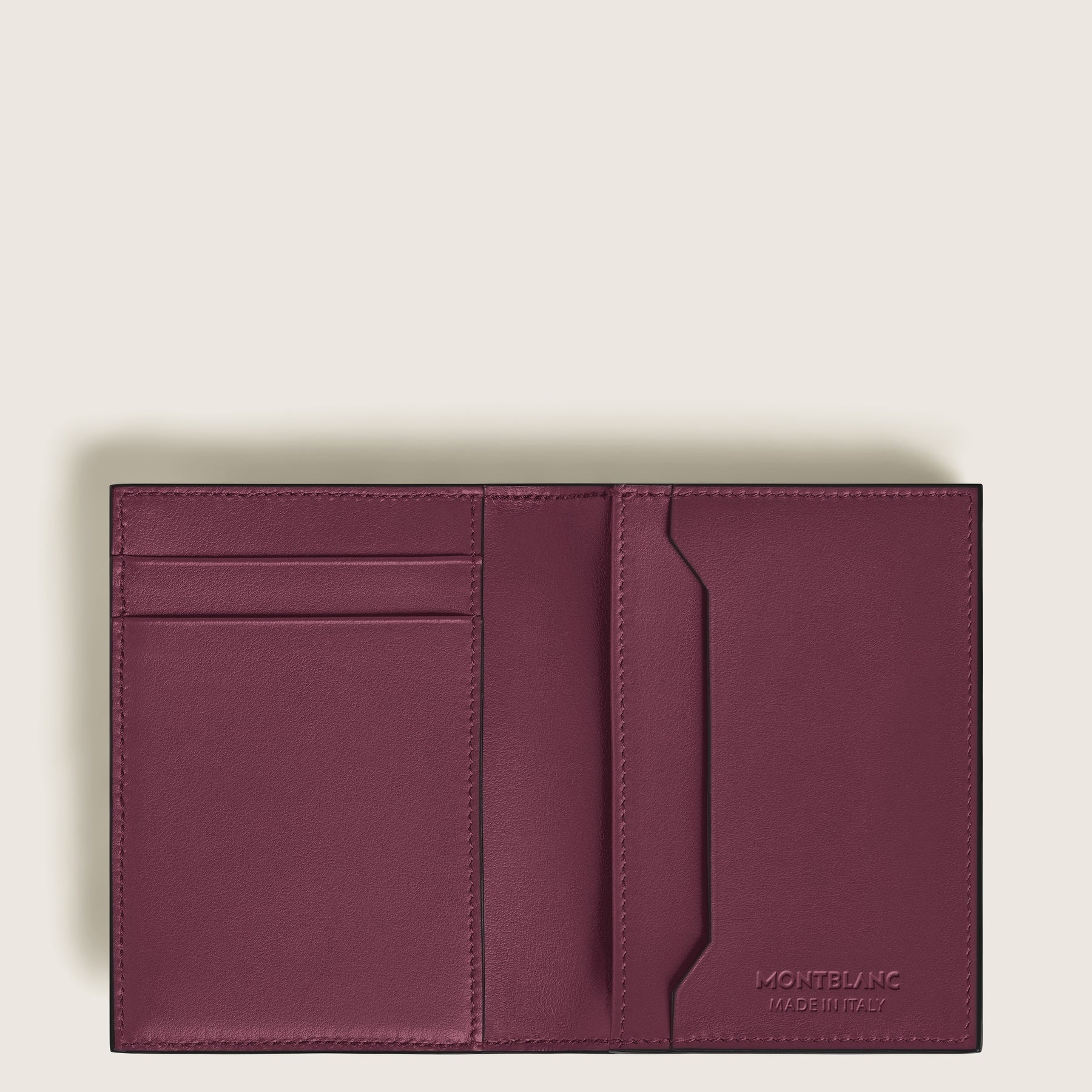 Regular price €300 Vat included. Shipping calculated at checkout.Designed as a life companion, this practical card holder comes with a compartment for business cards as well as slots for four credit cards. The accessory comes in a deep shine cassis leather complete with the Montblanc emblem detailing the front.