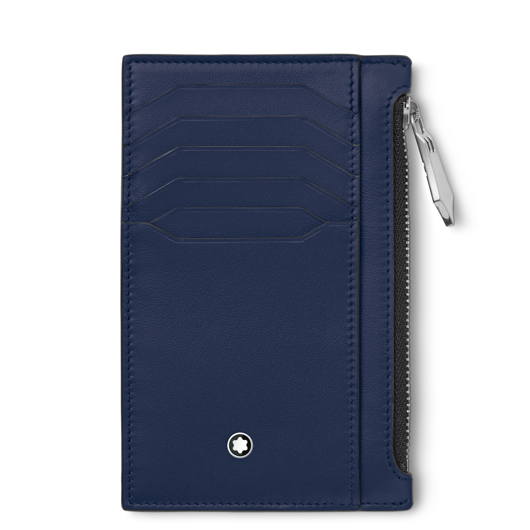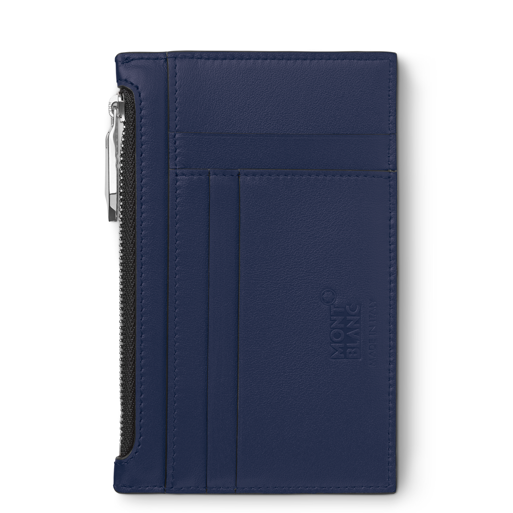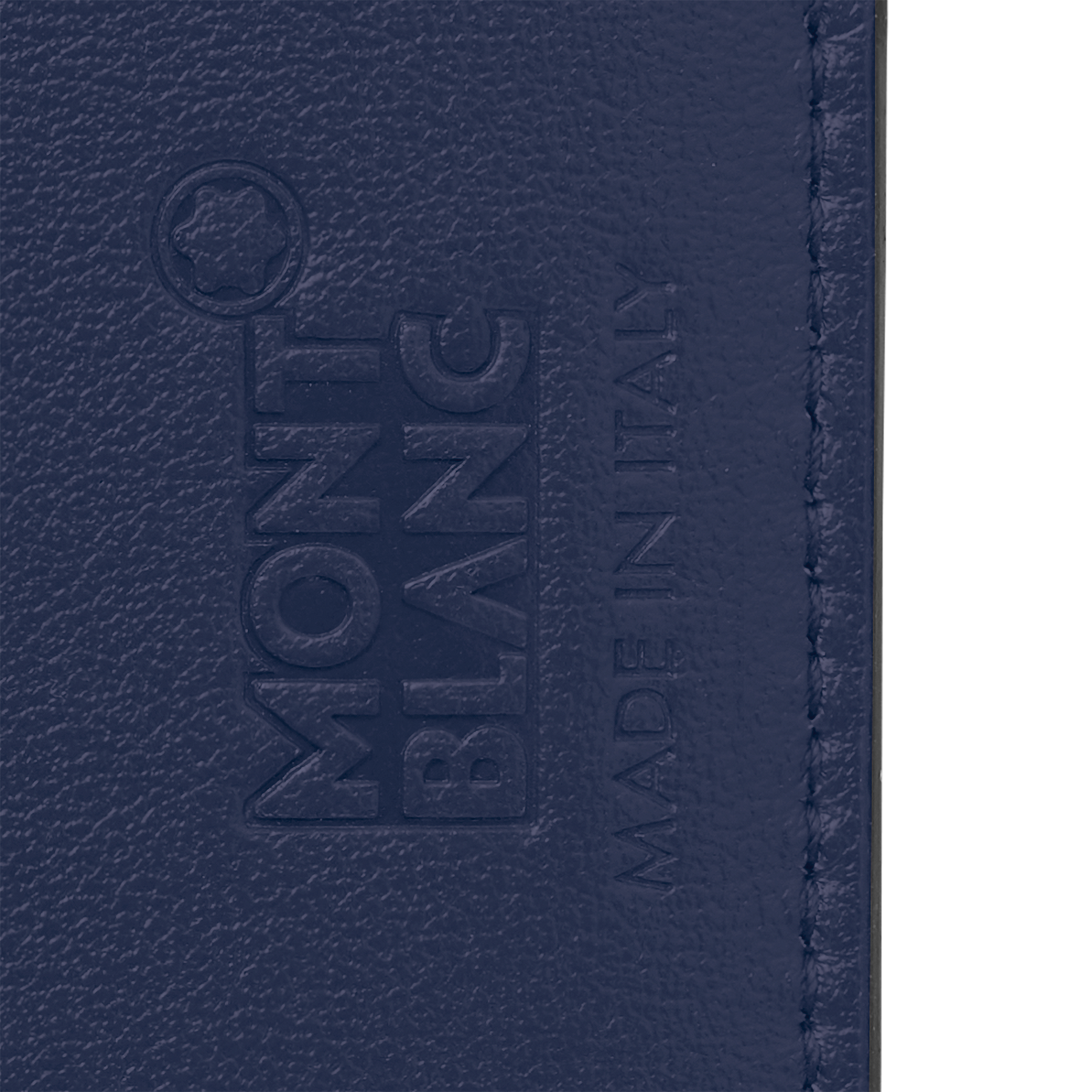 The Meisterstück pocket holder with eight card slots is crafted from a new deep shine ink blue leather. Its new pure geometric design enhances the essence of functionality, with multiple cards slots, pockets for receipts and a zippered coin pocket. The compact size fits into most pockets.
