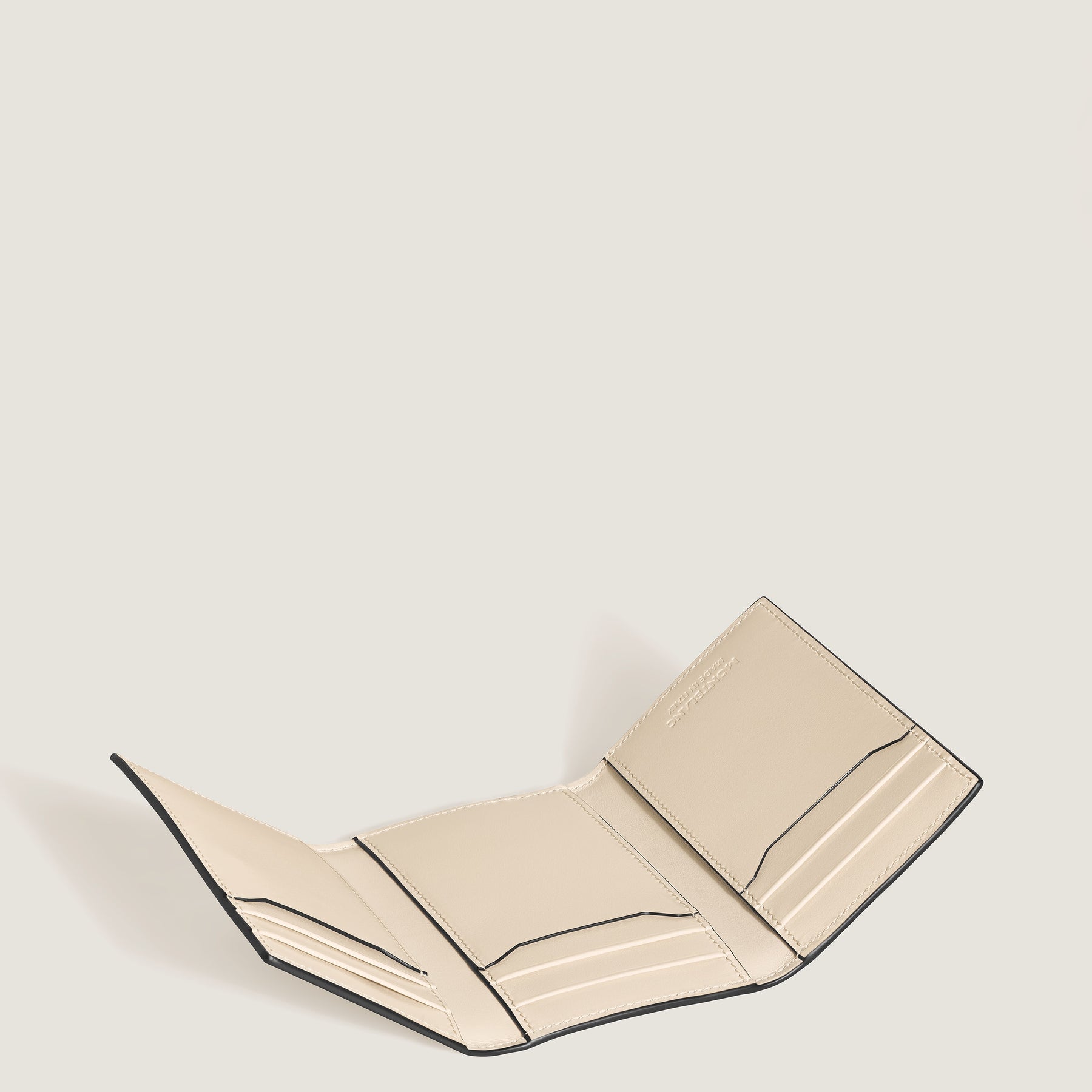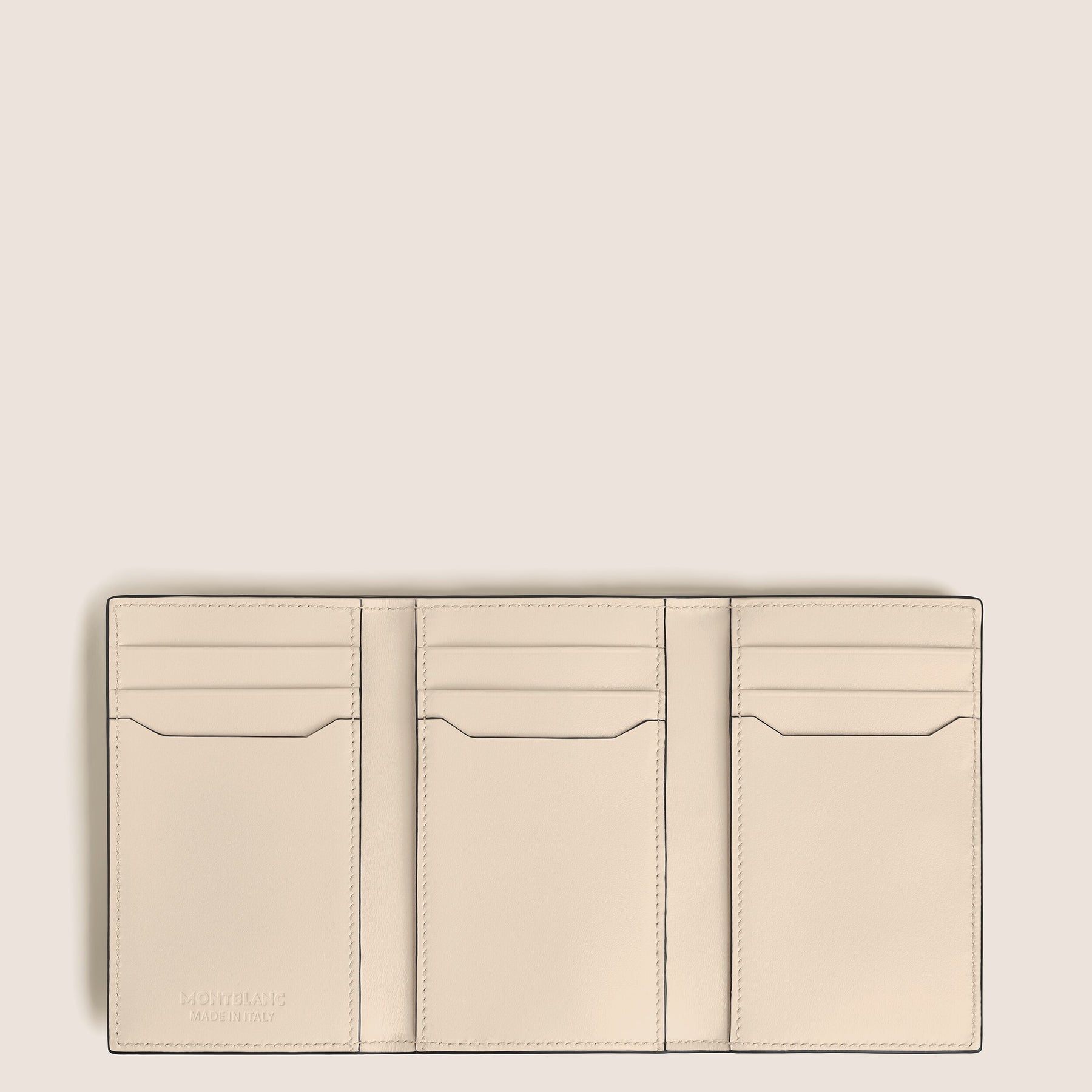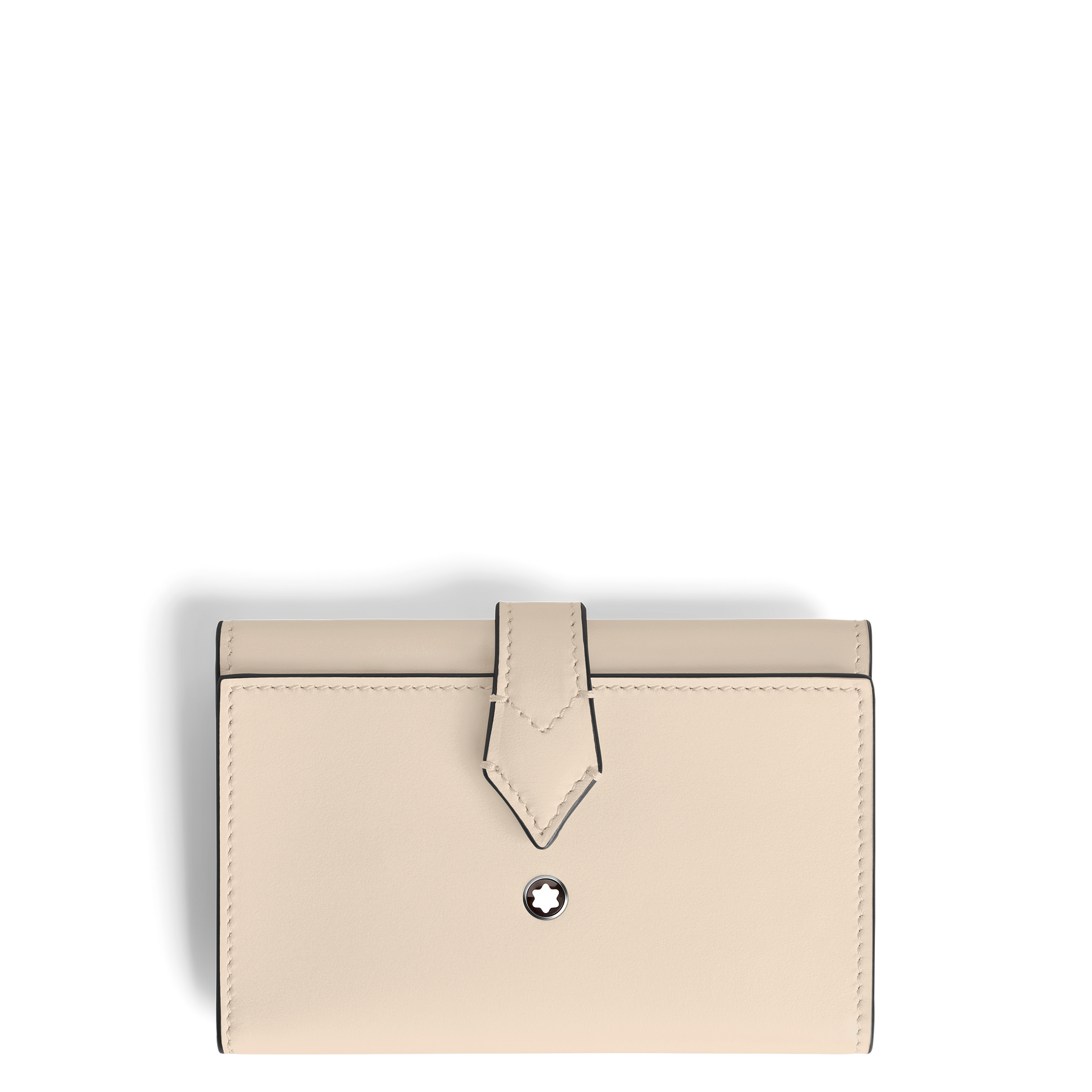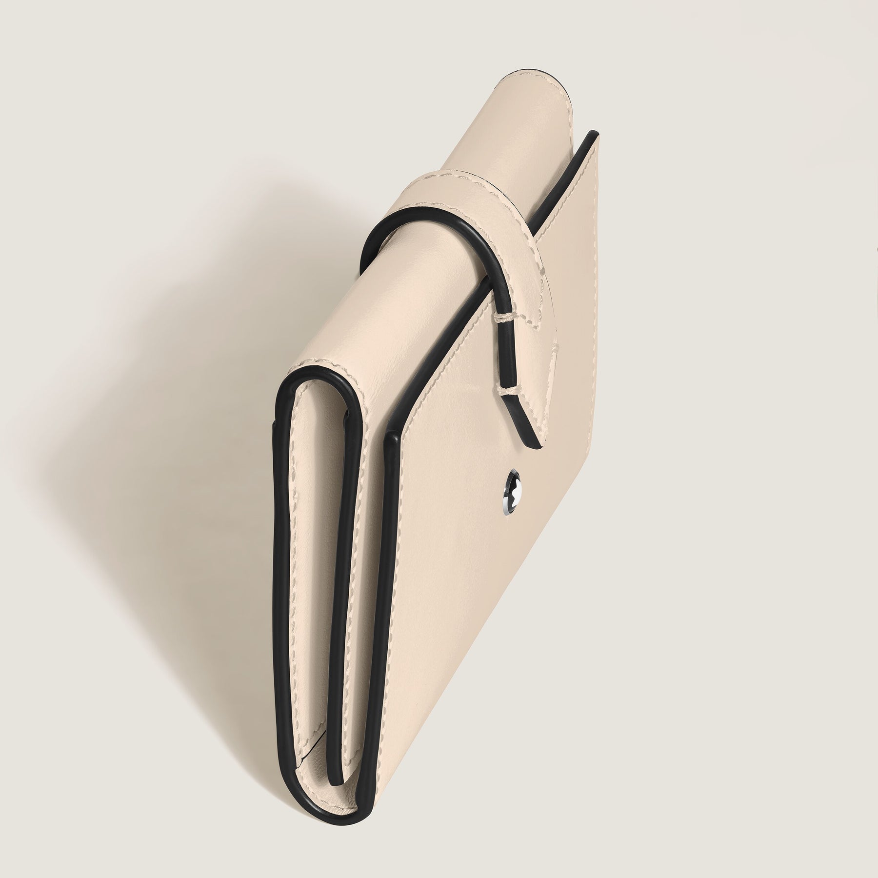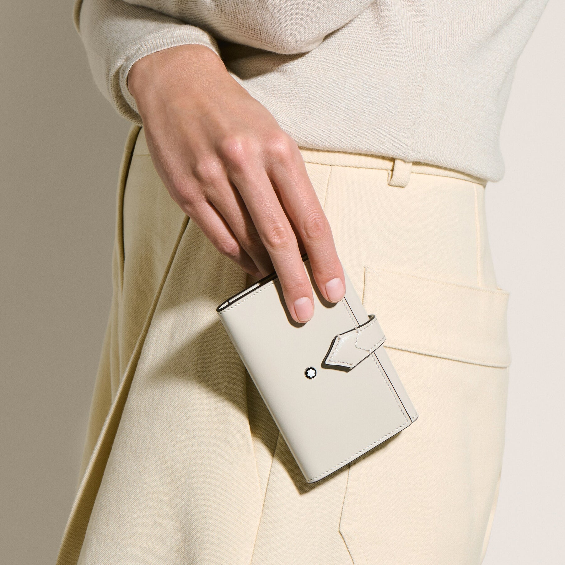 Keep your essentials at hand with the new Meisterstück card holder, meticulously crafted from sleek cloudy beige leather. This refined accessory features a nib-shaped press-button closure, a subtle nod to Montblanc's rich heritage in the art of writing. It offers nine slots for your business and credit cards, plus three additional pockets for all your essentials.