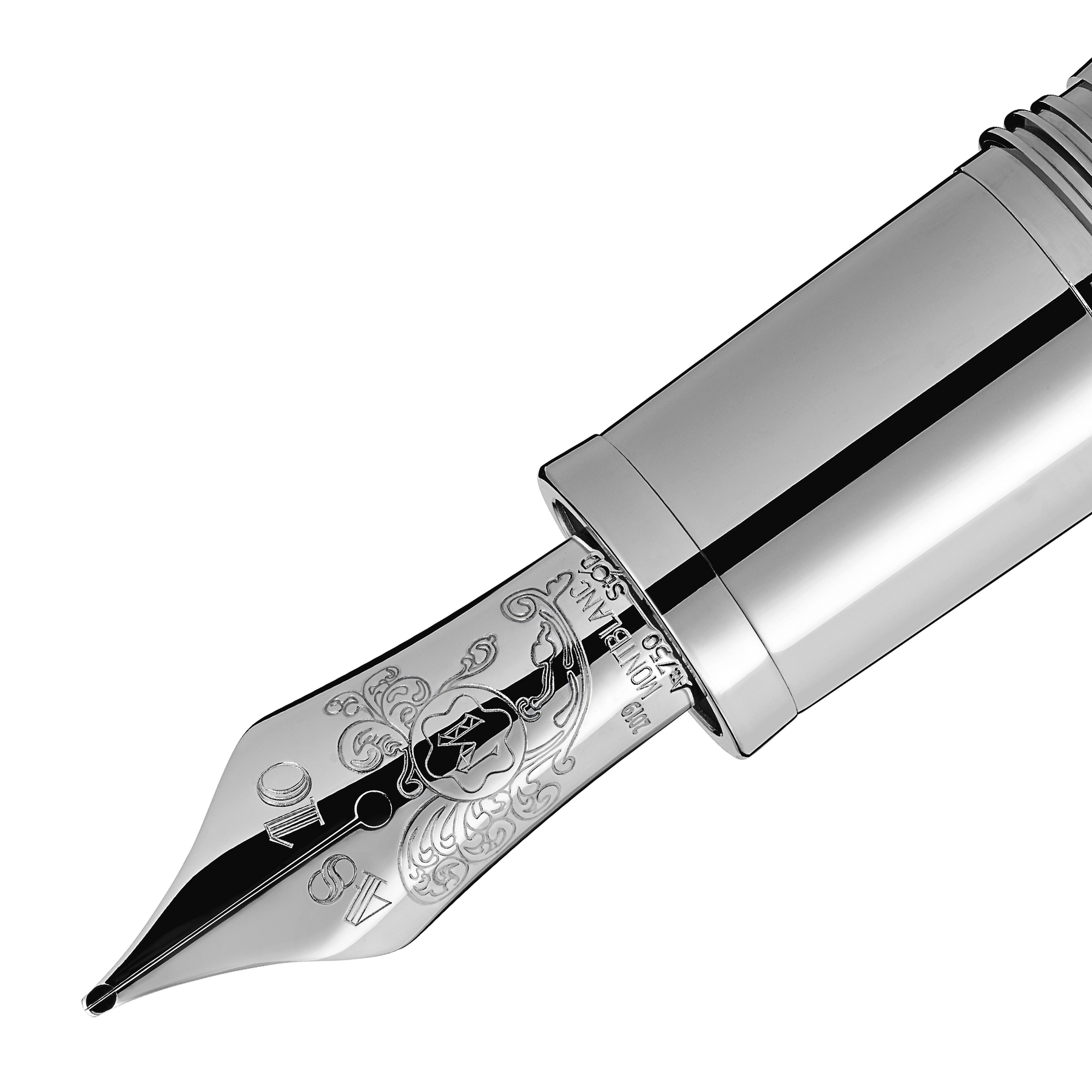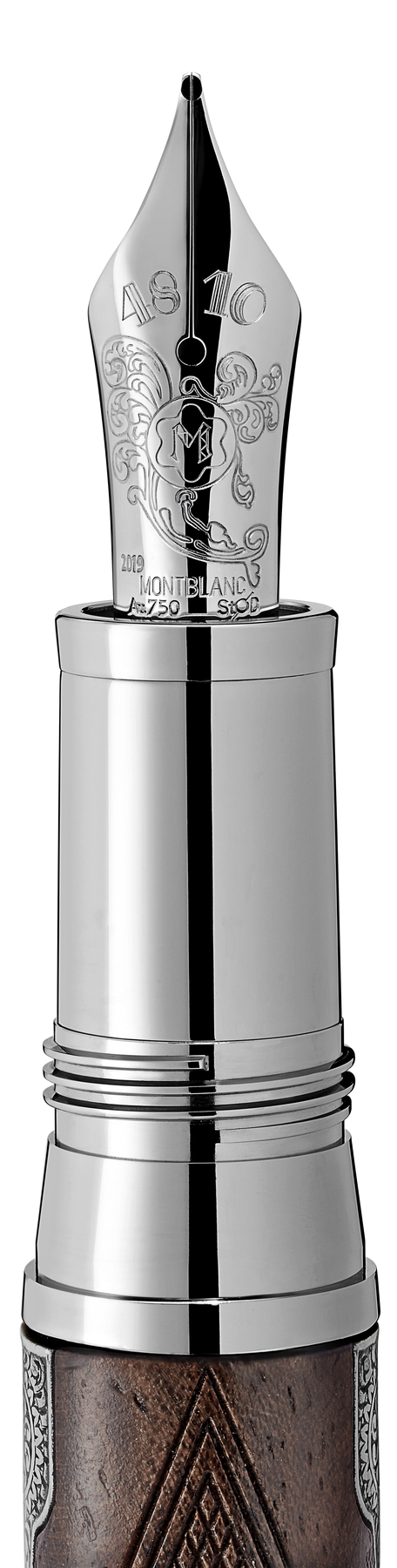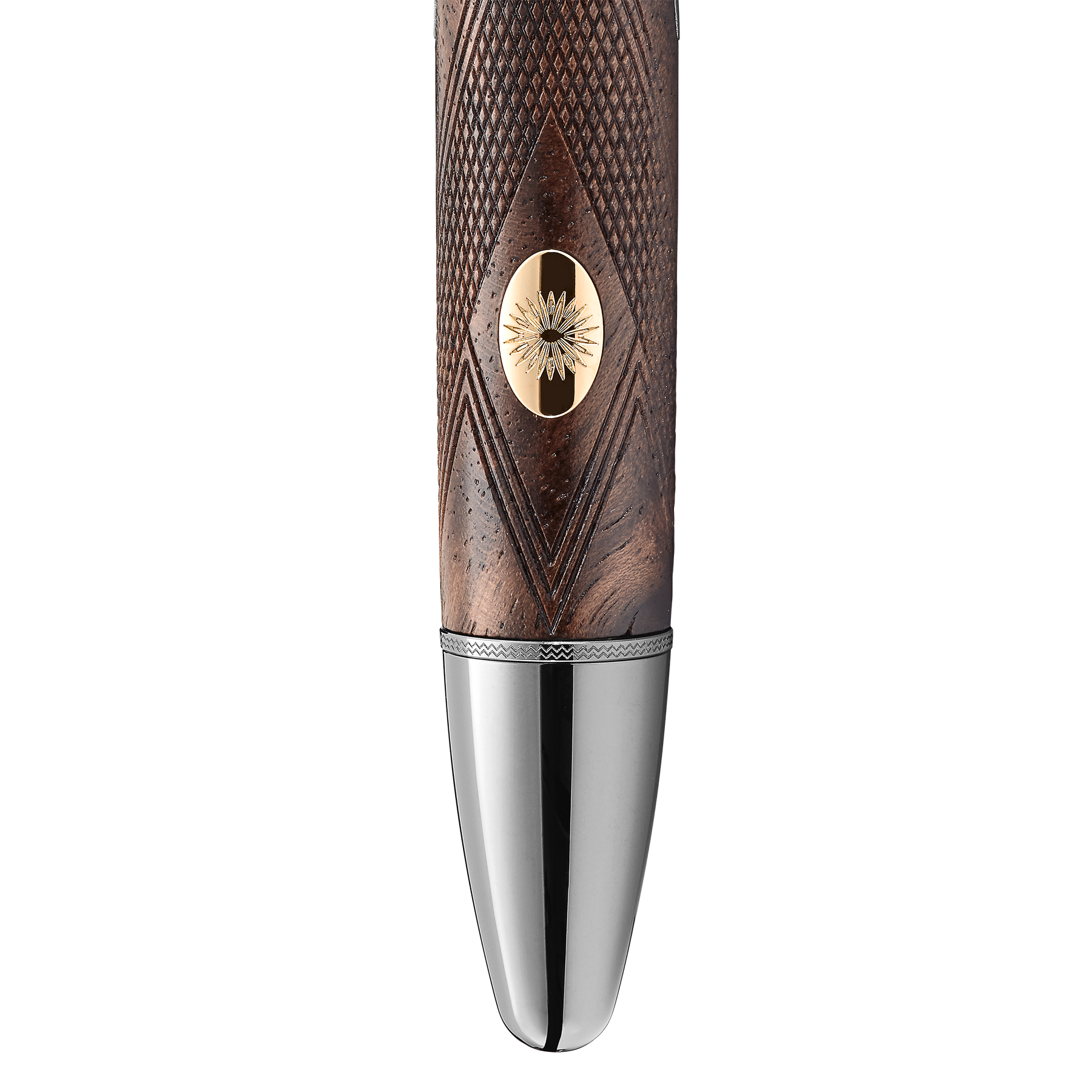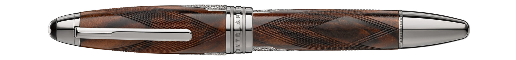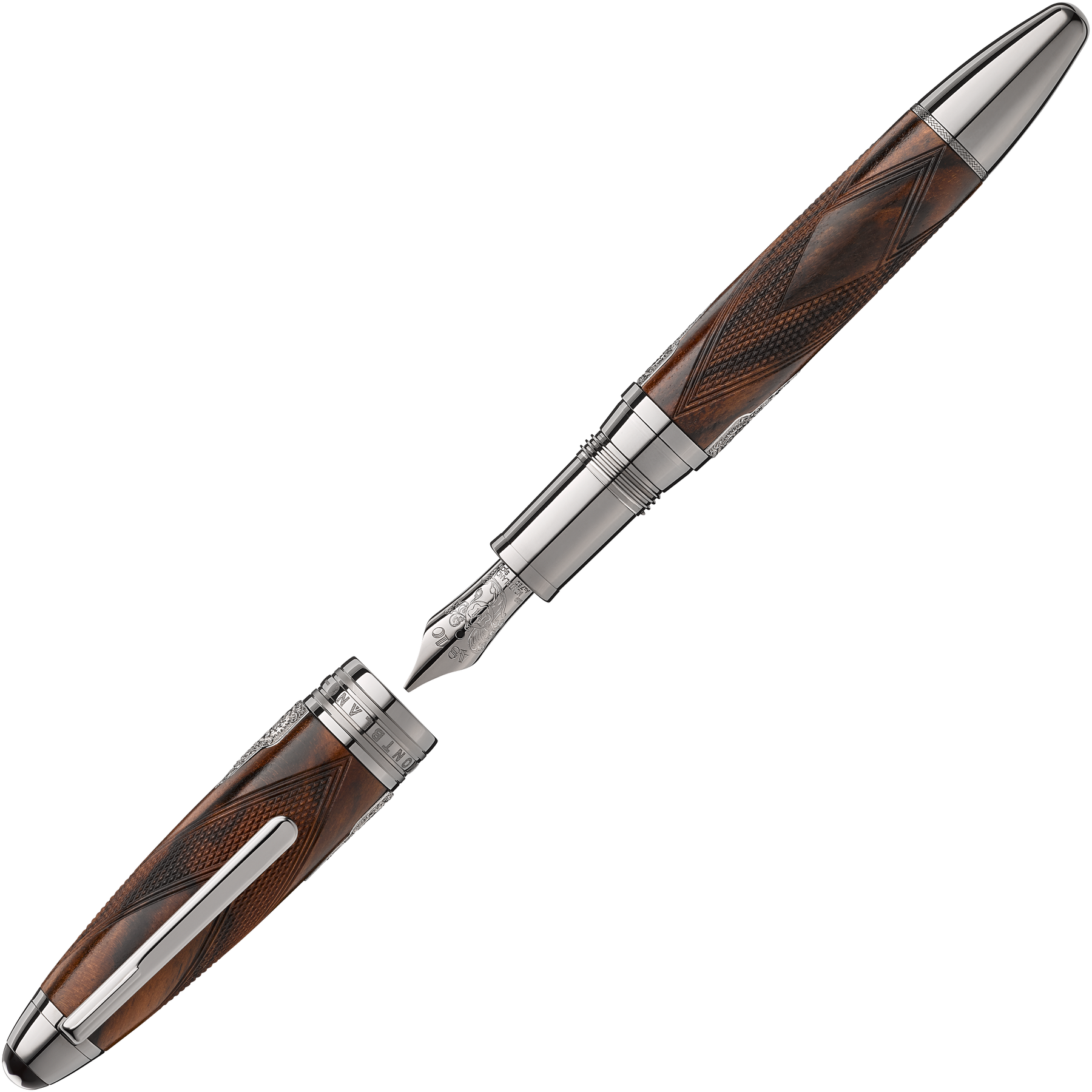 The "Meisterstück Great Masters James Purdey & Sons" unites the expertise of Montblanc – as creator of exquisite writing instruments – with the exclusive Maison, crafter of fine guns and rifles for game hunting. James Purdey & Sons have been serving the world's most demanding customers in search of perfect function, beauty, exclusivity and long-lasting quality. The wood-carving and metal-engraving crafts of the James Purdey Maison are unique, secret and extraordinary. The Meisterstück Fountain Pen is made of caucasian walnut wood with engraved Purdey checkering and casted metal inlay, and features an 18 K gold nib and ruthenium-coated fittings.