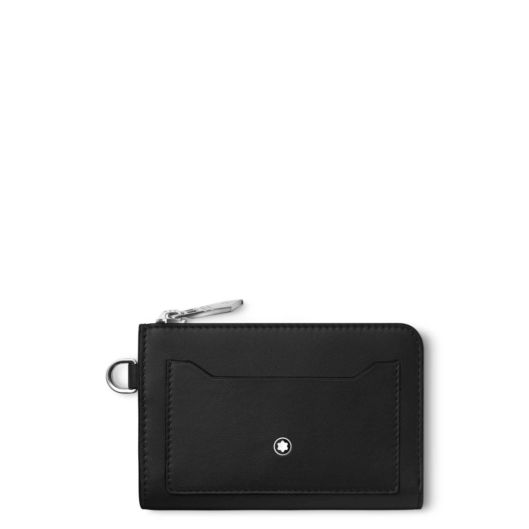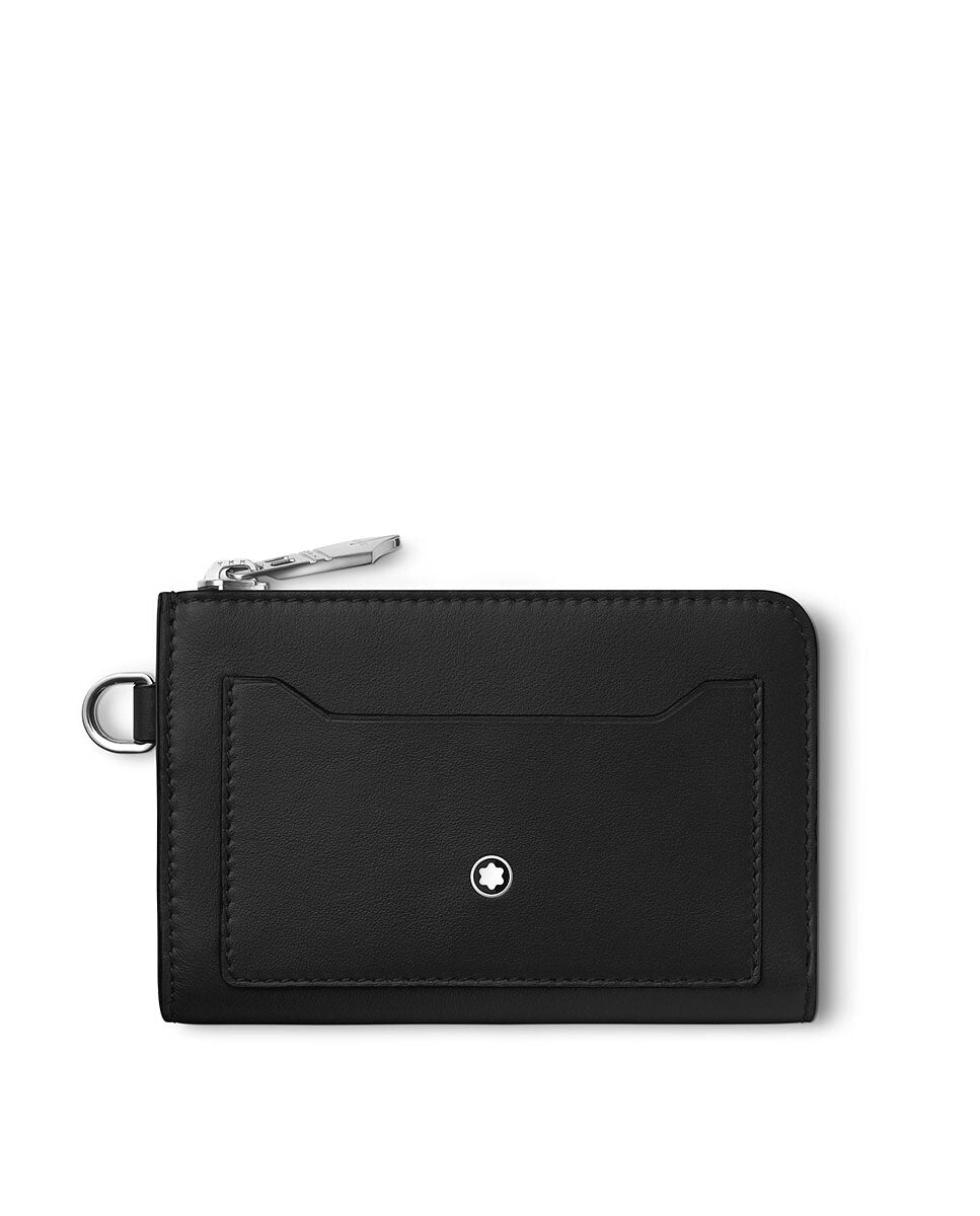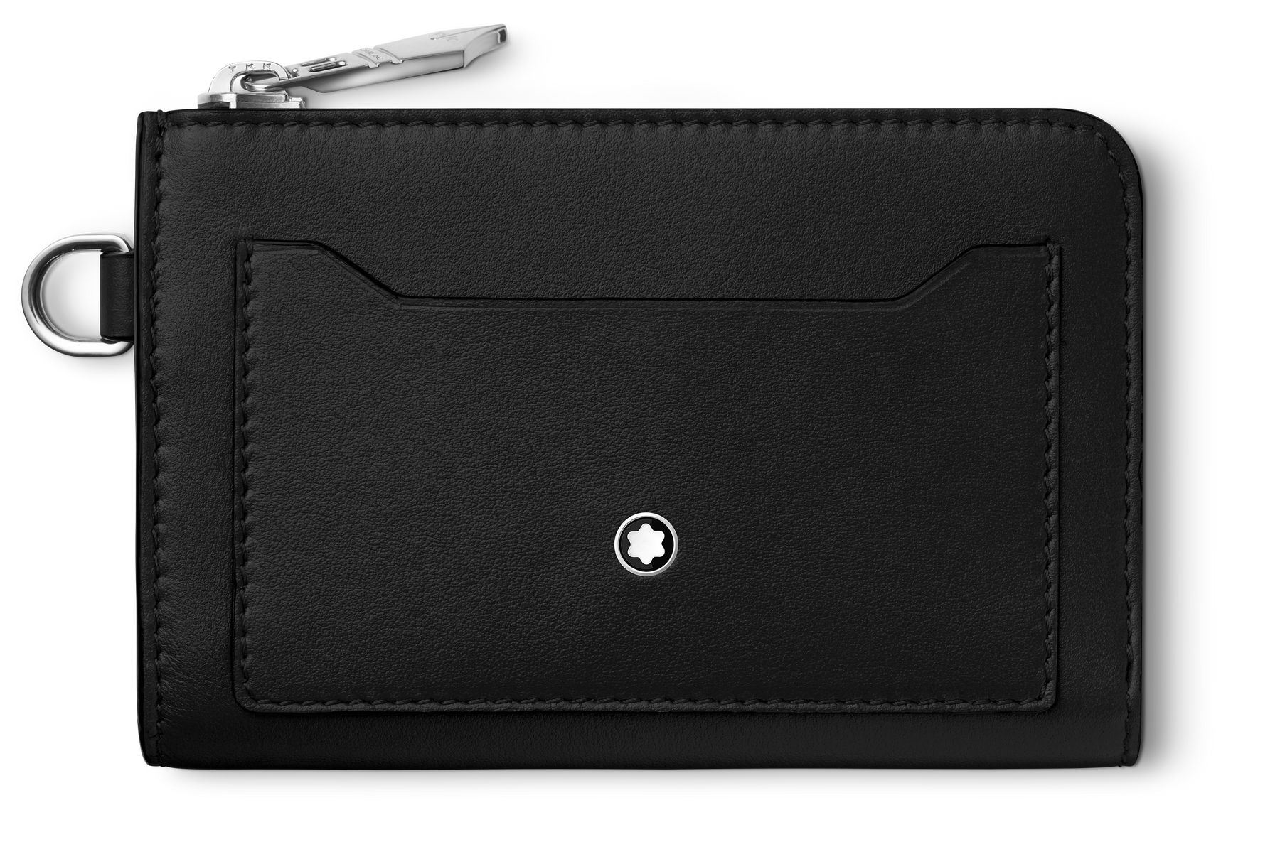The Meisterstück Key Pouch with four card slots is crafted from a new deep shine black leather. Its new pure geometric design enhances the essence of functionality, with multiple cards slots, zipped pocket and a hook. This pouch can be carried comfortably with a neck strap (sold separately) or placed in your pocket.