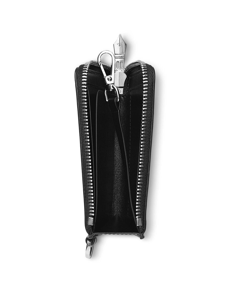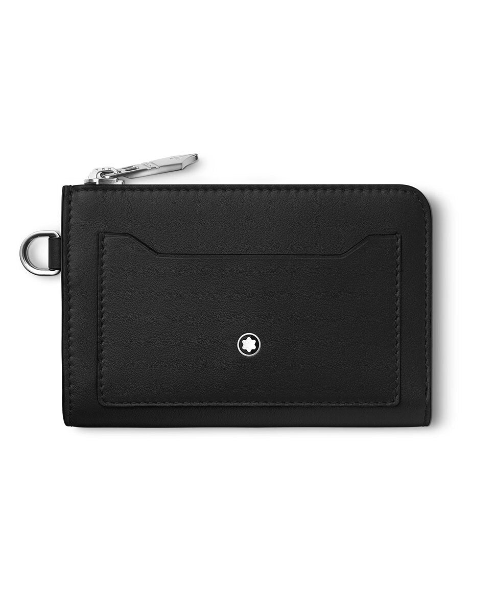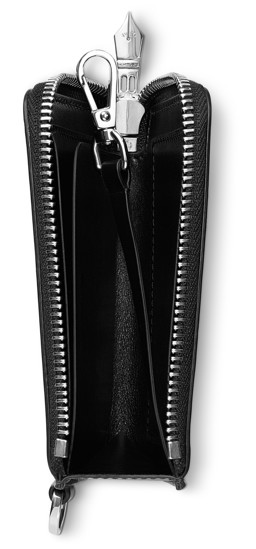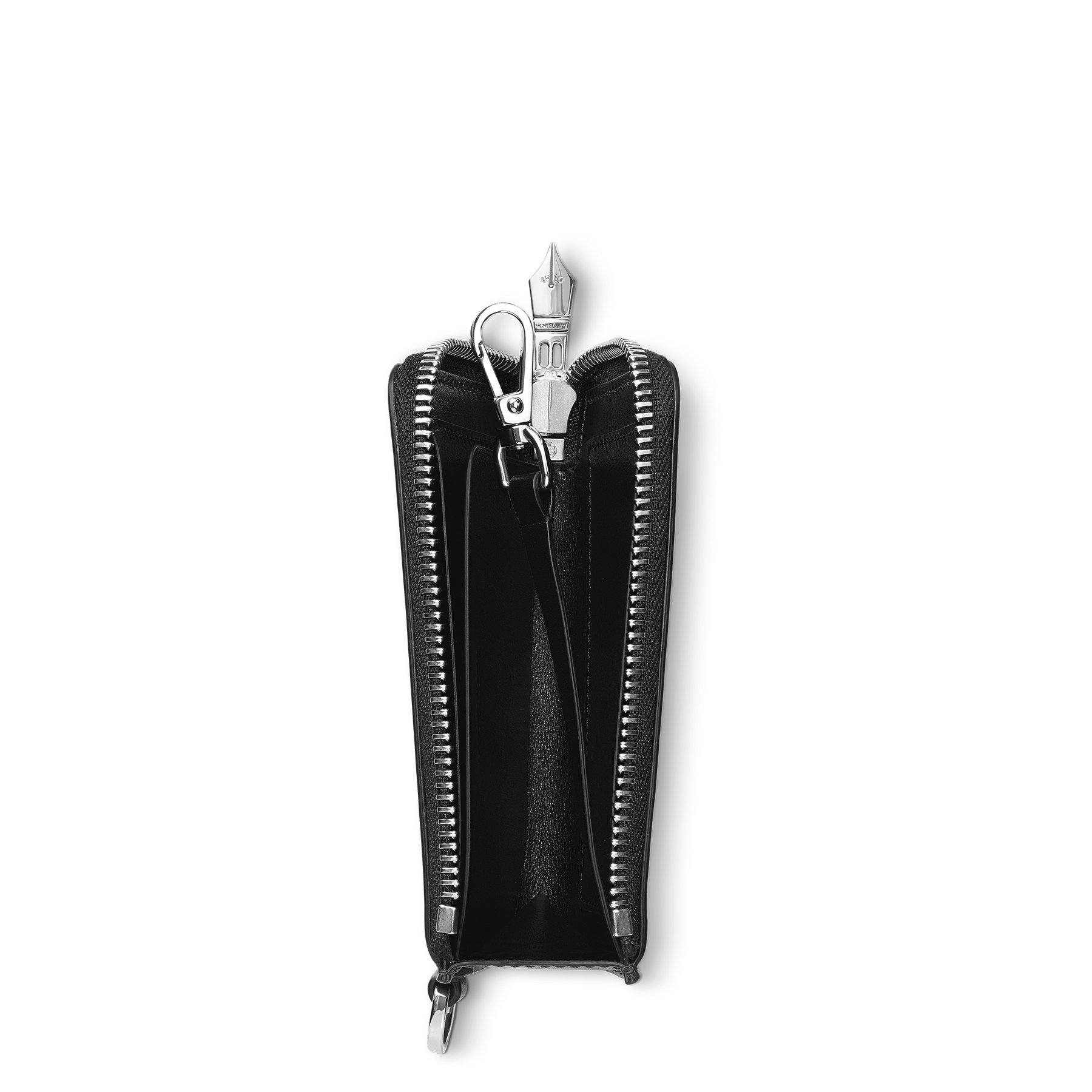The Meisterstück Key Pouch with four card slots is crafted from a new deep shine black leather. Its new pure geometric design enhances the essence of functionality, with multiple cards slots, zipped pocket and a hook. This pouch can be carried comfortably with a neck strap (sold separately) or placed in your pocket.
