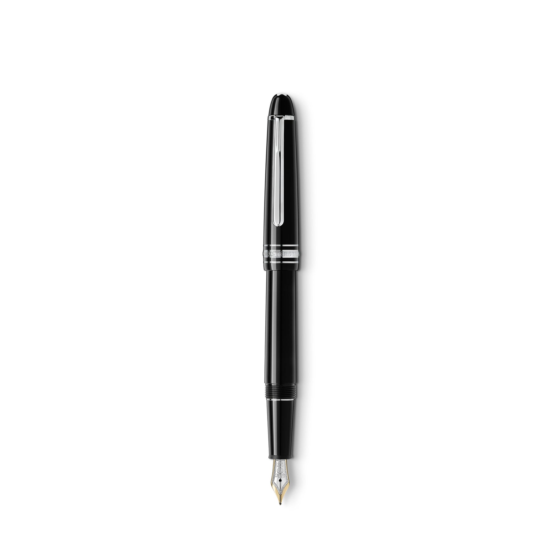 The Meisterstück Classique Fountain Pen evolves into a distinctive design icon. Cap and barrel are crafted in black precious resin inlaid with a white Montblanc Emblem. Three platinum-coated rings with embossed Montblanc lettering. a platinum-coated clip and a handcrafted gold nib emphasize the timeless design of this iconic fountain pen. To express your personality. Montblanc offers a gratuitous engraving of names or initials. At a time when individuality is becoming increasingly rare. our Mystery Black. Royal Blue. Burgundy Red. Irish Green. Lavender Purple. Midnight Blue and Oyster Gray ink cartridges let you show your individual writing style with this iconic fountain pen.