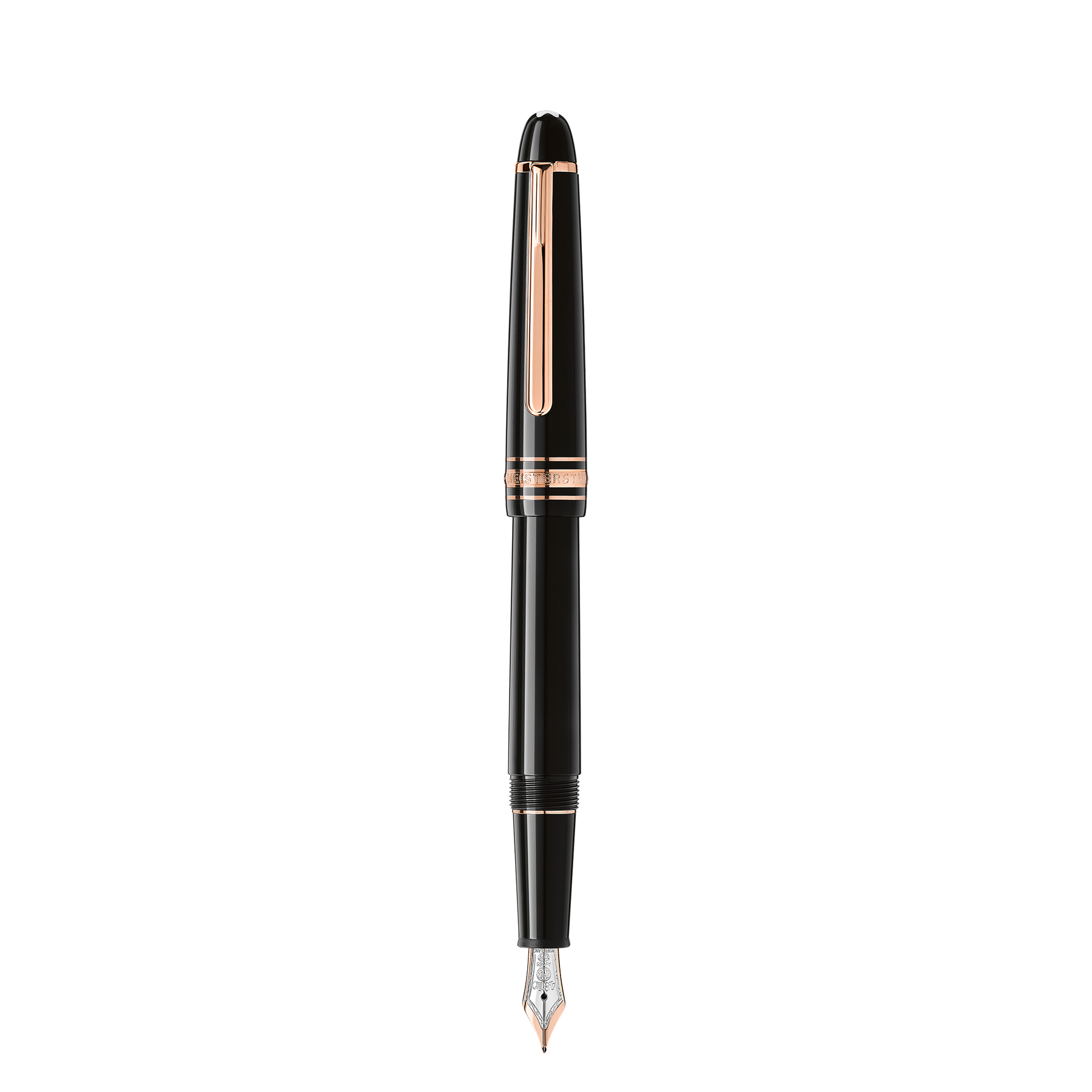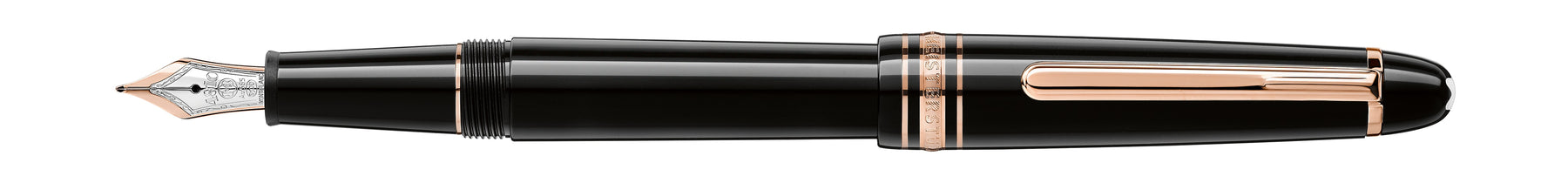 Montblanc Meisterstück Classique Rose Gold-Coated collection is a design that writes history. Introduced in 1924, a word meaning “Masterpiece”, the Meisterstück has become the symbol for high quality luxury writing. The cap and barrel are crafted in black precious resin featuring the iconic white Montblanc emblem inlaid in the cap top. The fountain pen is adorned with a hand-crafted Au585 solid gold nib, bi-color rhodium and rose gold-coated.