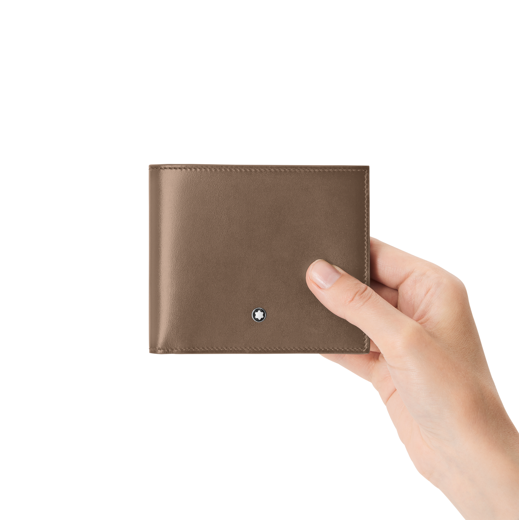 Introducing our practical and refined Meisterstück wallet, made of deep-shine leather in mastic, a modern classic. Designed with convenience in mind, it opens in the middle, offering dedicated slots to hold up to eight credit cards securely. Its sleek and compact silhouette also provides two banknote compartments and two additional pockets for discreet storage. Experience the balance of functionality and style with this versatile wallet.