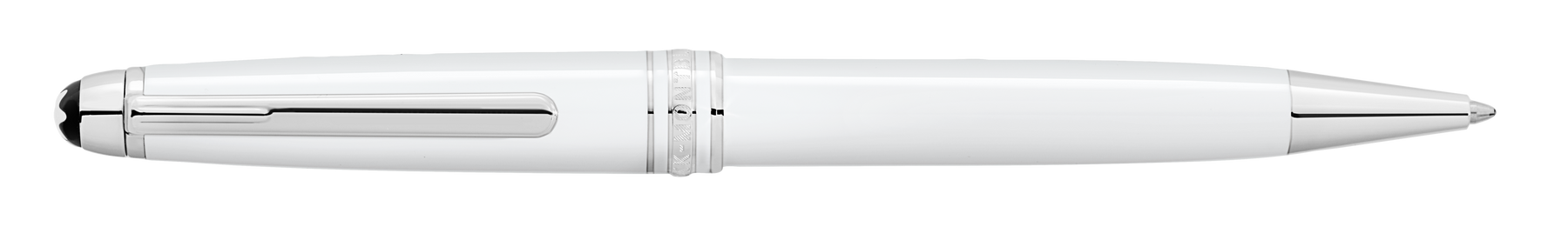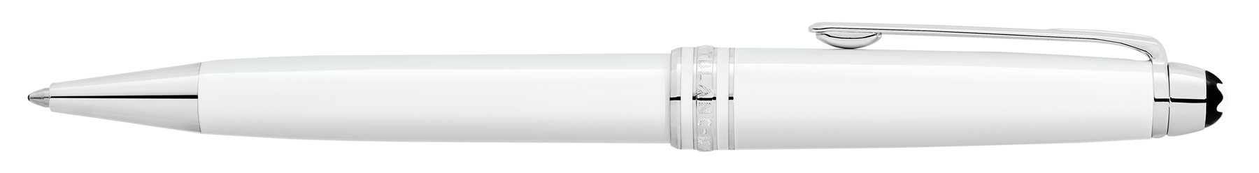 Regular price €540 Vat included. Shipping calculated at checkout.The Meisterstück Classique Ballpoint in white precious resin with elegant platinum-coated fittings, surmounted by the white Montblanc emblem inlaid in the cap top, evolves into a distinctive design icon.