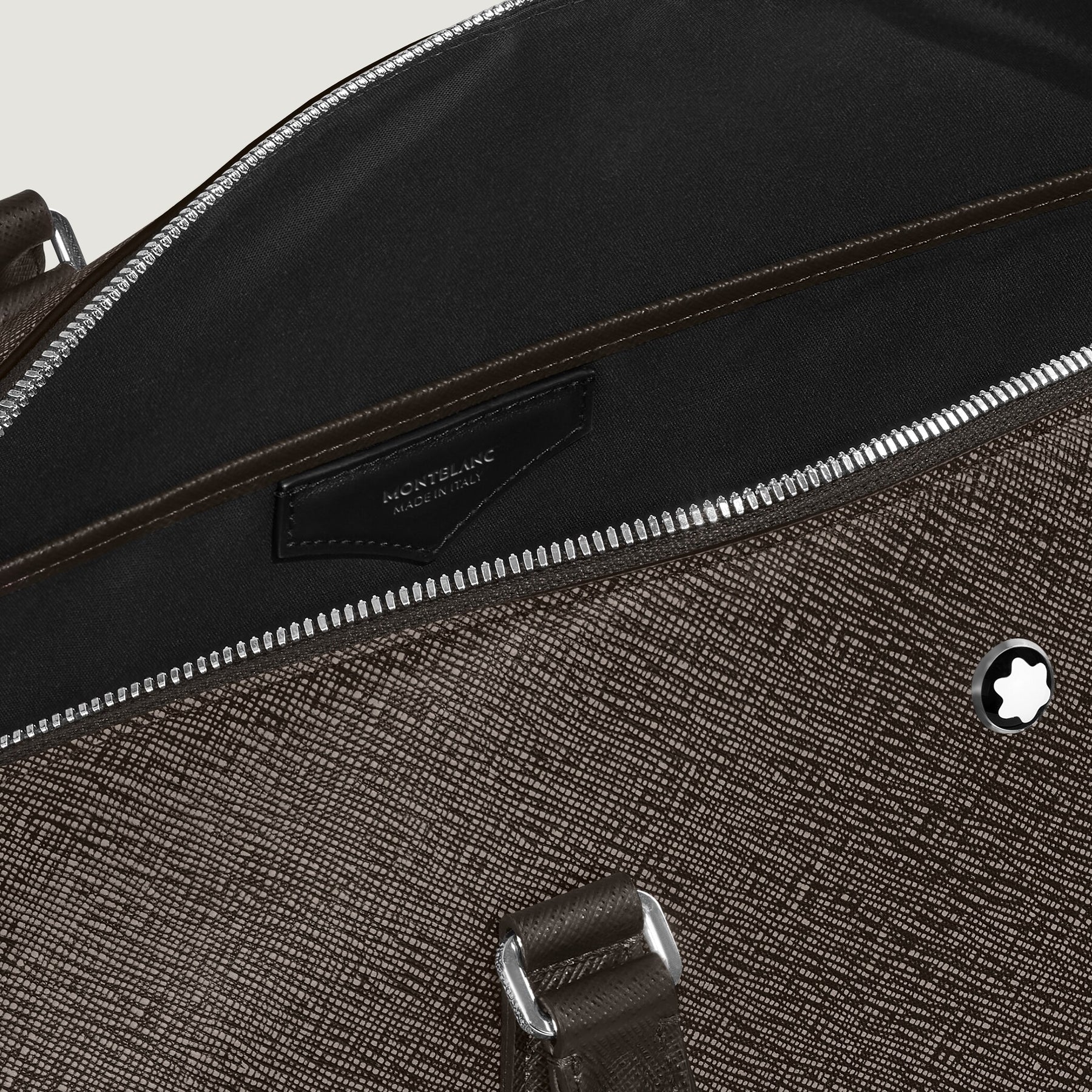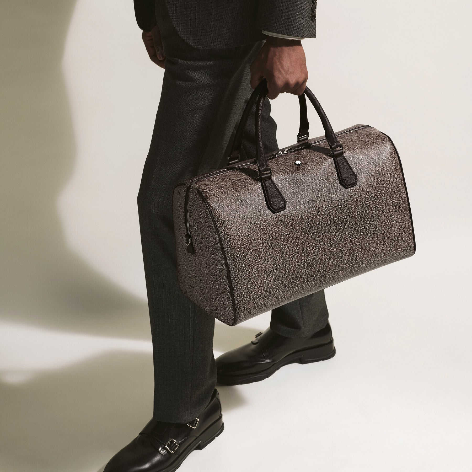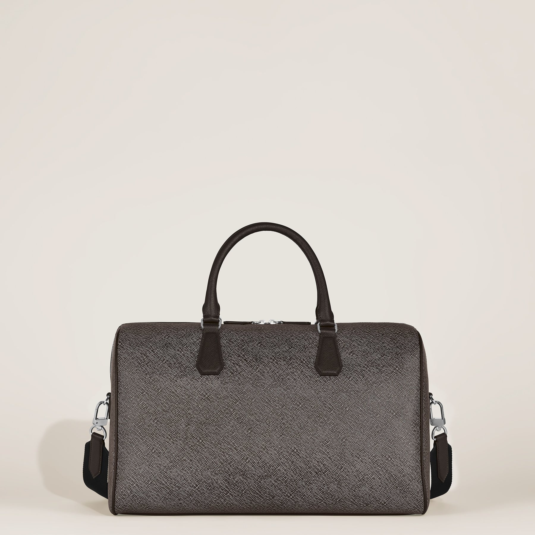 This larger version of the iconic Montblanc 142 bag, inspired by our archives, channels the design of the iconic 1950s Meisterstück 142 fountain pens. Made from Saffiano-printed leather combining ivory and dark brown, its classic shape offers spacious interior for a weekend getaway. The dark brown handles and a detachable strap with metal details allows for a variety of carrying options.