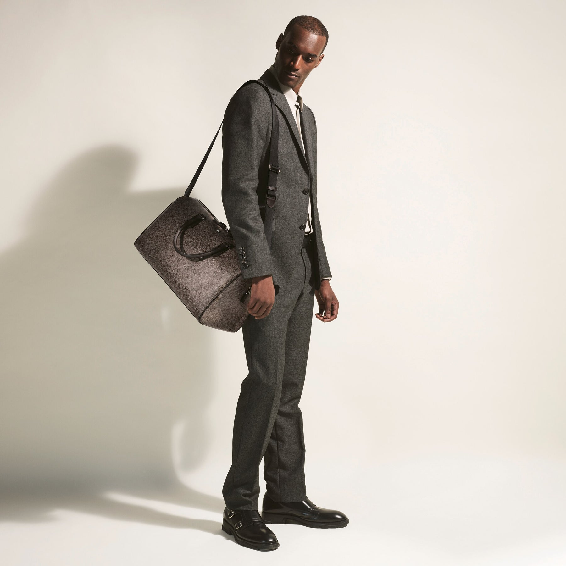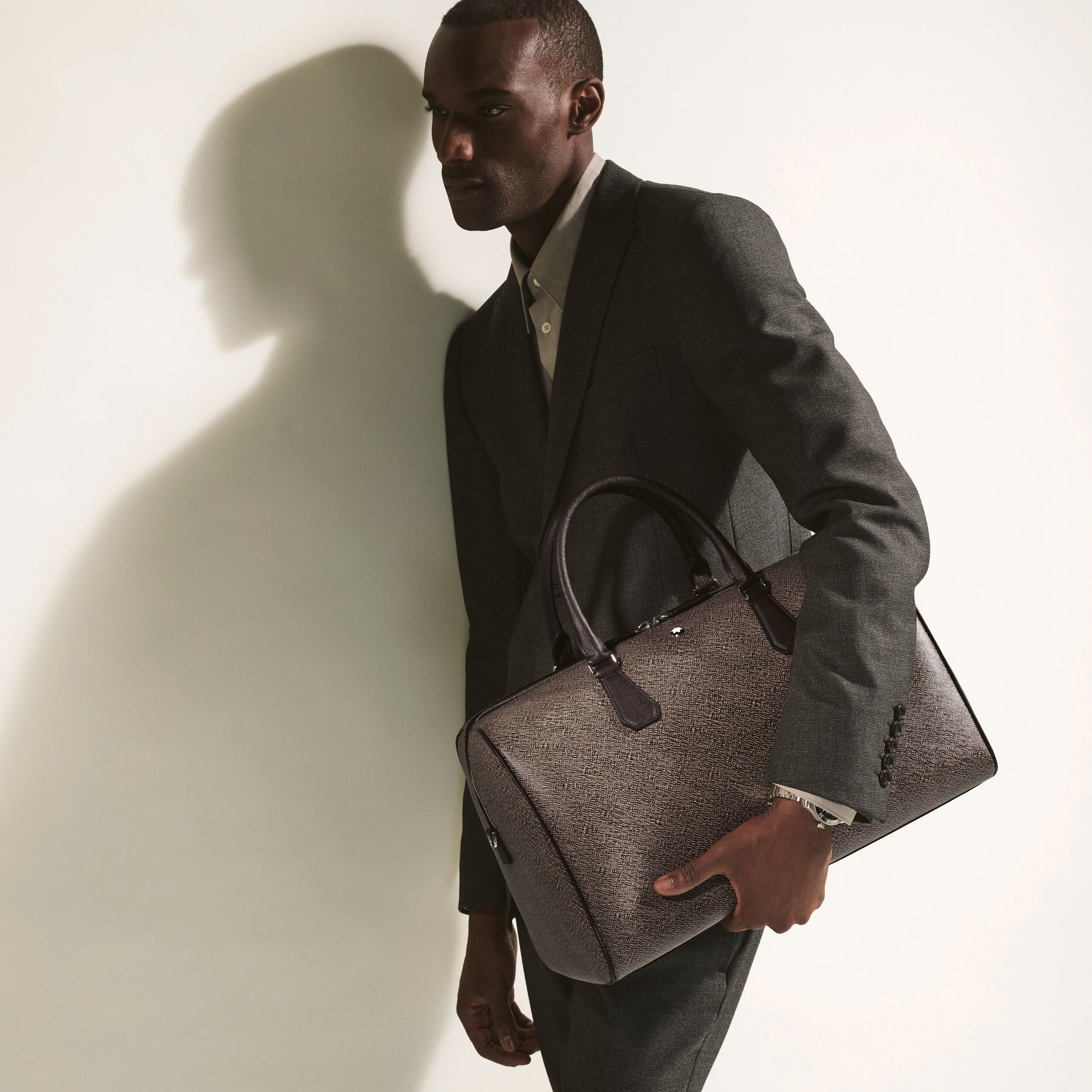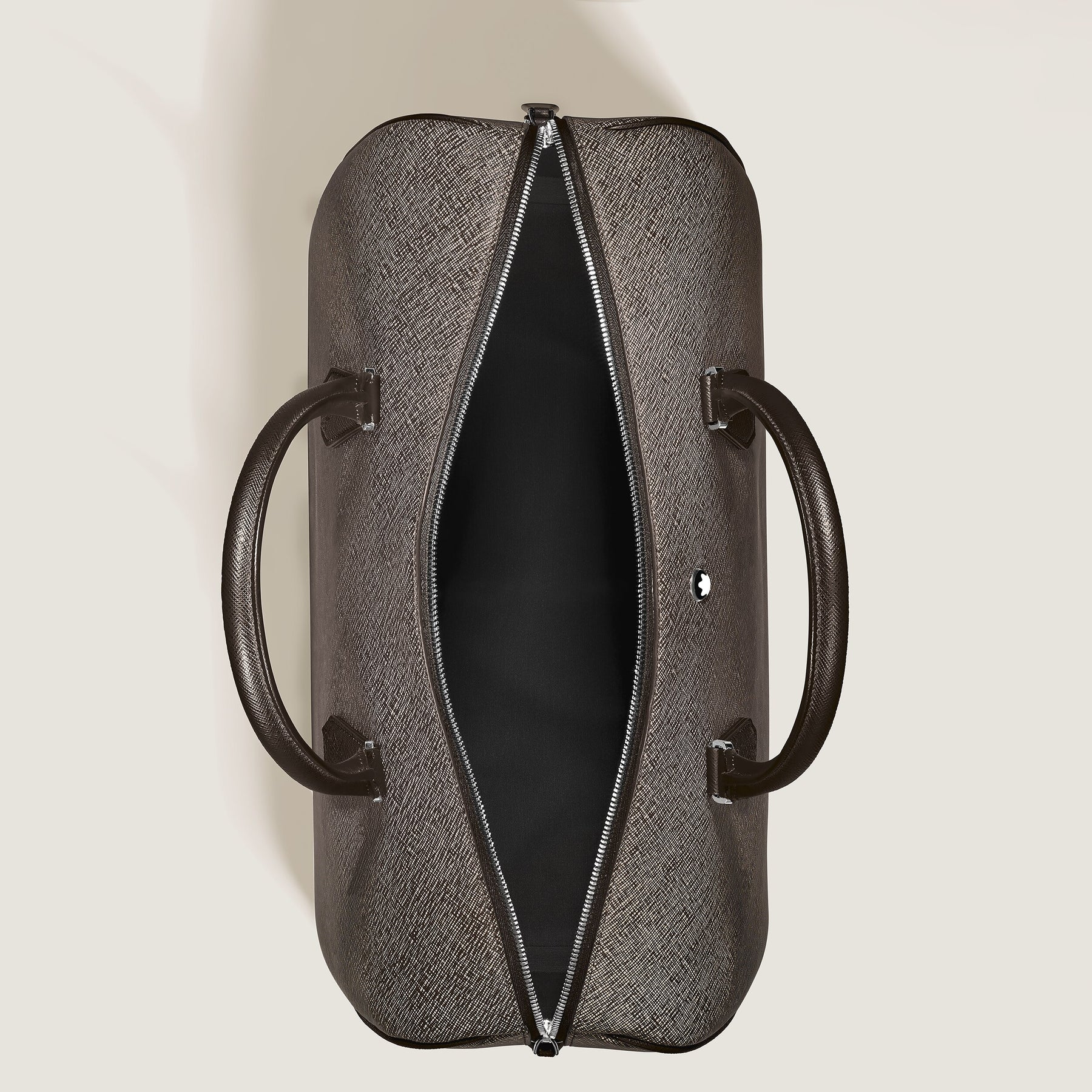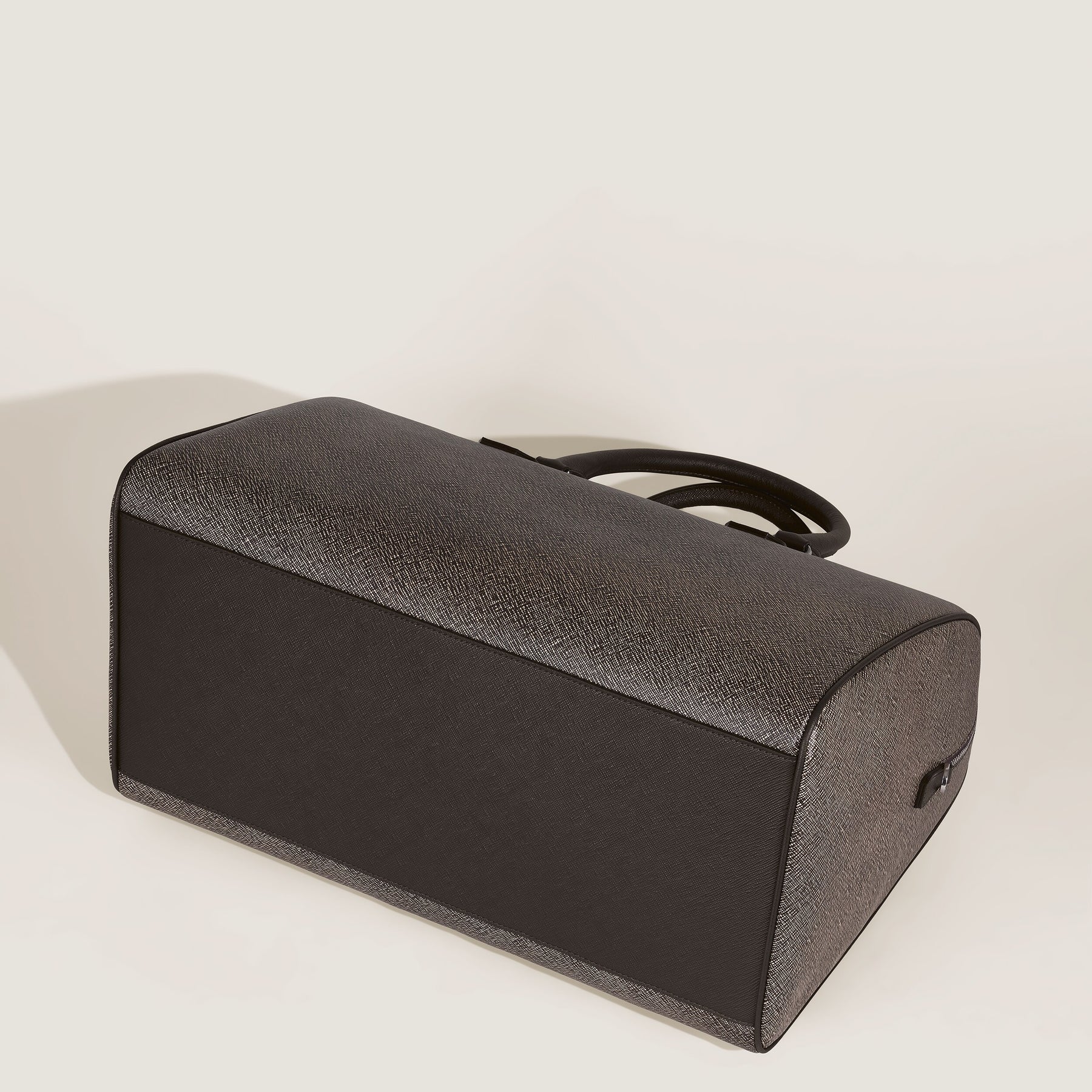 This larger version of the iconic Montblanc 142 bag, inspired by our archives, channels the design of the iconic 1950s Meisterstück 142 fountain pens. Made from Saffiano-printed leather combining ivory and dark brown, its classic shape offers spacious interior for a weekend getaway. The dark brown handles and a detachable strap with metal details allows for a variety of carrying options.