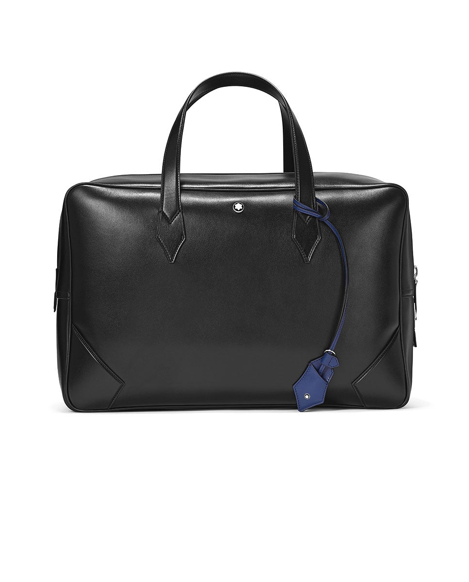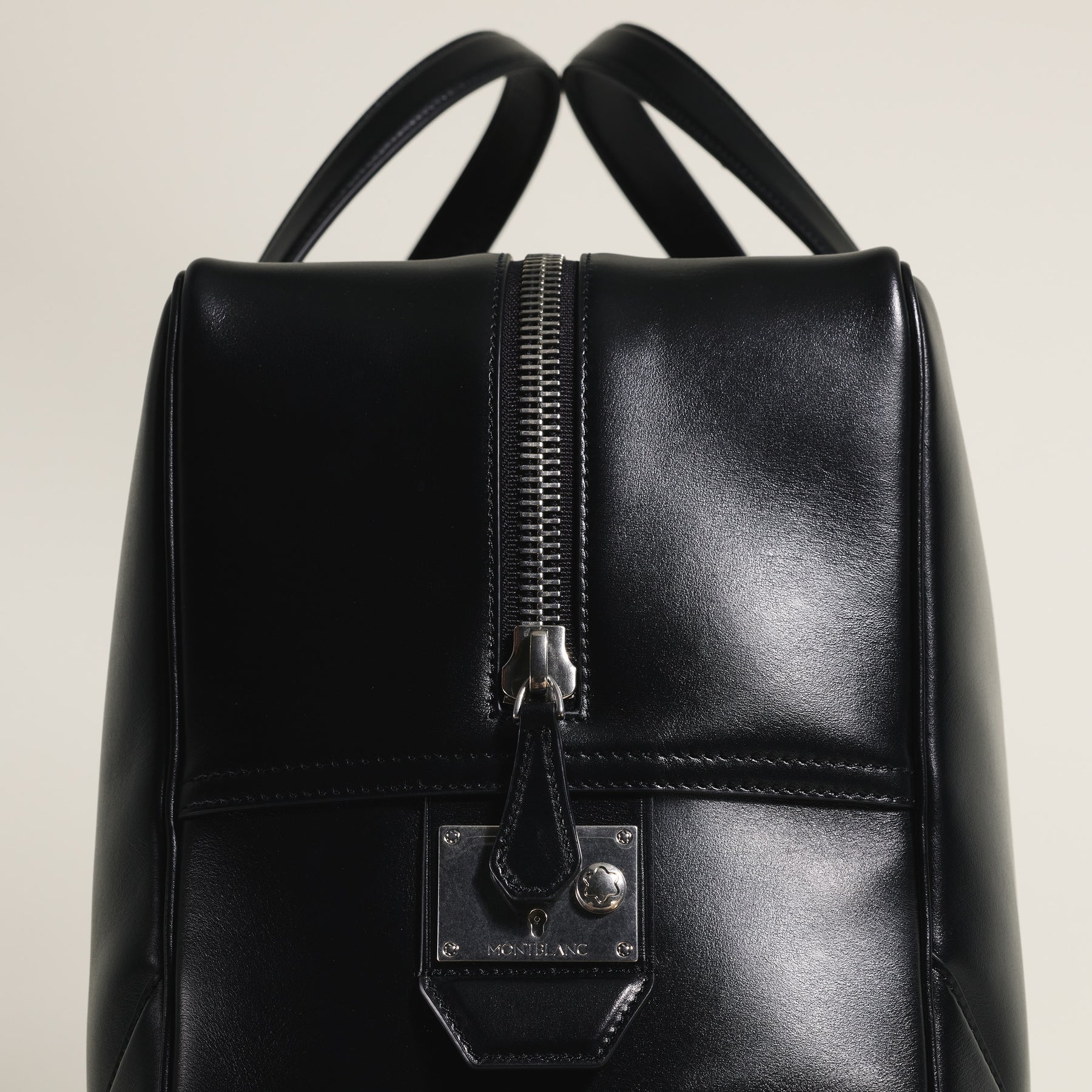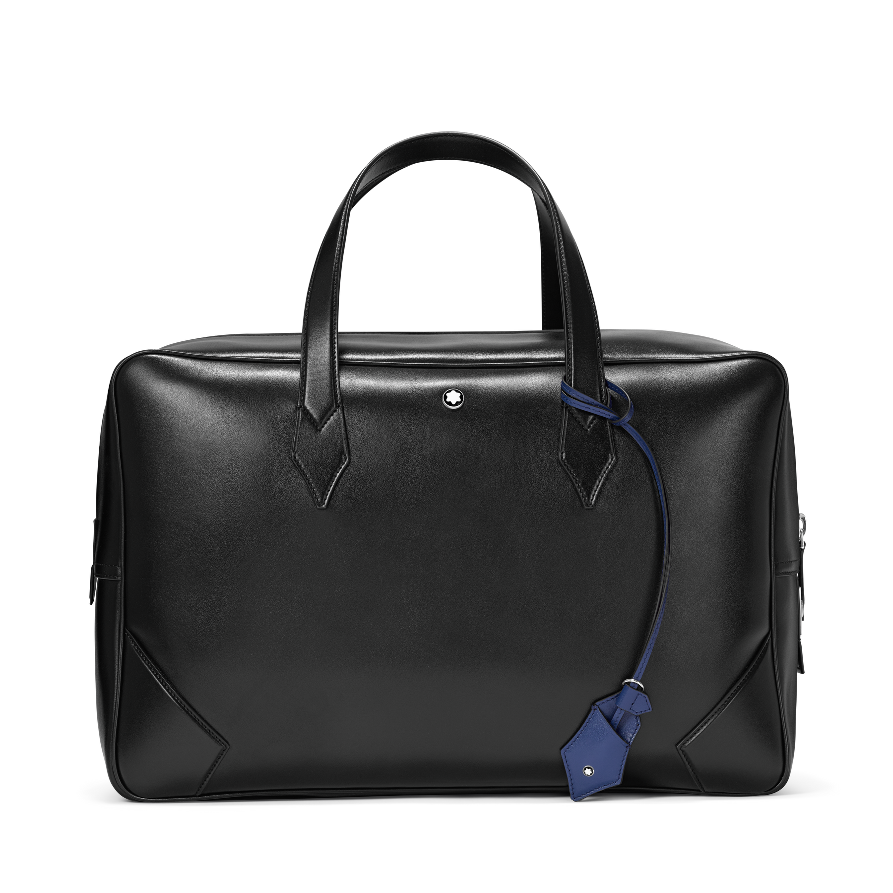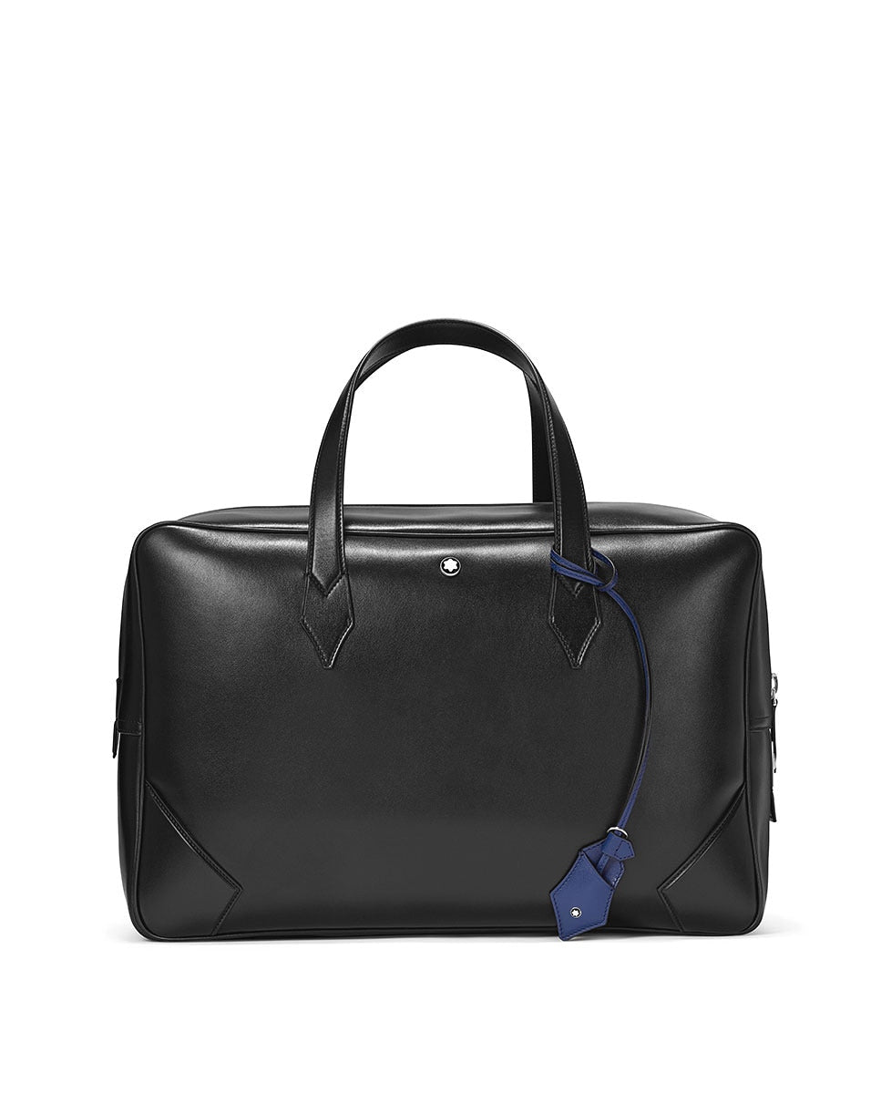 Inspired by the writing culture, the Meisterstück Duffle bag is suitable for short trips and weekends. Crafted from a new deep shine black leather, all its details speak the language of the nib: stitching, zip pullers, handles recall the shape of the nib, the essence of Montblanc. A bigger version of the logo lights up the bag. With a large capacity, it has a secure closure with lock and key.