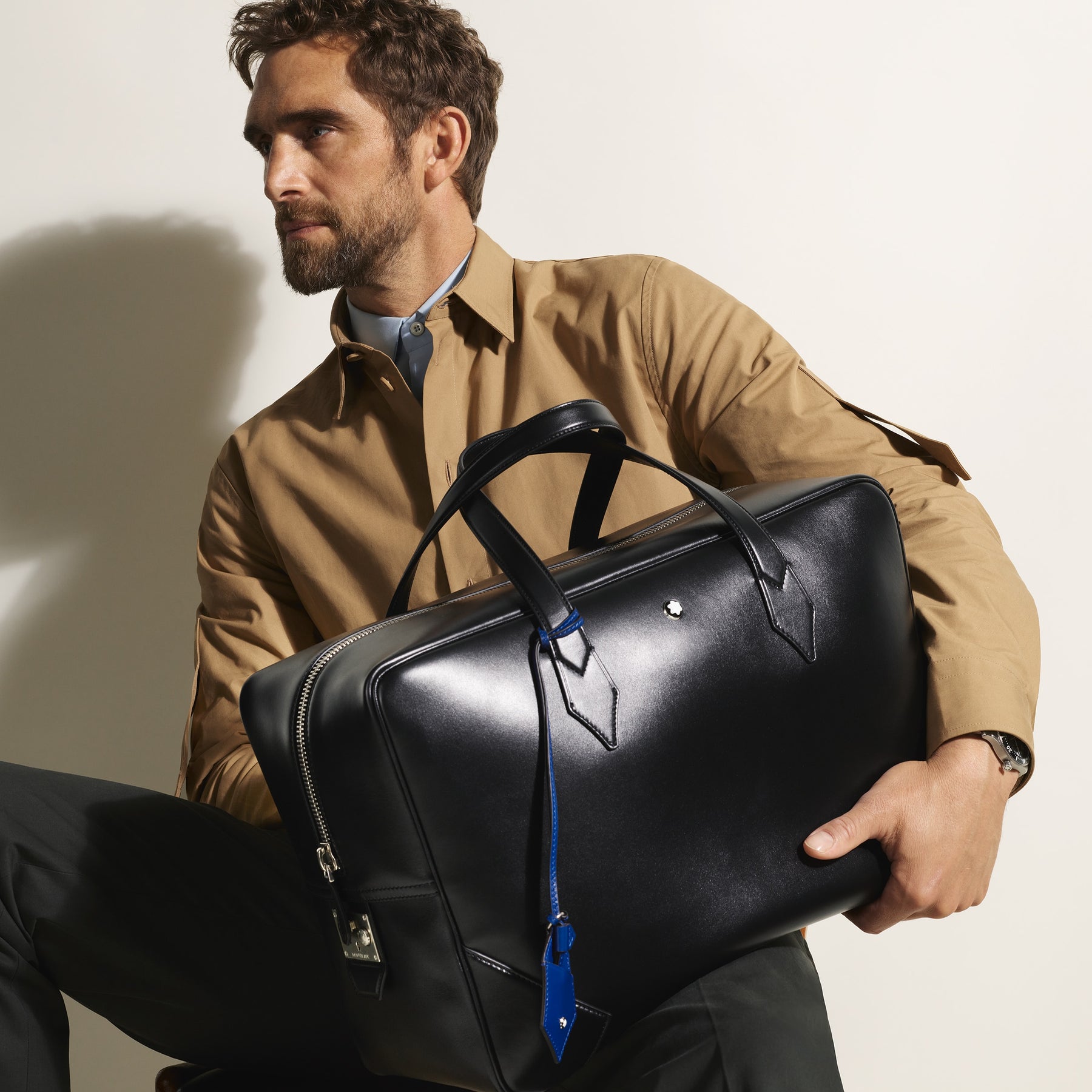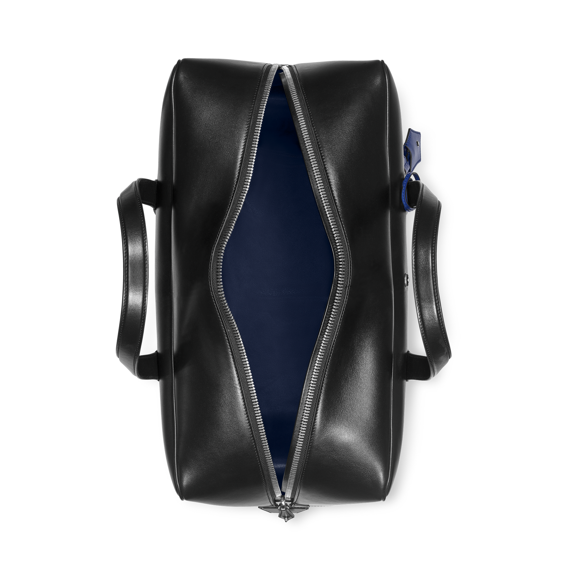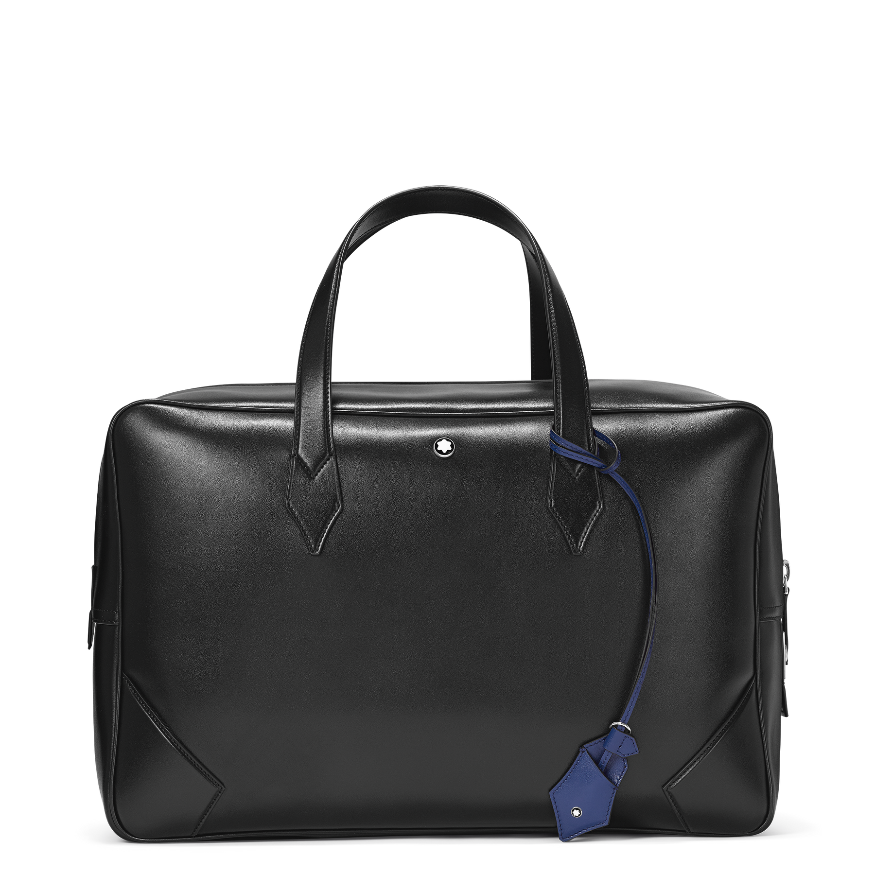 Inspired by the writing culture, the Meisterstück Duffle bag is suitable for short trips and weekends. Crafted from a new deep shine black leather, all its details speak the language of the nib: stitching, zip pullers, handles recall the shape of the nib, the essence of Montblanc. A bigger version of the logo lights up the bag. With a large capacity, it has a secure closure with lock and key.
