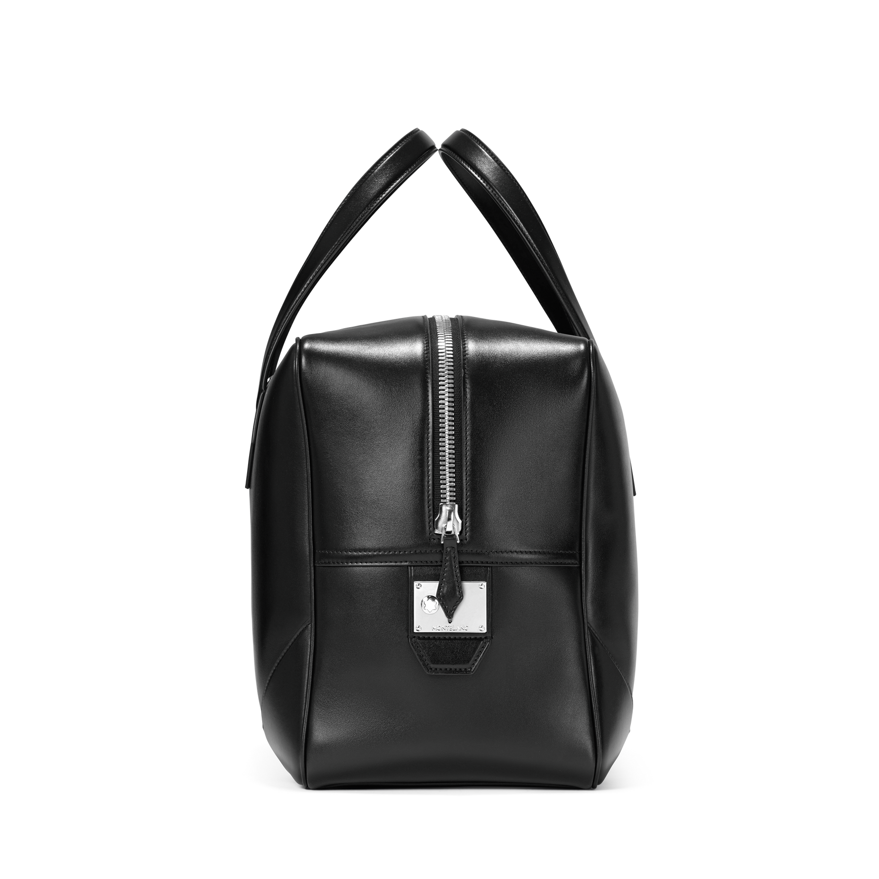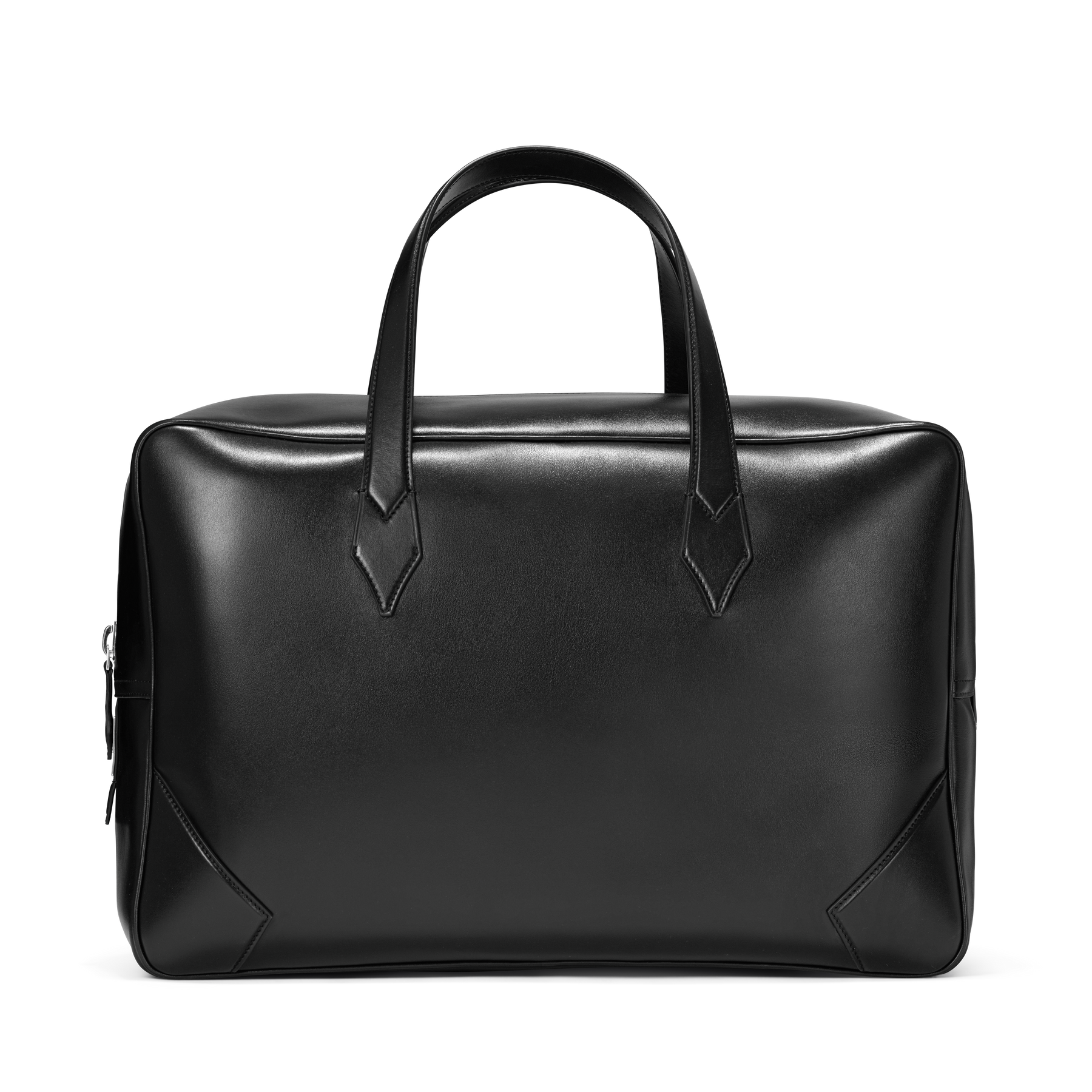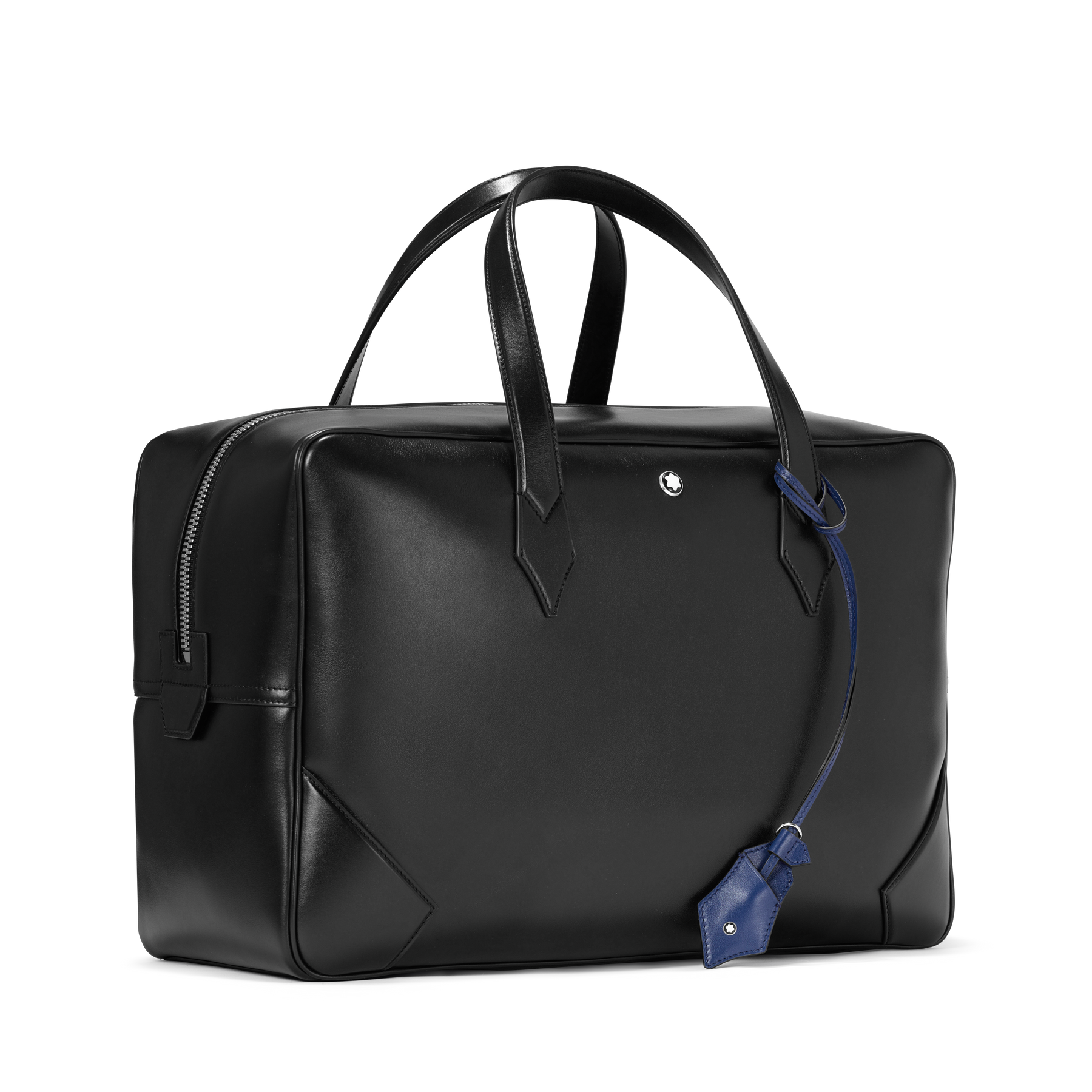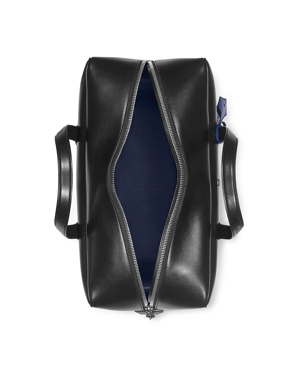 Inspired by the writing culture, the Meisterstück Duffle bag is suitable for short trips and weekends. Crafted from a new deep shine black leather, all its details speak the language of the nib: stitching, zip pullers, handles recall the shape of the nib, the essence of Montblanc. A bigger version of the logo lights up the bag. With a large capacity, it has a secure closure with lock and key.