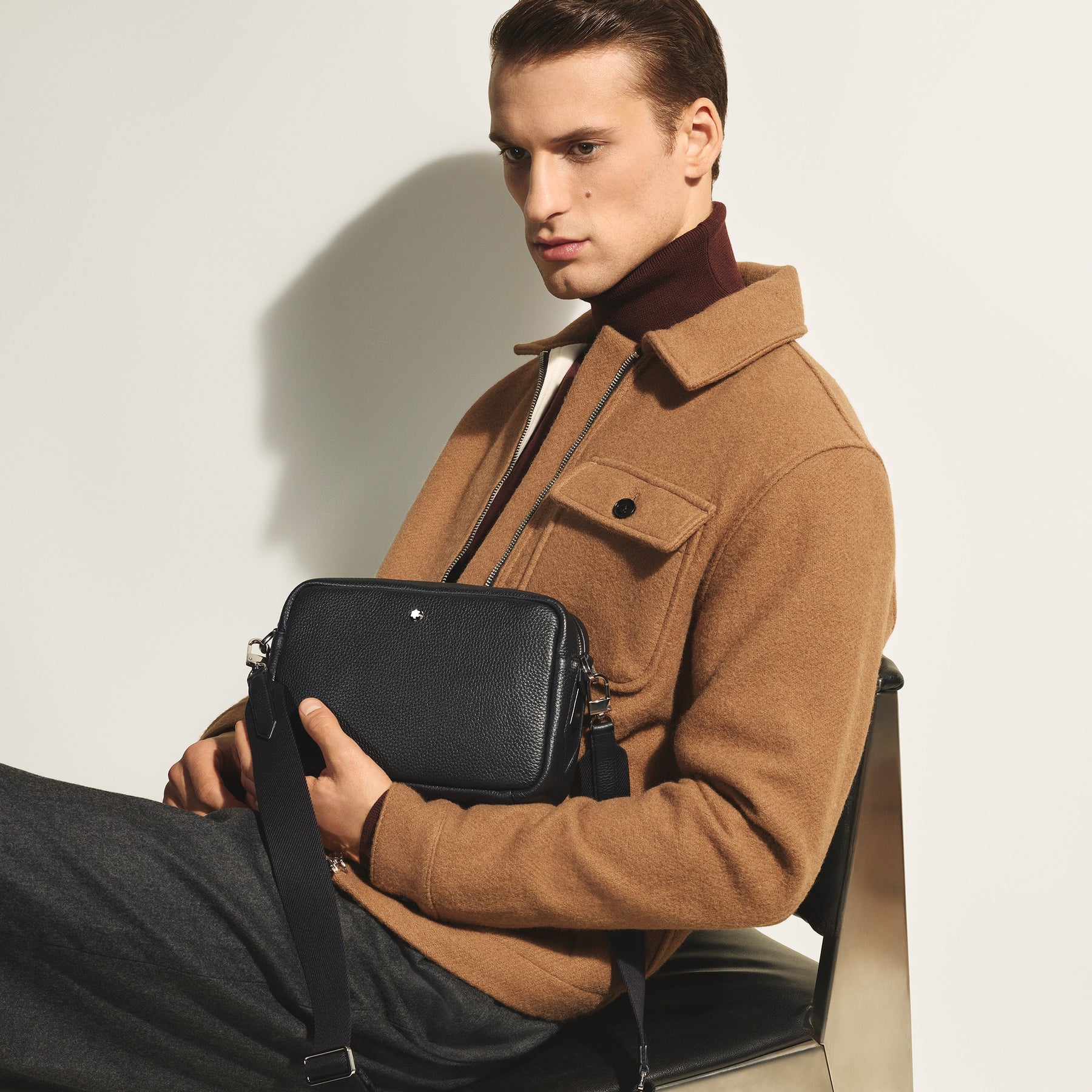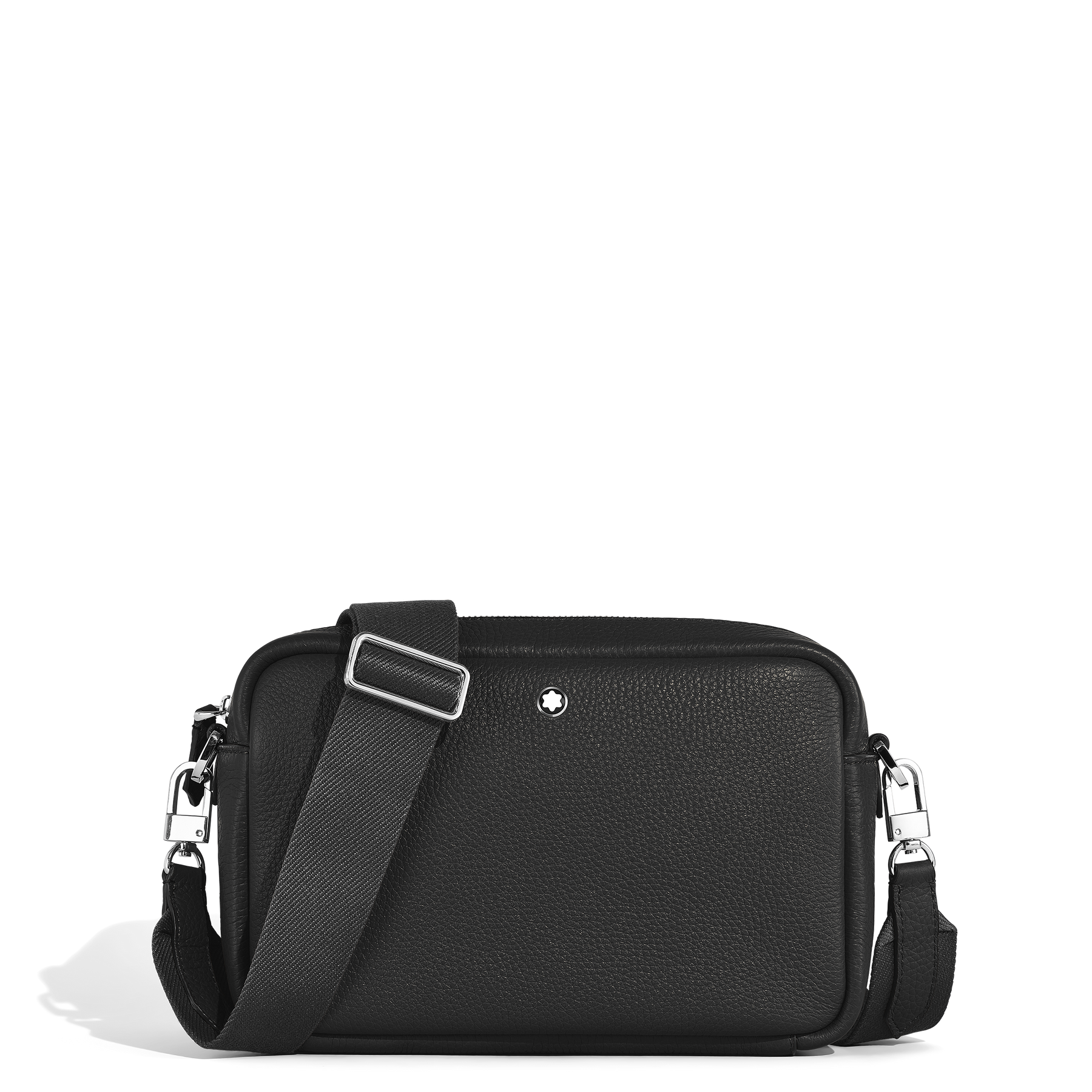 Crafted from black grain calfskin leather, this small cross-body bag features a rectangular silhouette enhanced by Meisterstück leather details, including a bold nib-shaped zip puller and refined saddle stitching that echoes the trace of a pen. Designed for practicality, it offers a main compartment with an open pocket and two writing instrument loops, while a detachable, adjustable shoulder strap provides versatile carrying options with effortless style.
