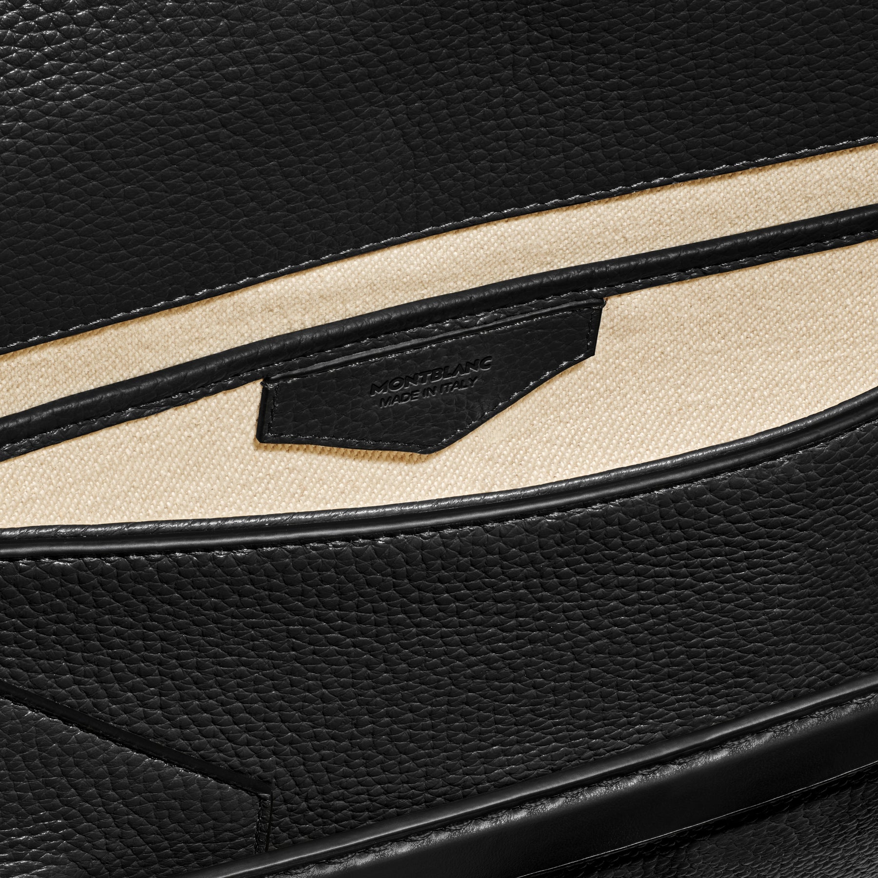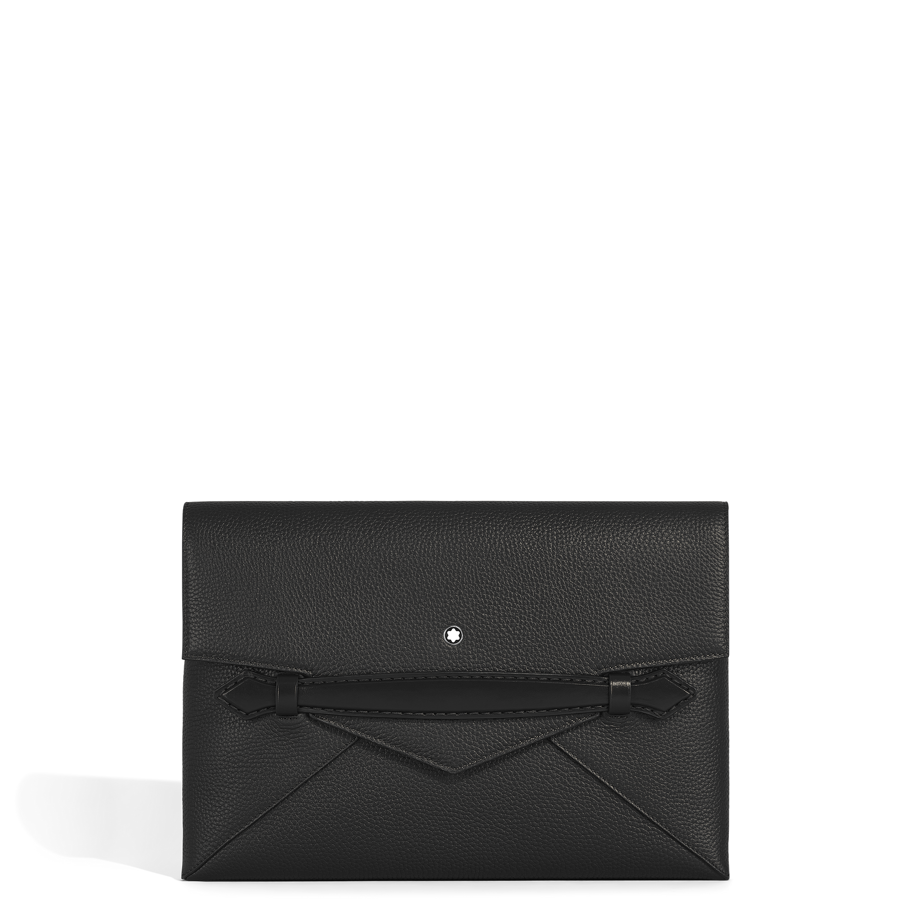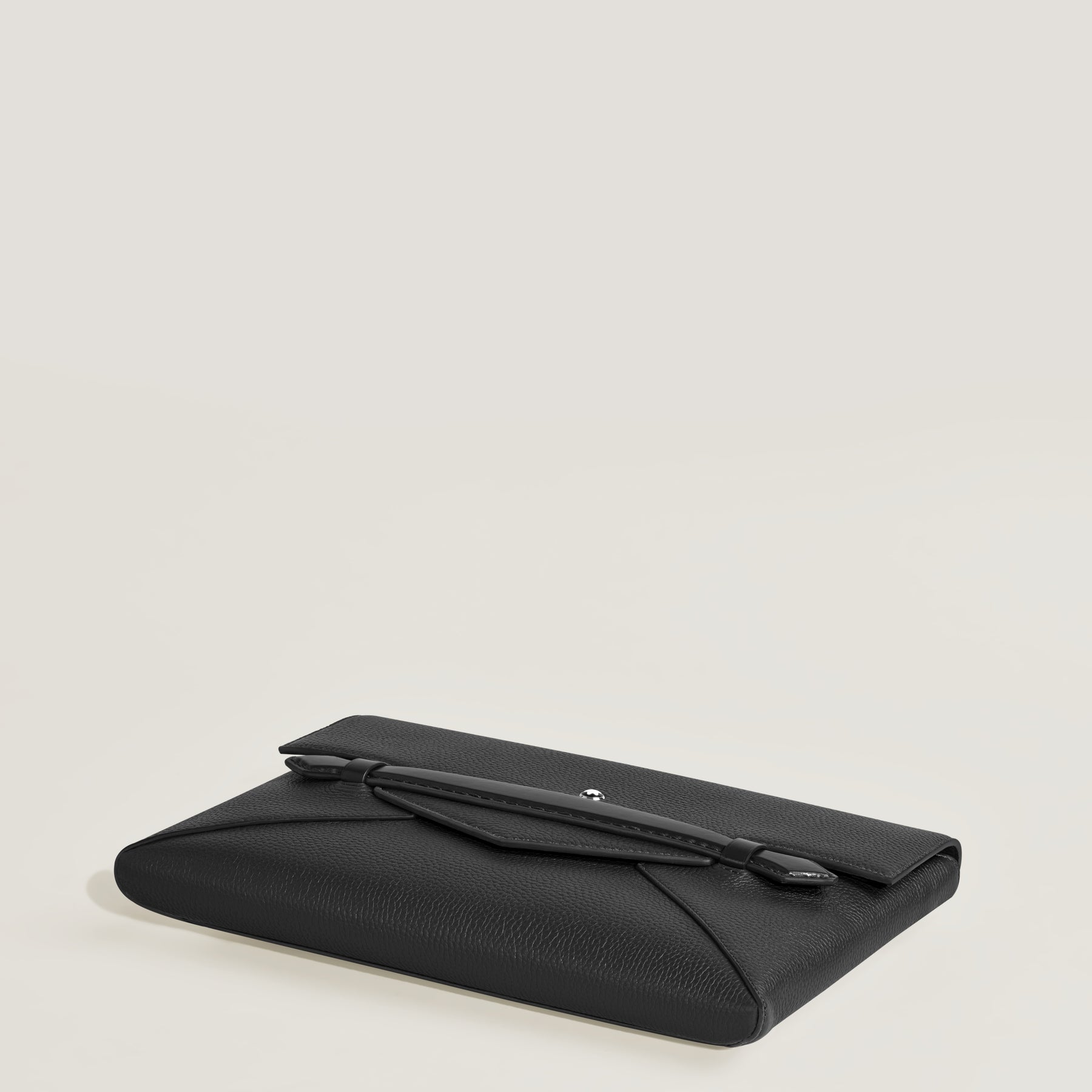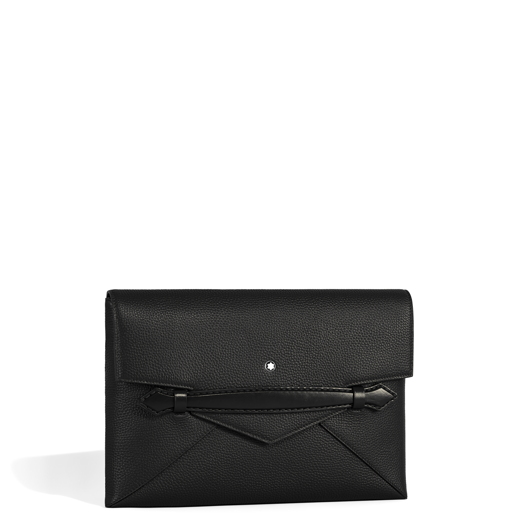 Designed for those who seek elegance in every aspect of their life, this clutch document holder is crafted from black grain calfskin leather. Its sleek envelope-inspired shape is elevated by a nib-shaped front handle, adding a touch of Montblanc heritage to the world of modern accessories. The main compartment offers an open pocket and two writing instrument loops for organisation, while the rear pocket ensures easy access to essentials.