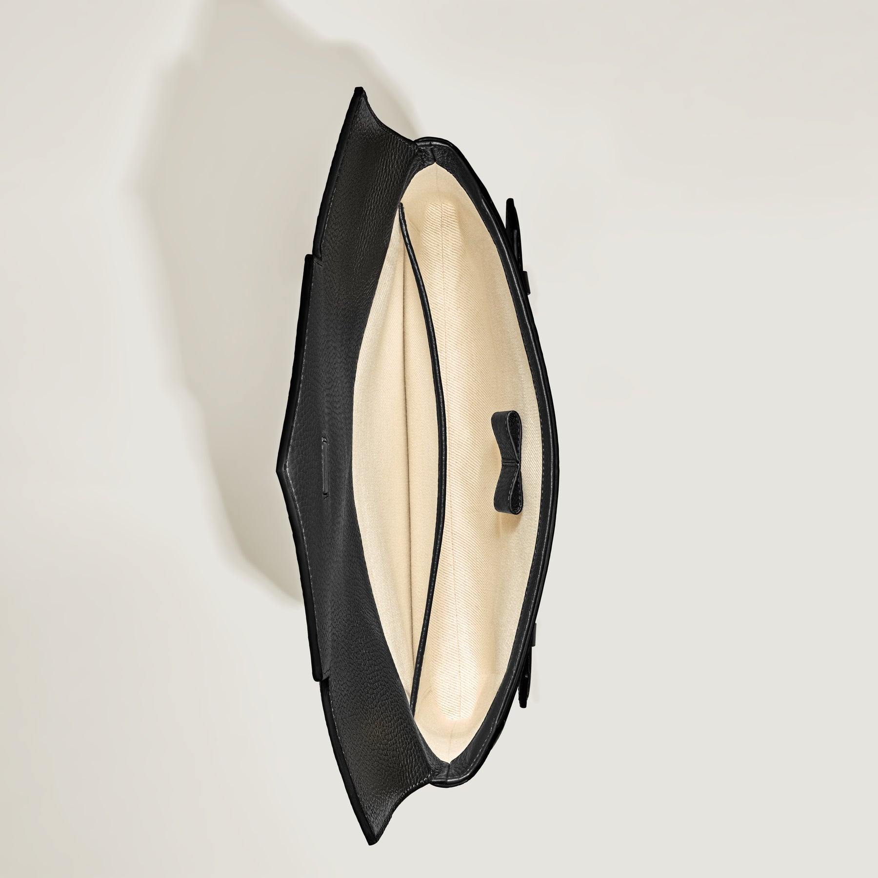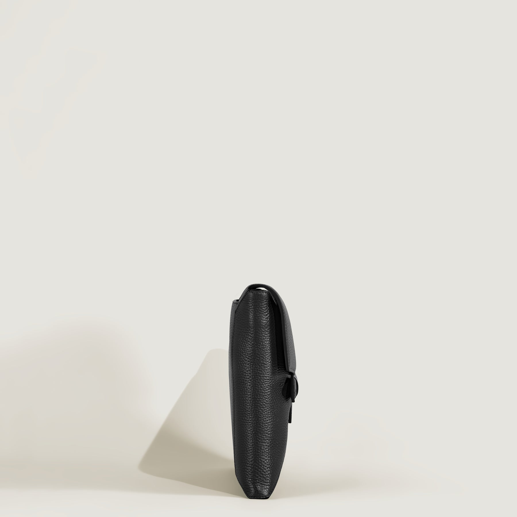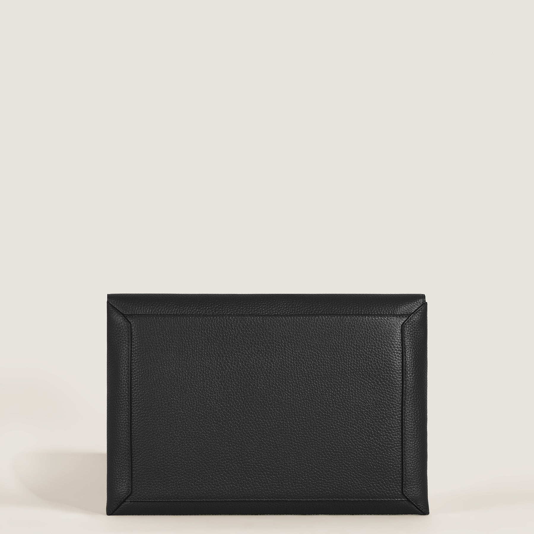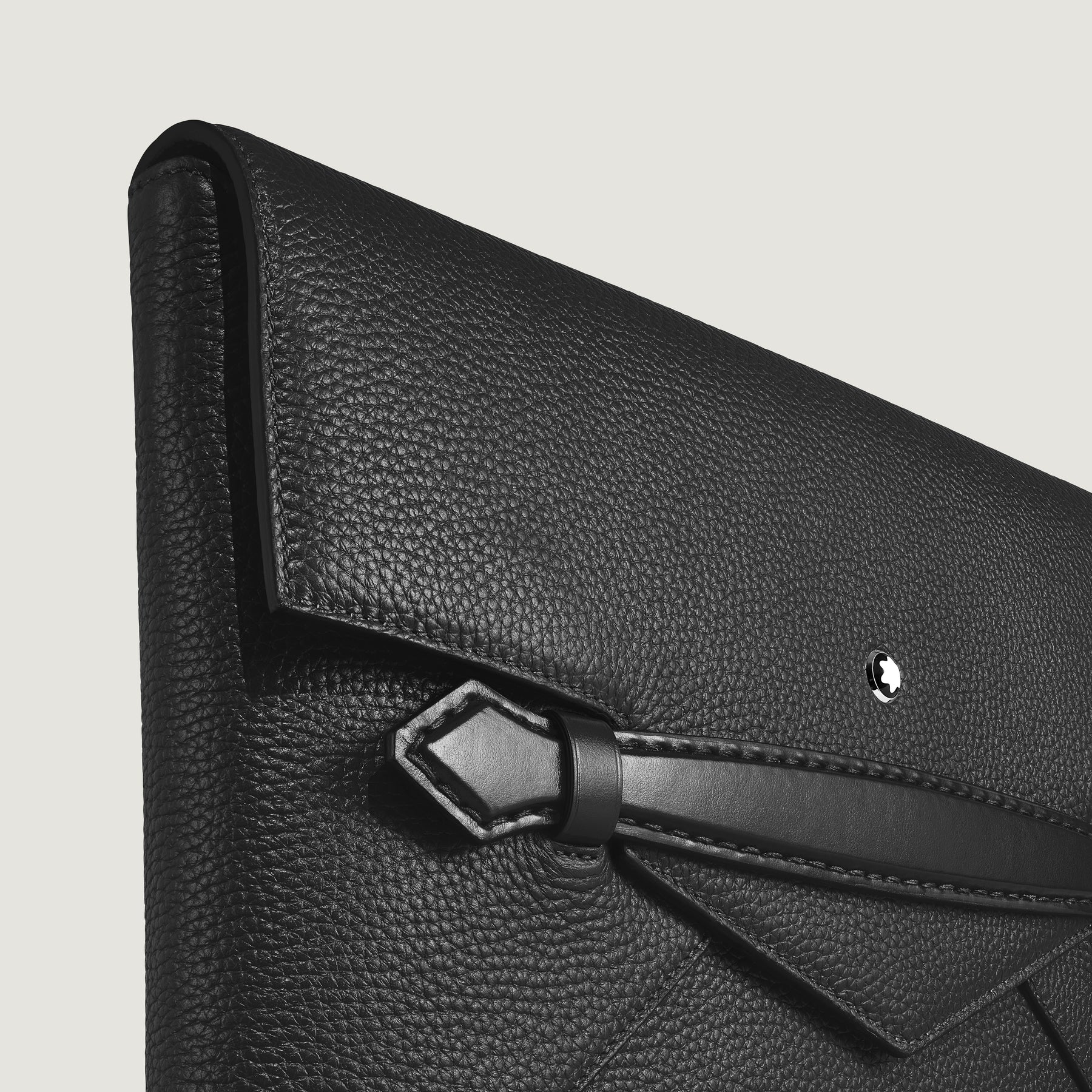 Designed for those who seek elegance in every aspect of their life, this clutch document holder is crafted from black grain calfskin leather. Its sleek envelope-inspired shape is elevated by a nib-shaped front handle, adding a touch of Montblanc heritage to the world of modern accessories. The main compartment offers an open pocket and two writing instrument loops for organisation, while the rear pocket ensures easy access to essentials.