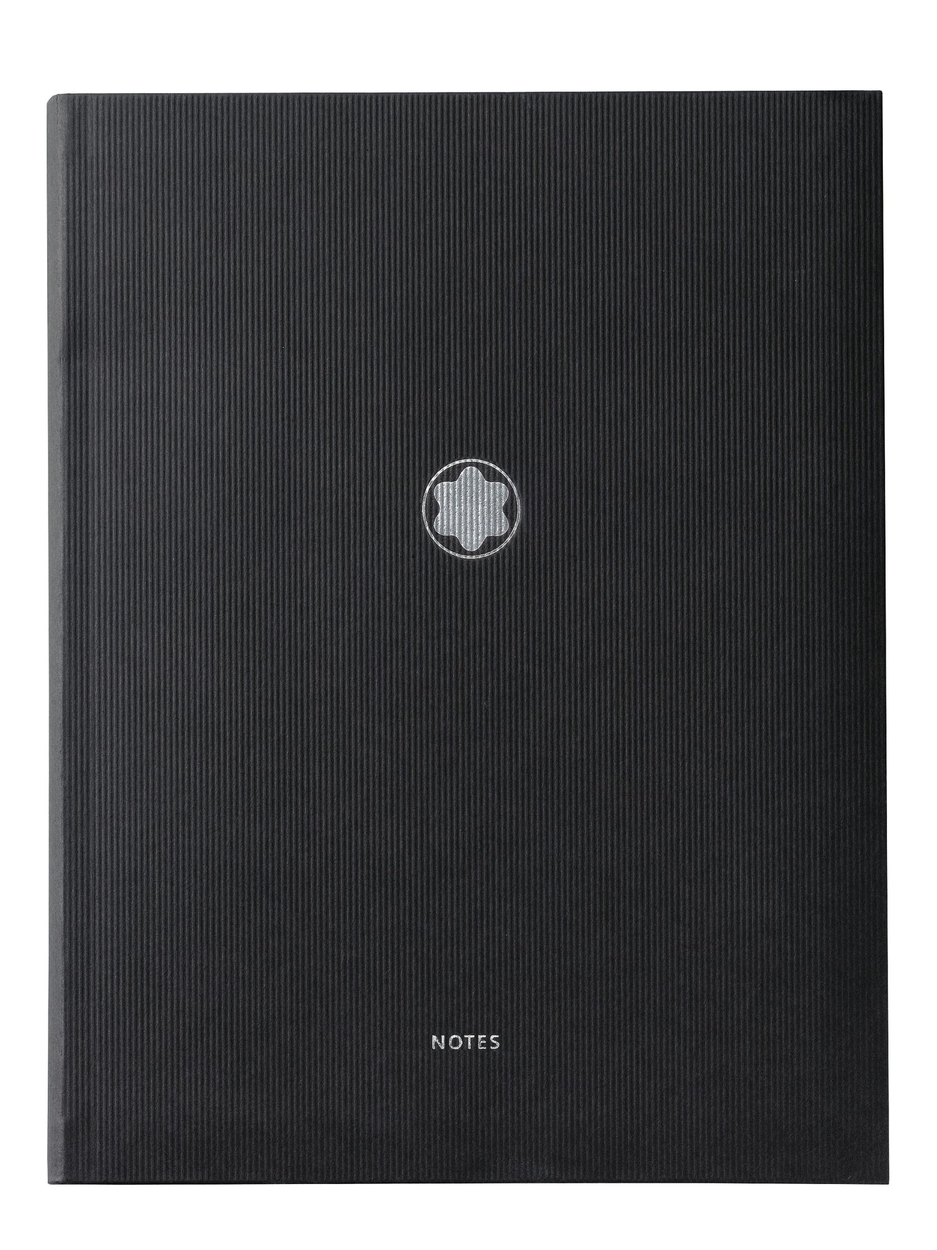 Medium notepad with black soft cover with centered silver Montblanc emblem. Inner part consists of 248 lined pages made of premium white paper, perfectly adapted to writing with ink and exclusively branded with the Montblanc emblem