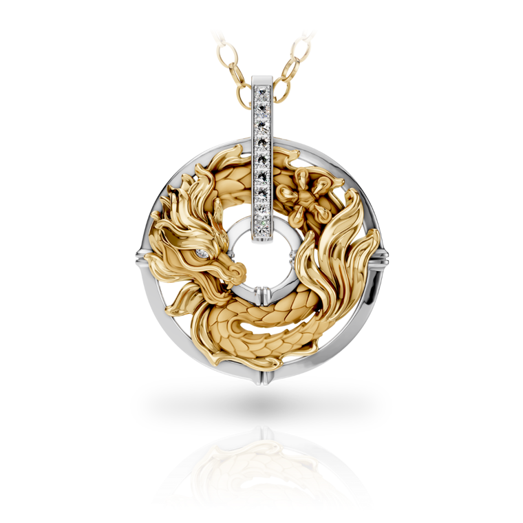 Discover elegance with the Necklace New Shanghai Medium from the New Shanghai Collection. This stunning piece is crafted from 18KT yellow and white gold and features 10 white diamonds totaling 0.18 carats. With an average weight of 19.2 grams and a 45 cm chain, it''s a perfect blend of sophistication and luxury.