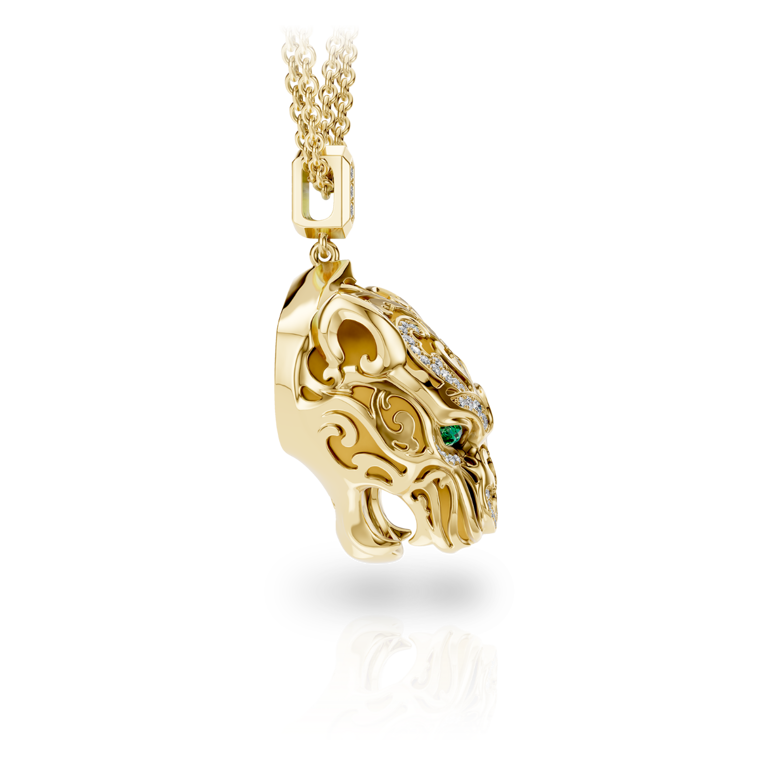 Discover the ultimate elegance with the Necklace ''Zodaria Filigrana'' Maxi from the Origen Collection. This luxurious necklace is crafted in 18KT yellow gold, featuring intricate filigree details, dazzling diamonds, and vibrant emeralds. With an average weight of 33.35 grams, it embodies timeless beauty and sophistication.