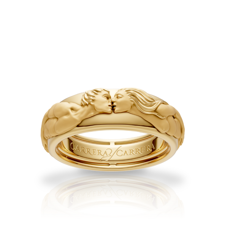 Regular price €3.460 Vat included. Shipping calculated at checkout.A sculptural wedding band that captures the poetry of a kiss. Its flowing curves embody the union of two souls who meet, promise, and remain forever intertwined in love.