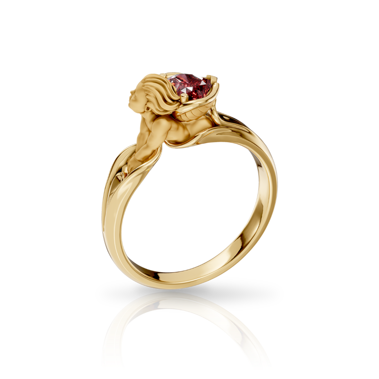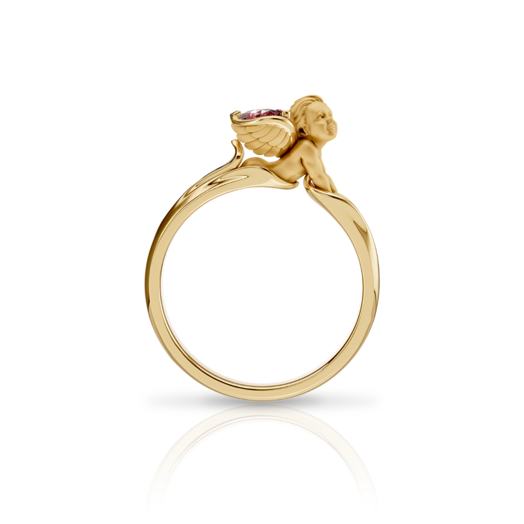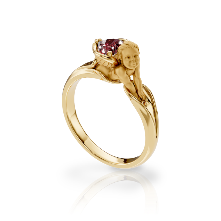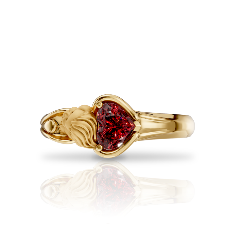 Celebrate love with the "MY ANGEL" collection and the Heart Ring, model 0152, crafted from 18kt yellow gold. This stunning ring is adorned with a 0.518ct red rhodolite gemstone. Weighing an average of 5.04g, this piece exudes elegance and romance.