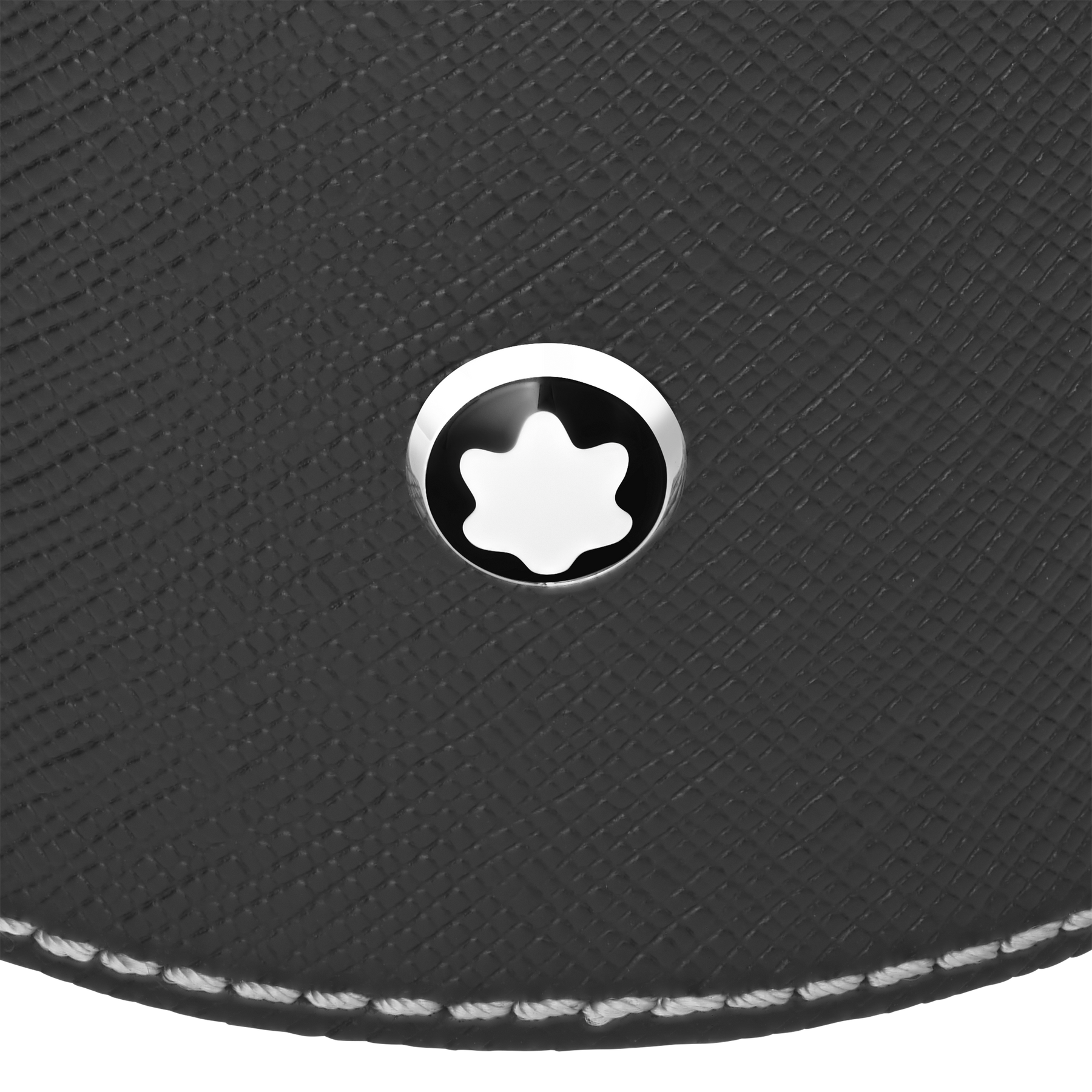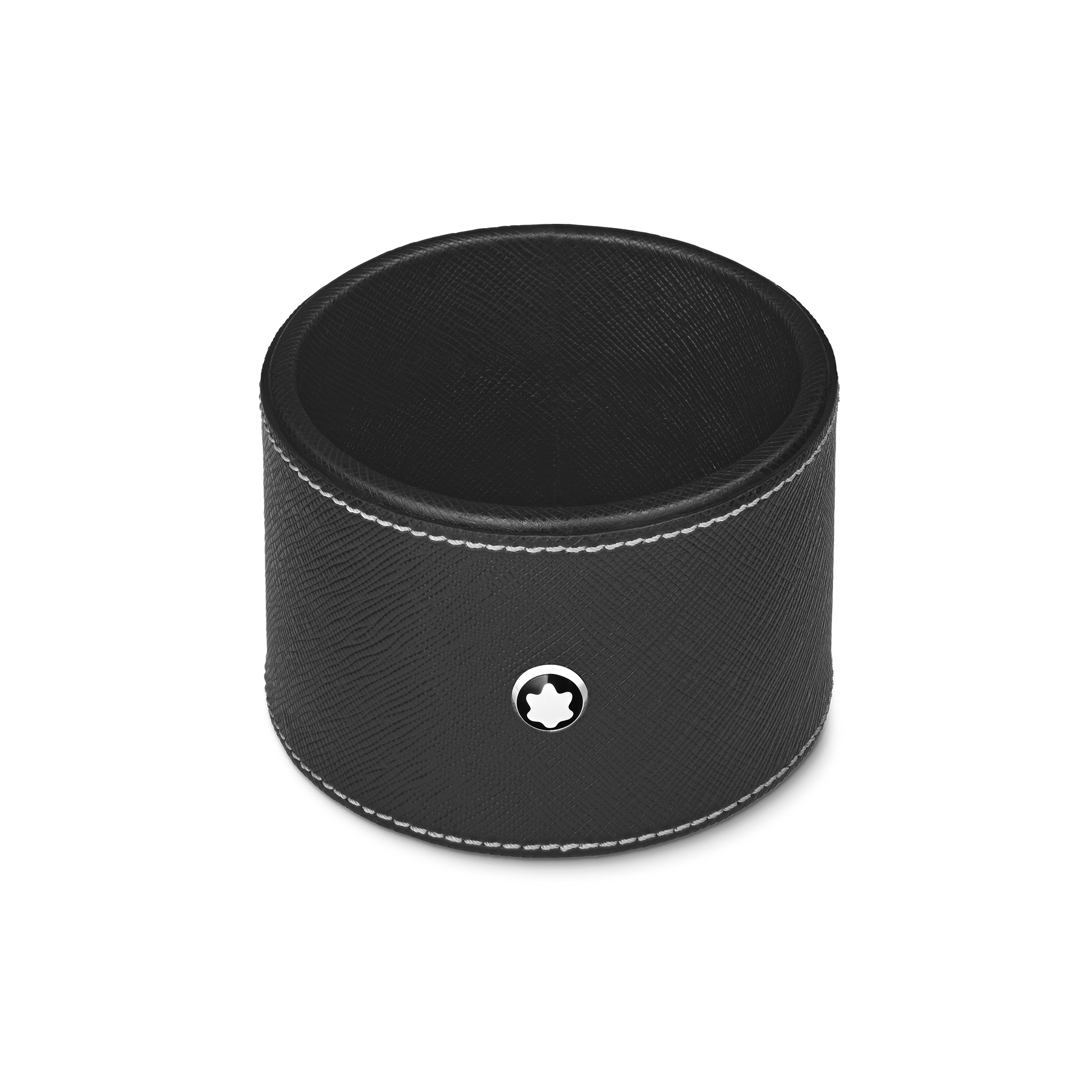 Medium round desk tray in black leather with Montblanc emblem detail.